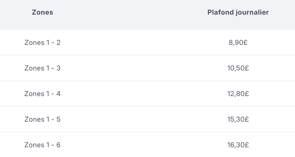 Enfin, dernière information et pas des moindres, pensez à valider votre carte à l’entrée ET à la sortie d’un transport (sauf bus) car si vous ne le faites pas, le plafond pris en compte sera celui de la zone la plus étendue. Pour information :