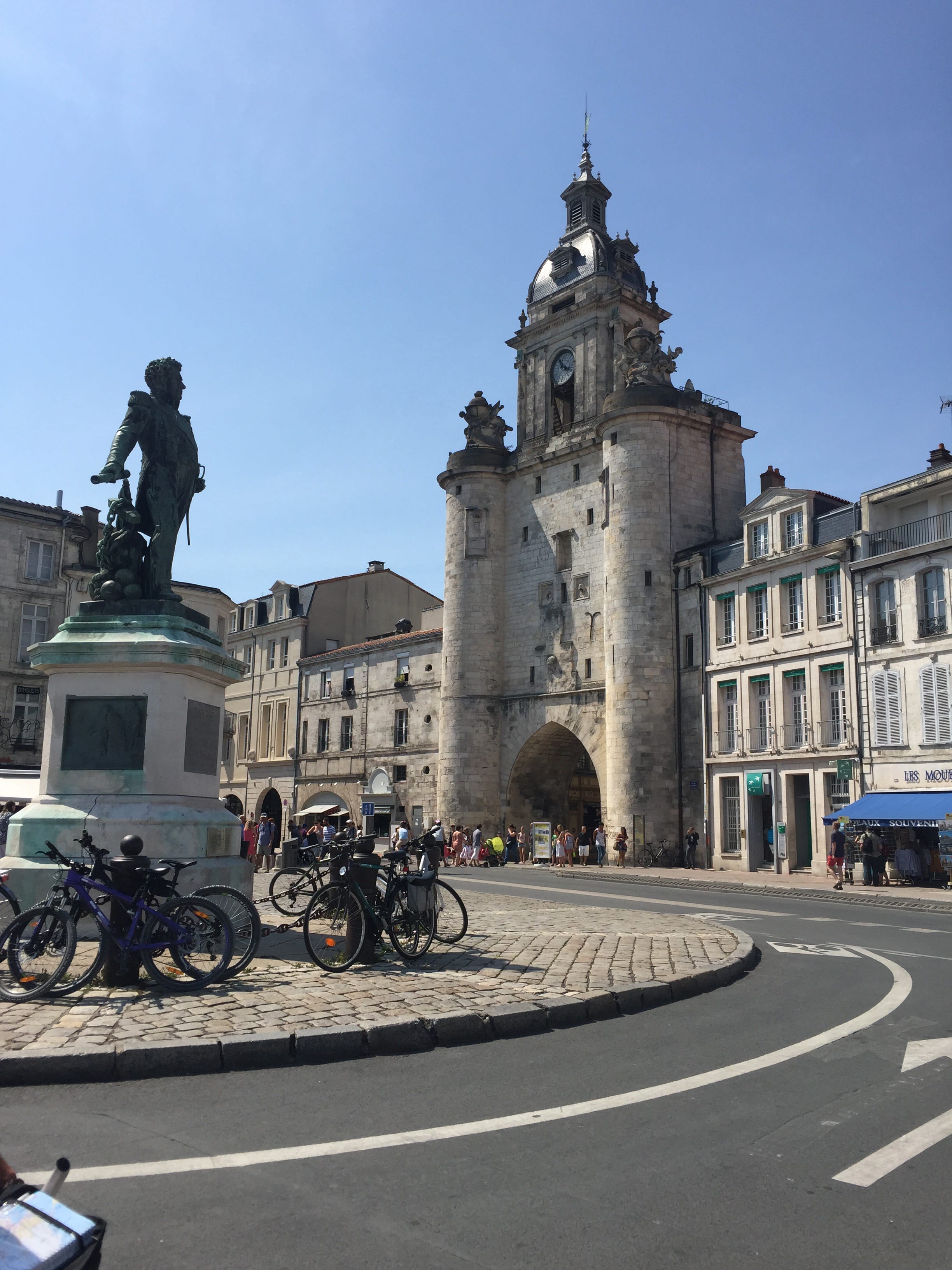 Nous avons terminé la journée à La Rochelle, qui se trouve juste de l’autre côté du pont menant à l’île de Ré. Ce fut un passage très court et si vous n’y passez que pour quelques heures, nous vous recommandons absolument de vous concentrer sur le secteur de la vieille ville à l’entrée du port. Vous pourrez y admirer la tour de la Chaîne ainsi que la tour Saint-Nicolas, porte d’entrée de la Rochelle par l’océan. En remontant le port depuis ces deux tours, vous entrerez dans le centre-ville historique en passant sous la tour de la porte de la grosse horloge. Les boutiques vont tendront alors les bras pour certains, tandis que les autres pourront profiter des arcades et autres rues typiques de la Rochelle. N’hésitez pas à retourner profiter du coucher de soleil une glace à la main au delà des deux tours, vous pourrez apercevoir les derniers bateaux qui rentrent ou partent en mer…