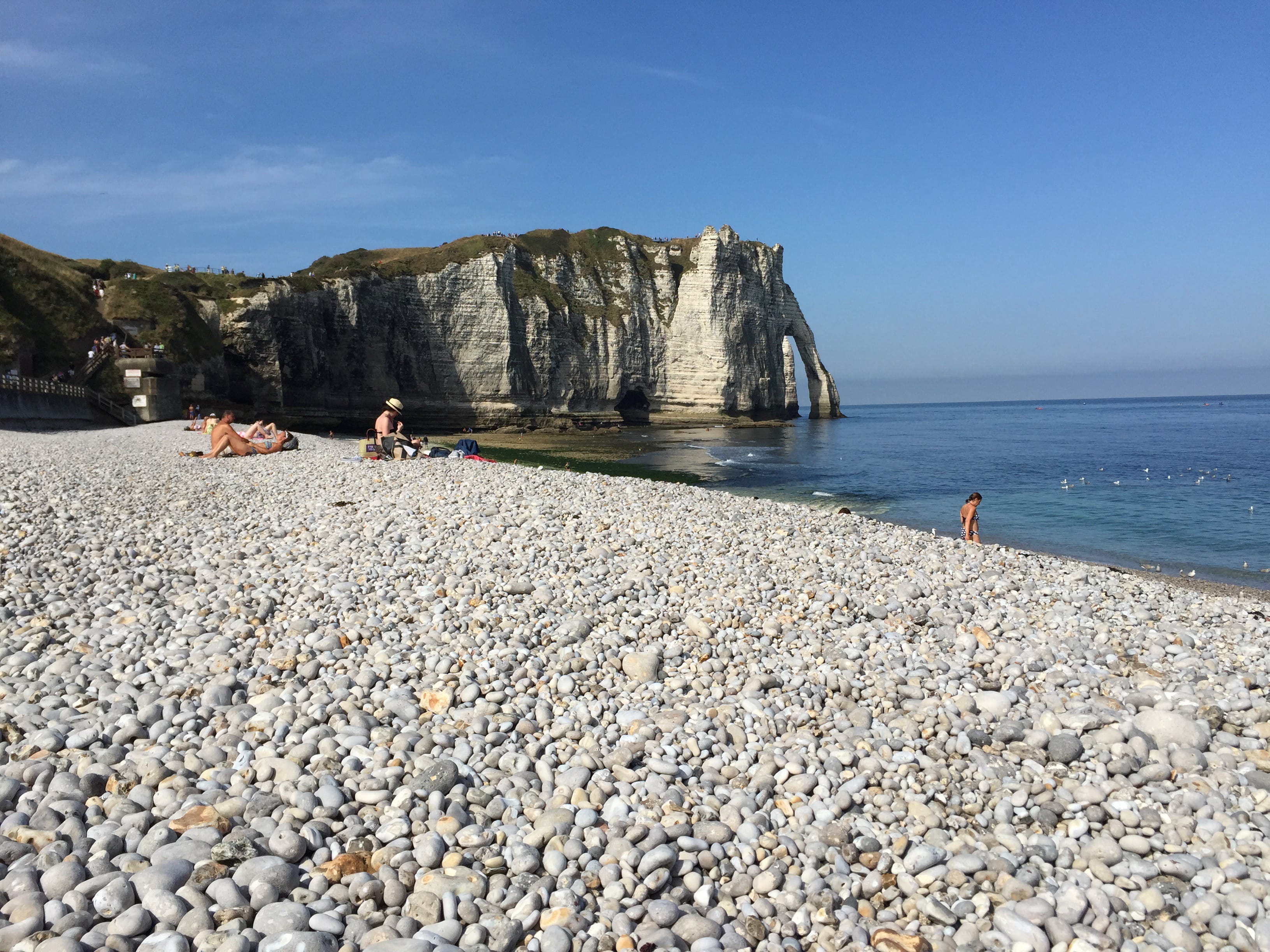 Marcher un peu permet de laisser les touristes qui, pour certains, ne sont là que pour LA photo souvenir… Une pause sur la plage de galets avant de reprendre la route direction maison!