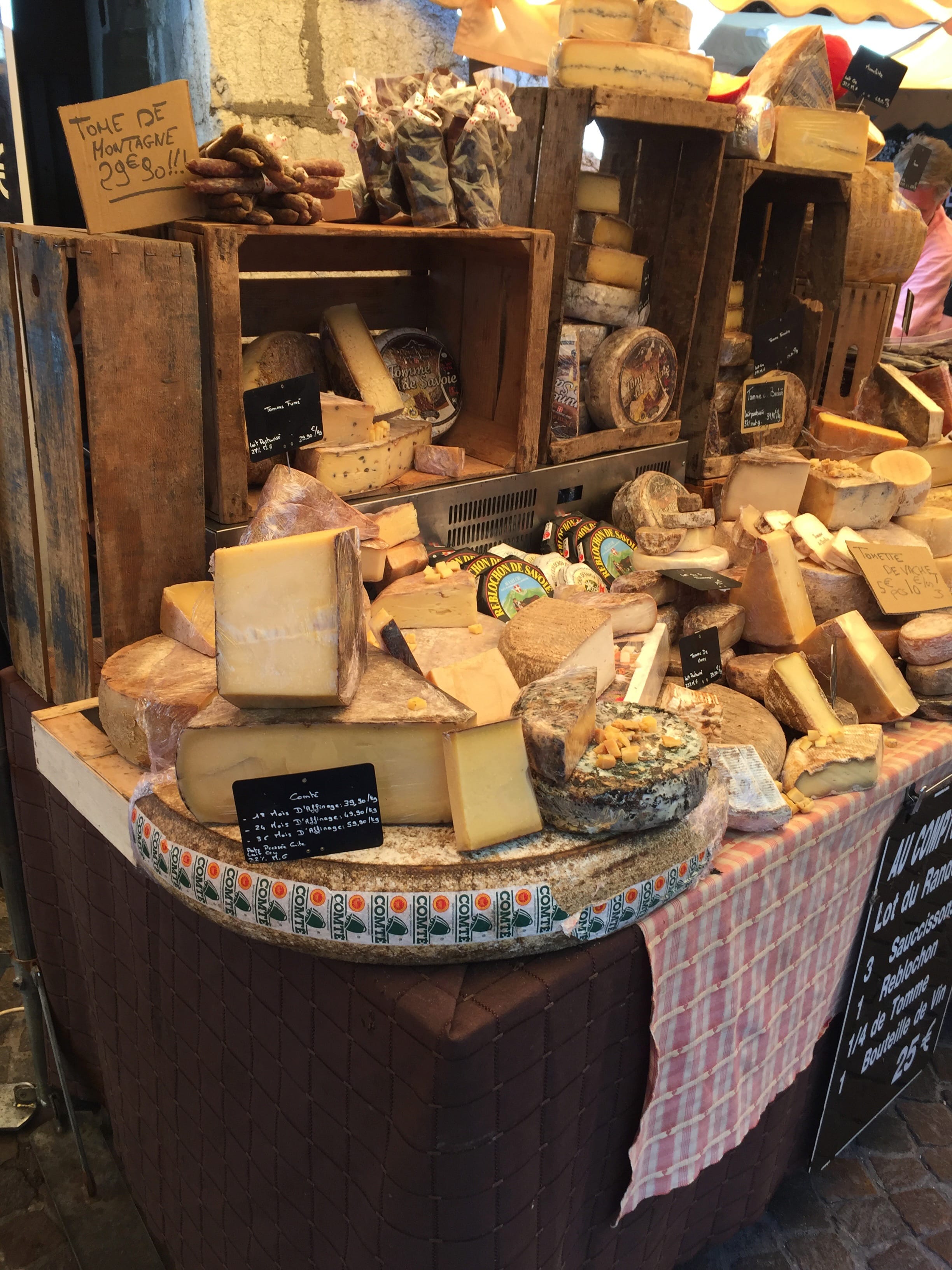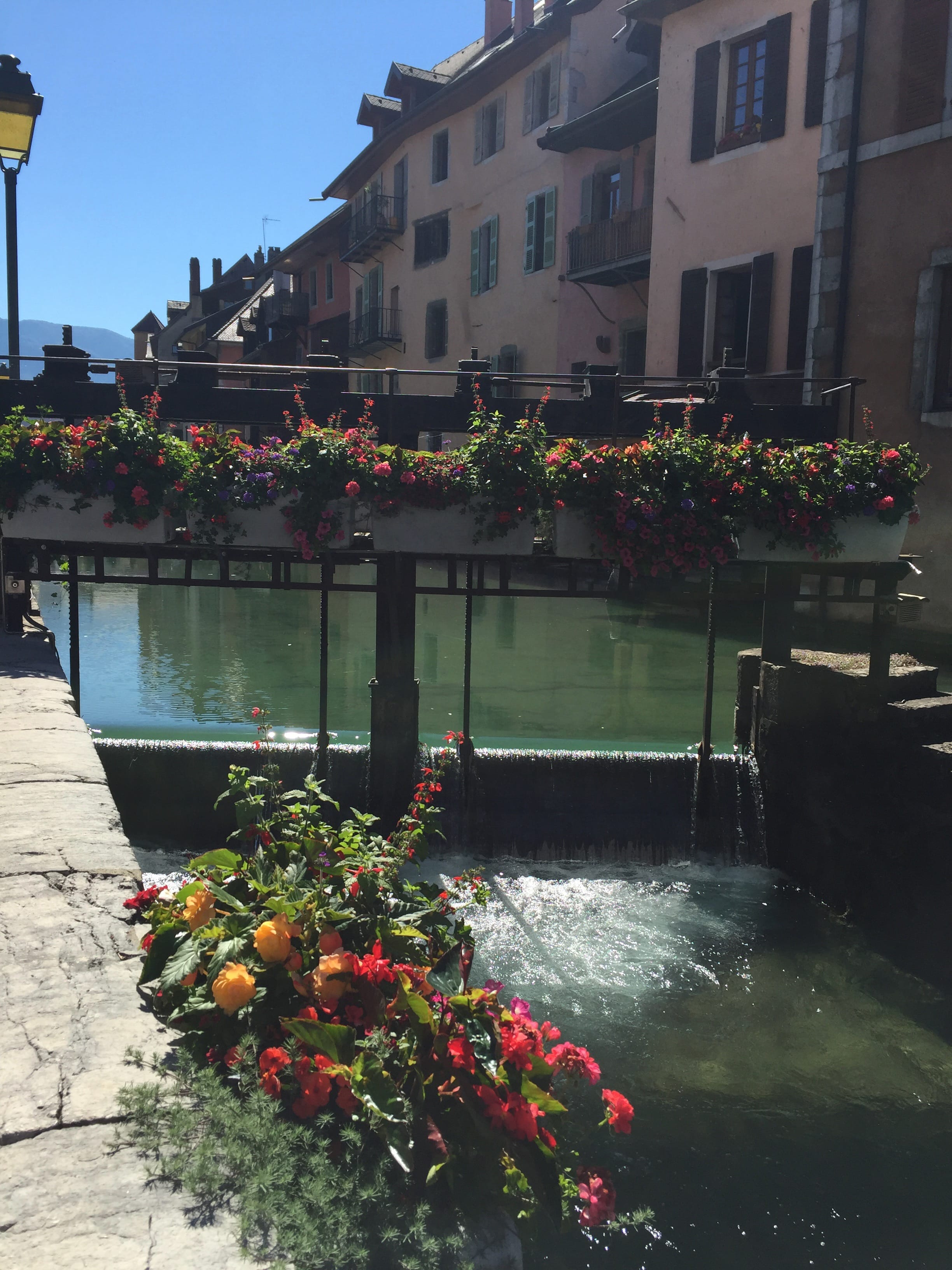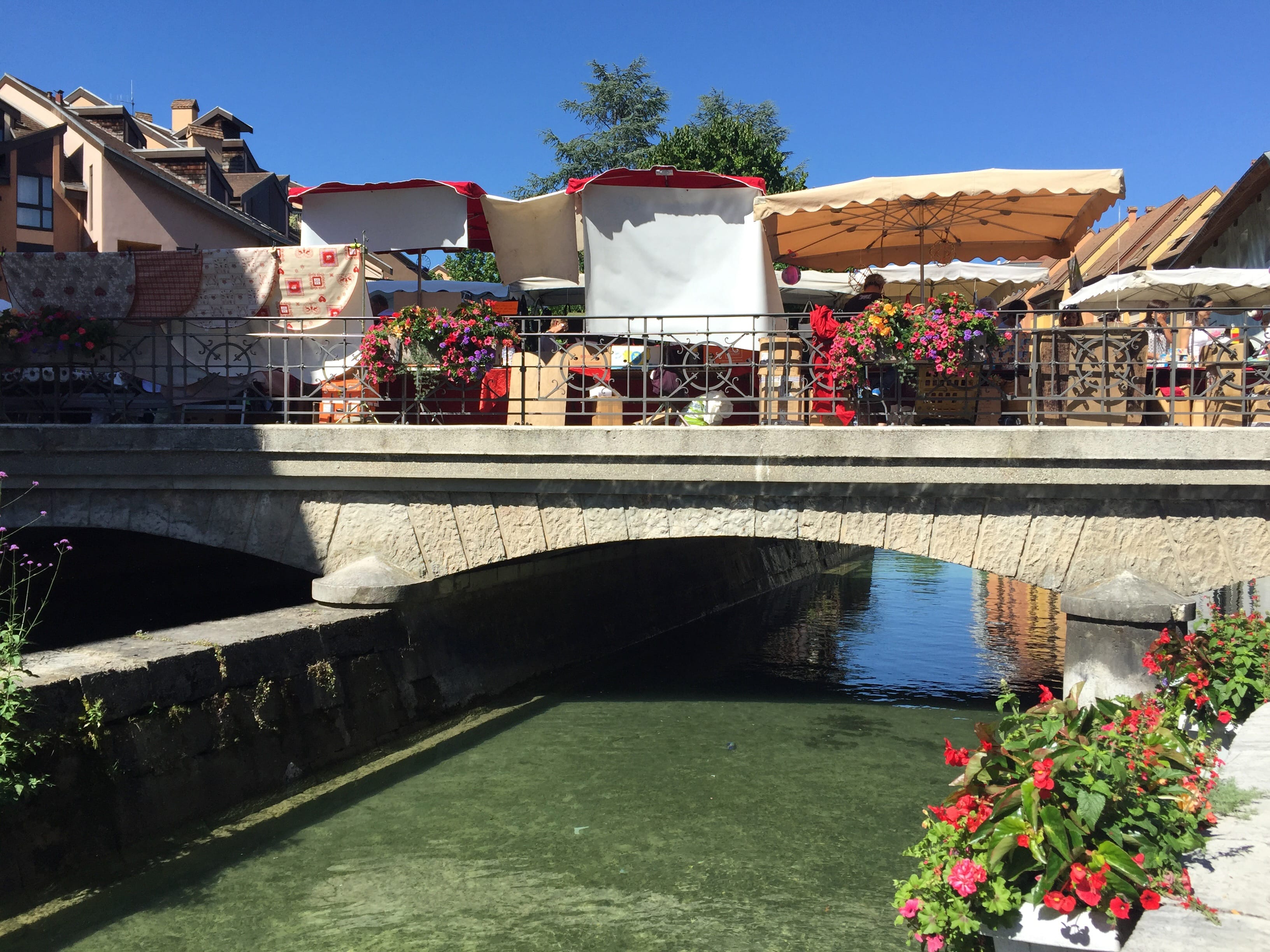 Annecy encore mais uniquement pour la matinée. Nous choisissons cette fois de nous rendre dans la vieille ville pour faire un tour du marché. Les étals sont serrés et disposés dans des endroits au passage étroit, ce qui rend l’expérience pittoresque mais aussi un peu éprouvante pour les nerfs des plus sensibles. Cependant, les fruits, légumes, fromages et autres charcuterie locales font de l’œil et embaument les rues. De quoi bien nous ouvrir l’appétit.