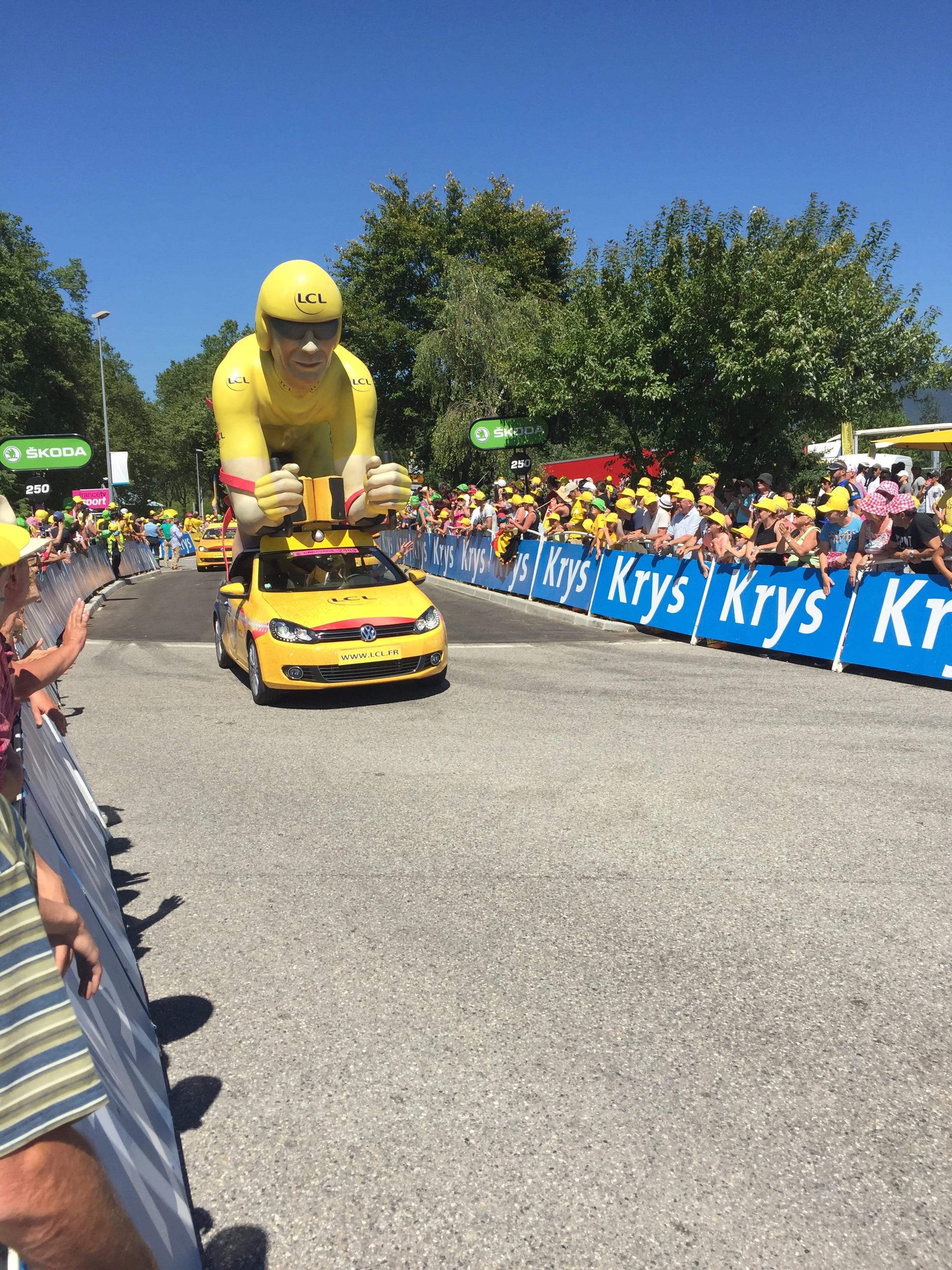 L’après-midi, c’est à Culoz que nous nous dirigeons pour faire plaisir au cycliste qu’Il est et voir le passage du tour de France, dans le cadre d’une étape assez spéciale, dans le sens où les coureurs passeront deux fois devant nous. Cela grâce à un parcours franchissant une première fois la ligne d’arrivée, avant de repartir pour une dernière boucle escarpée et un retour à l’arrivée. Beaucoup d’attente au final, mais bonne ambiance et possibilité de bien profiter de l’arrivée aideront un peu à compenser, l’expérience qu’Il aura vécu au moins…! Elle aura profité du passage de la caravane du tour pour s’amuser à récupérer tout ce qui était possible et apprécier le sport fait par les autres.
