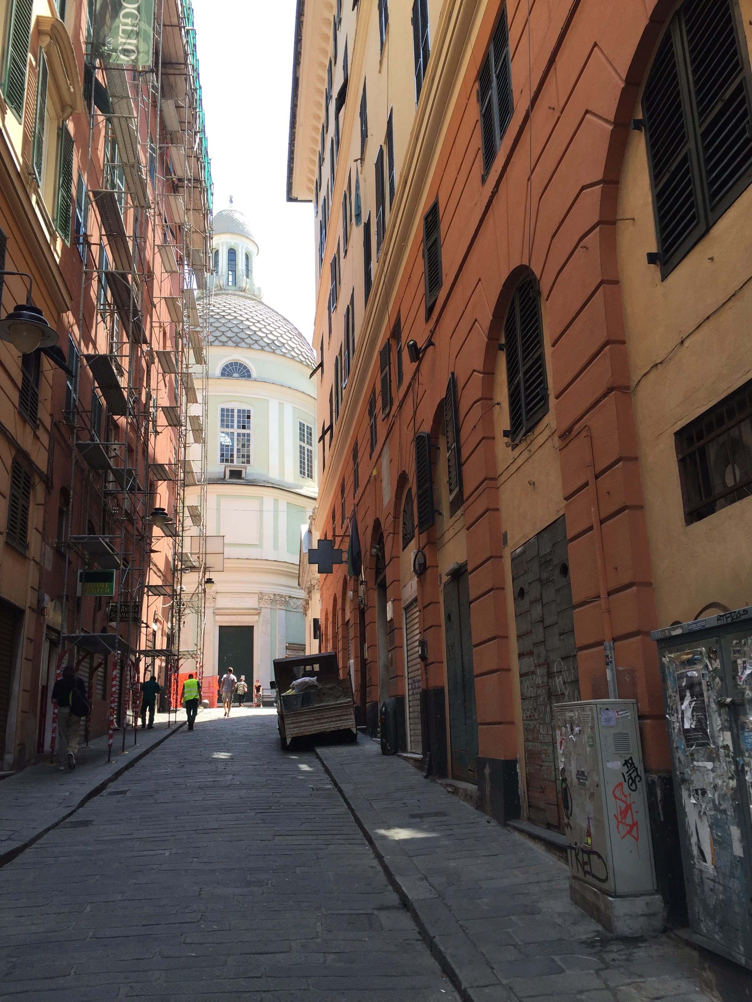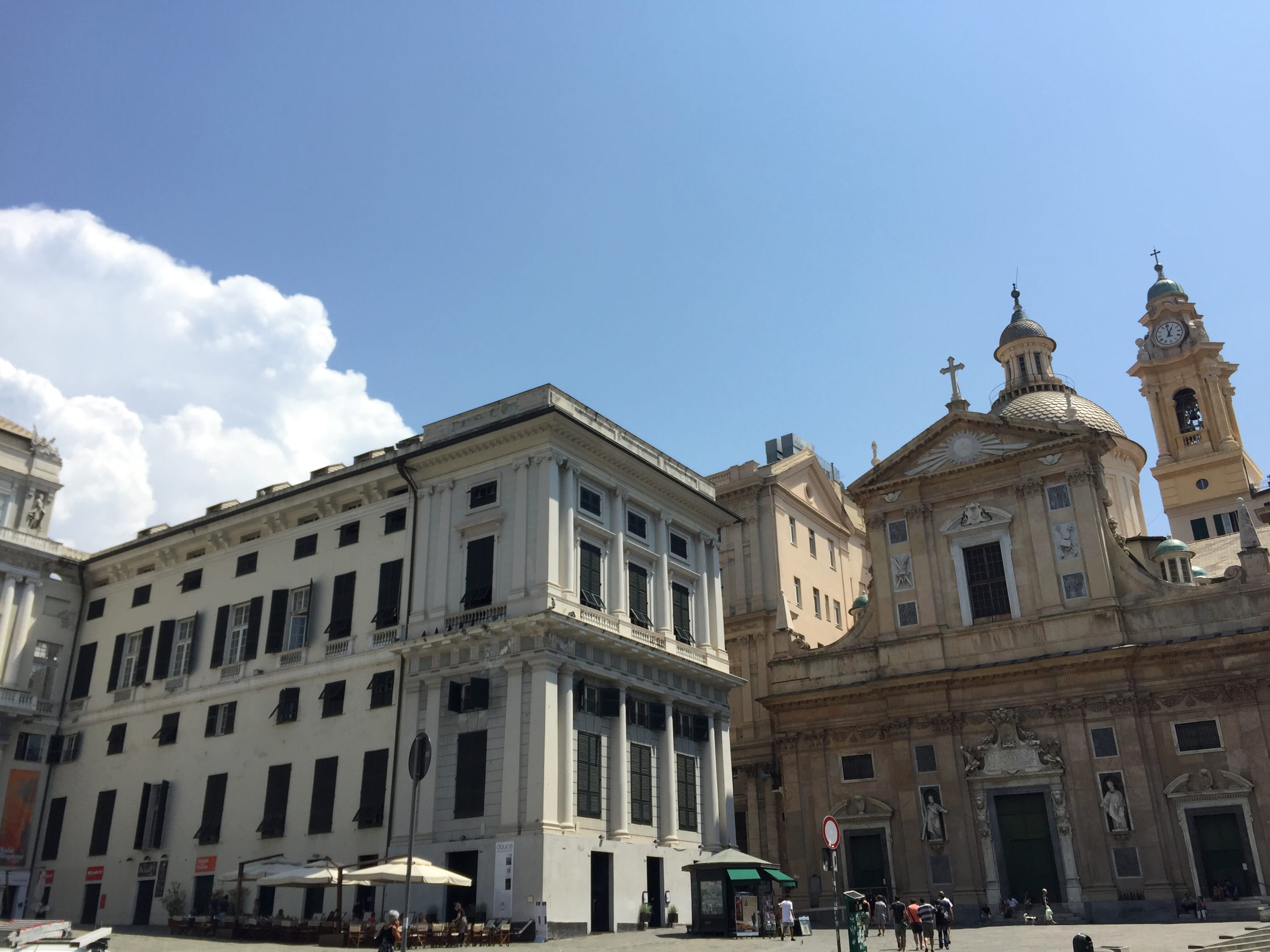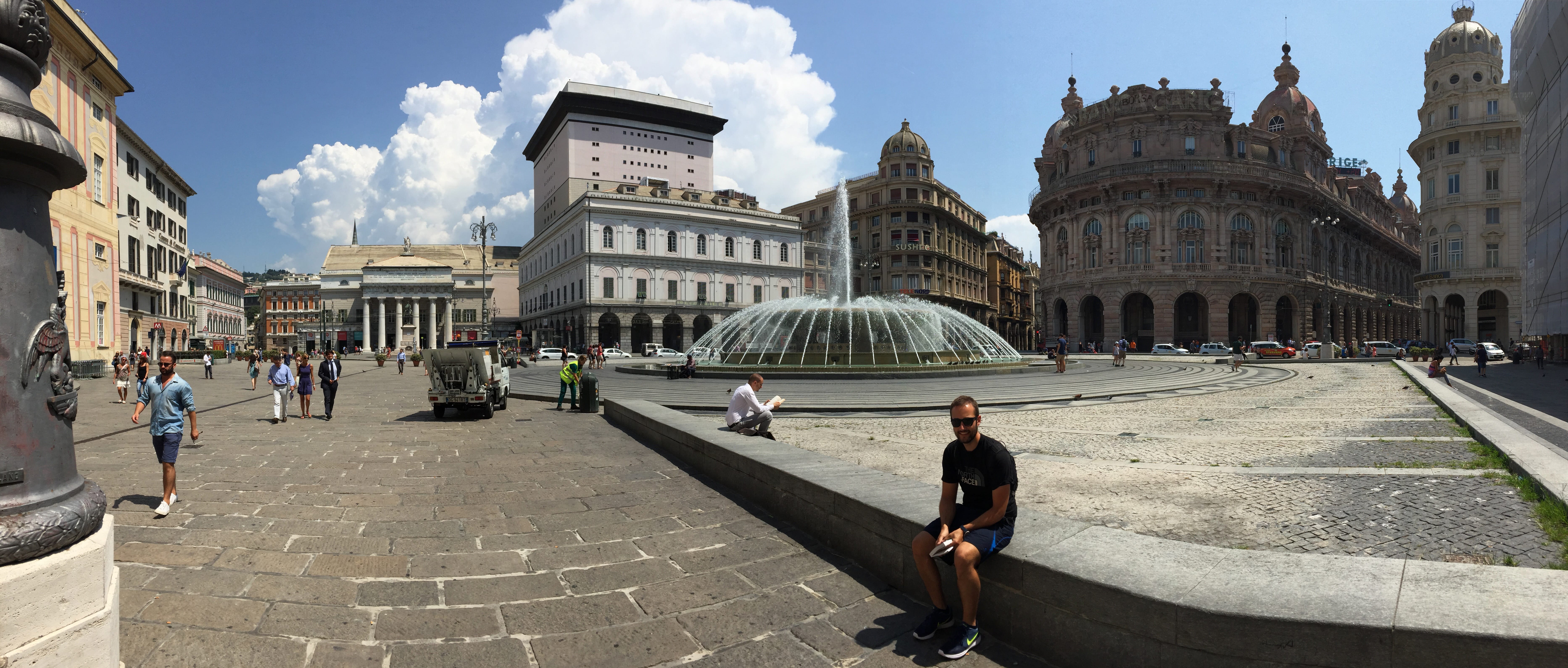 Il est maintenant temps de franchir la frontière pour de bon, et de passer plusieurs jours en Italie. C’est à Gênes que nous passerons le milieu de notre journée, pour y découvrir une bonne partie du centre ville, très populaire, faire le plein de nos estomacs, en y mangeant une foccacia au tarif dérisoire, et une glace (bien sûr !). Mais nous n’aurons pas l’occasion d’y passer plus de temps, la route nous séparant de Milan étant encore longue.