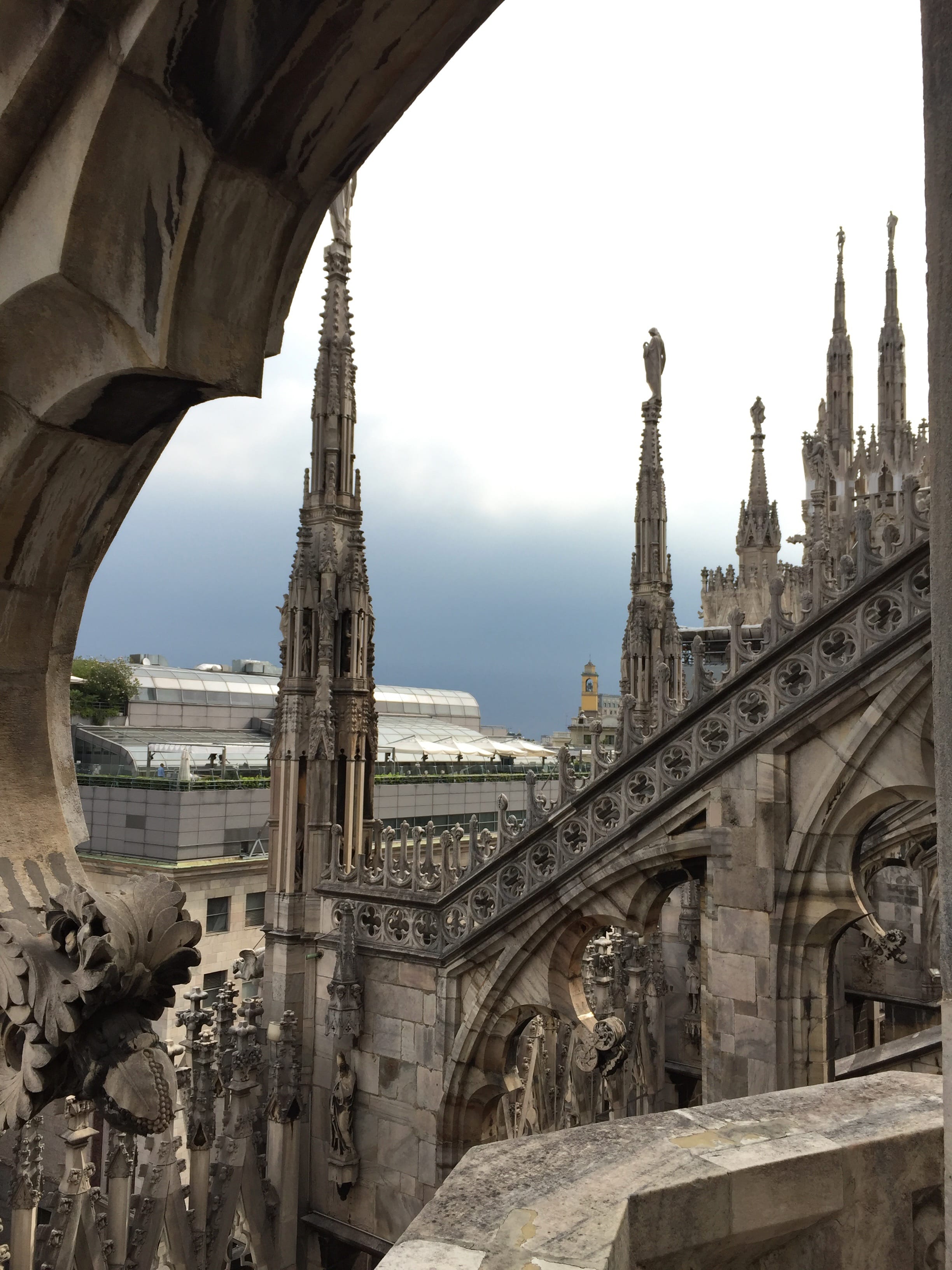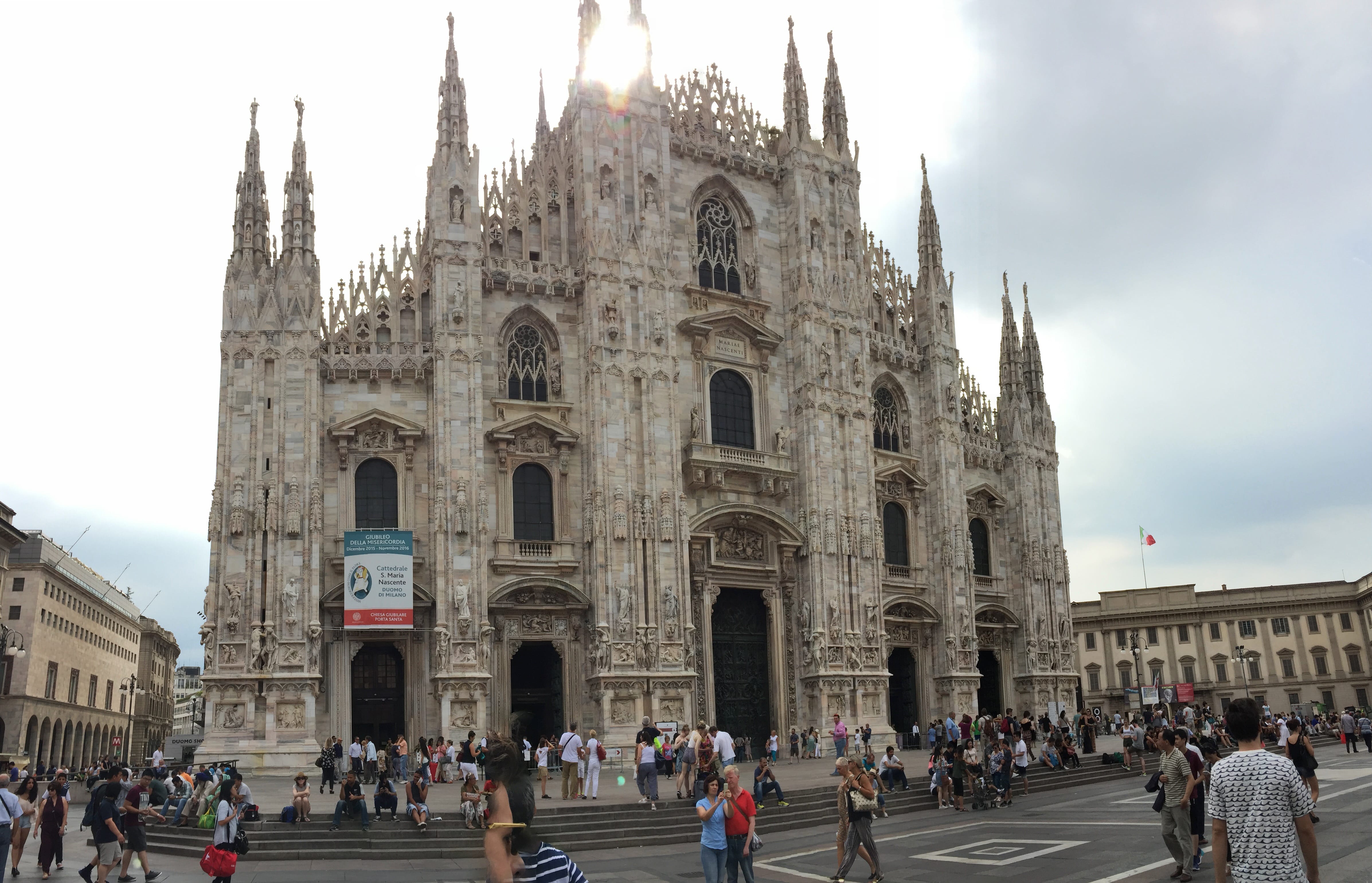 Nous commençons par la visite du Duomo, monument magnifique trônant sur la place du même nom. Nous choisissons d’en faire l’ascension à pied. Ce ne sera pas simple mais ça en vaudra largement le coup !