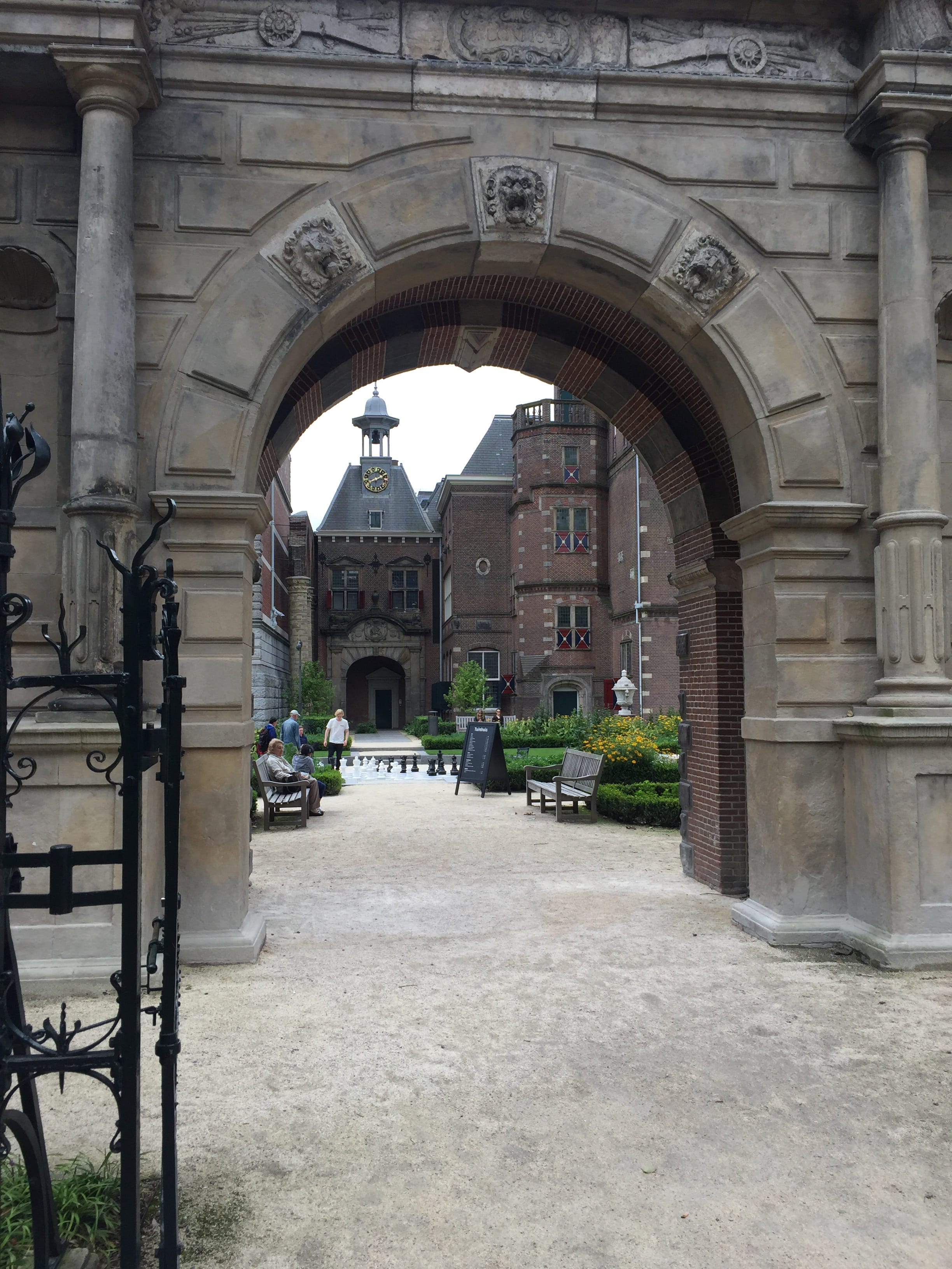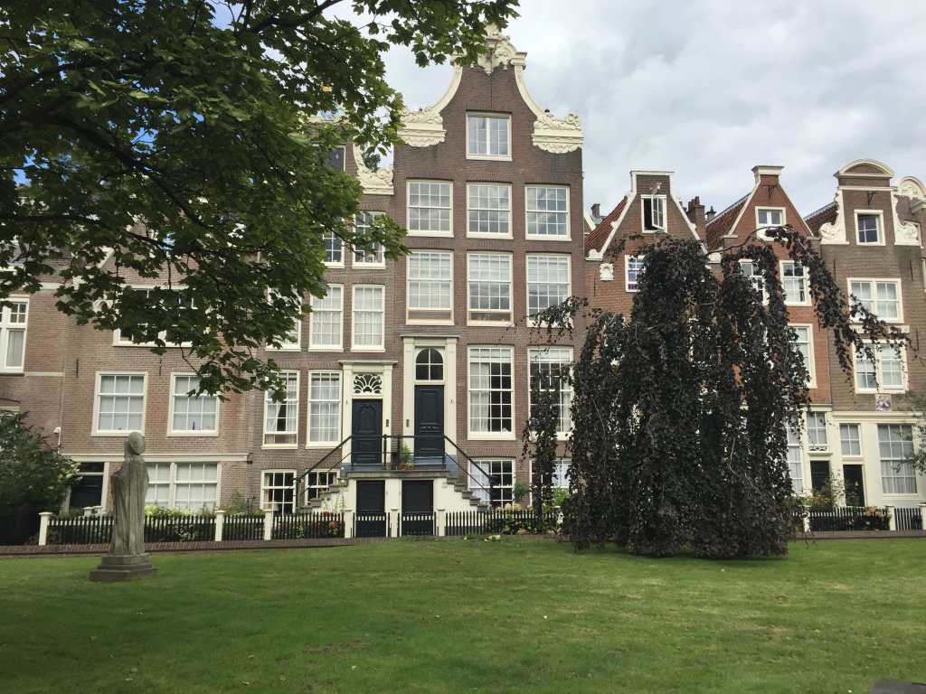 Nous repartons ensuite en transports jusqu’au cœur de la ville, où nous en profitons pour découvrir le Begijnhof (ne me demandez pas comment cela se prononce…!), qui se traduit par le Béguinage d’Amsterdam (voilà qui se prononce un peu plus facilement pour nous !). De la rue principale, vous n’en voyez qu’une toute mignonne porte en bois, un tout aussi petit porche, sous lequel les gens passent, certains connaissant, les autres ne sachant pas trop pourquoi. Nous étions un peu entre les deux, mais c’est une agréable surprise de tomber sur cette arrière cour relativement grande par rapport à l’entrée. C’est autant le côté préservé du lieu, hors du temps, qui nous a séduit que la quiétude qui y règne, en totale opposition avec l’animation des rues de l’autre coté de la porte. Le temps y semble vraiment arrêté. Un incontournable pour une petite pause totalement atypique, mais veillez à bien respecter les lieux quand même, des gens y habitent et ils méritent qu’on respecte leur lieu de vie.
