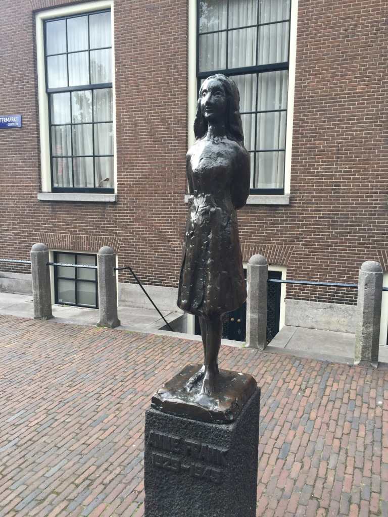 Le lendemain, après un copieux petit-déjeuner à l’hôtel, nous filons donc vers la maison d’Anne Frank, où nous avons opté pour une visite en début de journée, afin d’éviter les files d’attente trop importantes, car même pour ceux ayant réservé, il faut faire la queue… Bon, il est vrai qu’une fois que vous pénétrez à l’intérieur, vous comprenez davantage pourquoi. La maison est typique, très étroite, avec les pièces tout en enfilade, et pour vraiment apprécier la visite, il est impératif de scinder les groupes et d’avancer à rythme modéré. Bon choix des organisateurs donc. C’est un lieu unique, difficile à décrire, il est impossible d’exprimer réellement ce que l’on ressent, entre colère contre cette oppression de l’époque, espoir au vu de cette petite fille si forte au final, et chance quelque part, d’avoir aujourd’hui la vie que l’on a, quand d’autres n’en avaient pas le quart et pourtant en profitaient autant qu’ils le pouvaient… La maison est plutôt bien conservée/reconstituée, et que vous lisiez le livre après, ou l’ayez déjà lu, je pense que cela vous permet de prendre pleinement conscience de cette histoire d’une vie. A notre sens, il est difficile de visiter la capitale sans faire cette visite, mais il est essentiel si vous la faites, de prendre le temps, une fois retournés dans l’espace « musée », de lire les témoignages, regarder les extraits vidéos, de vous imprégner du lieu, avant d’en ressortir, forcément touchés.