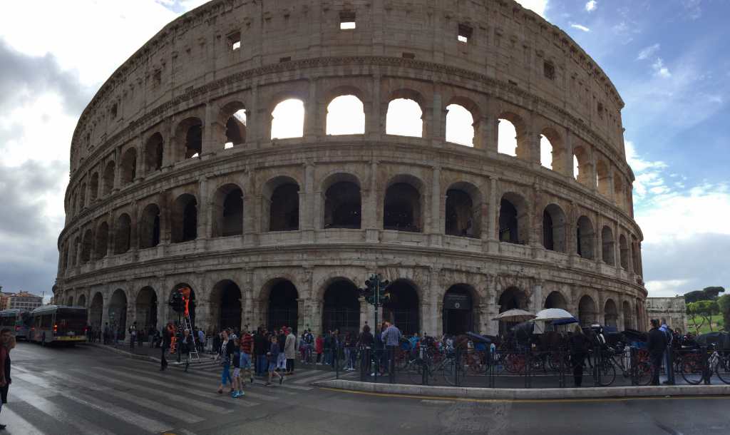 C’est en face du Forum Romain que nous irons retirer notre Roma Pass, que nous avions choisi de venir chercher sur place, le moment venu. Pour avoir d’avantage d’informations concernant les pass, et notamment celui de Rome, nous vous invitons par ici ! Repartons maintenant en direction du Colisée, où notre guide nous attend pour 14h. Arrivés un peu tôt, nous ferons une petite boucle dans le quartier, après avoir repéré l’endroit où nous devons être pour le début de la visite. Nous mangerons dans un petit snack avec vue sur le Colisée, bien conscients cette fois-ci d’être un peu plus dans un secteur touristique.