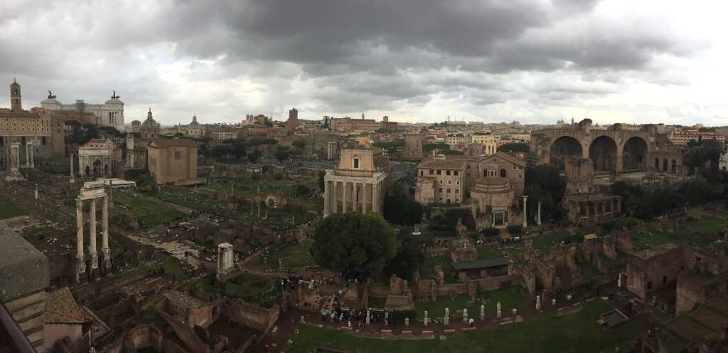 Il est maintenant l’heure de visiter avec une guide le Colisée, qui nous laissera un sentiment mitigé. Elle, a plutôt bien aimé, de par le fait d’avoir les explications nécessaires à la compréhension du lieu, Il, est resté un peu plus sur sa faim, avec probablement trop d’attentes. Le monument est l’un des plus connus de Rome, mais sa reconstitution partielle ne permet pas de se représenter pleinement ce à quoi il ressemblait lors de son apogée. Si l’extérieur permet de se rendre compte de la beauté du monument, l’intérieur laisse surtout apparaître beaucoup de vestiges, et demande bien plus d’imagination qu’il n’y paraît pour se représenter ce que pouvaient voir les Romains de l’époque. Le point positif, c’est qu’en sortant, notre guide nous a accompagné également jusqu’au Forum Romain, pour poursuivre ses explications. Le point de vue sur la cité depuis ce lieu est quant à lui à couper le souffle. Et même si forcément lui aussi accuse le poids des siècles, il nous a paru plus conservé et ainsi plus facile de s’y projeter à l’époque. Evidemment, ce n’est que notre avis personnel, et il est inconcevable d’aller à Rome sans envisager de visiter le Colisée, mais le monde, les files d’attente et finalement le timing serré de la visite peuvent réduire l’intérêt porté à l’expérience.