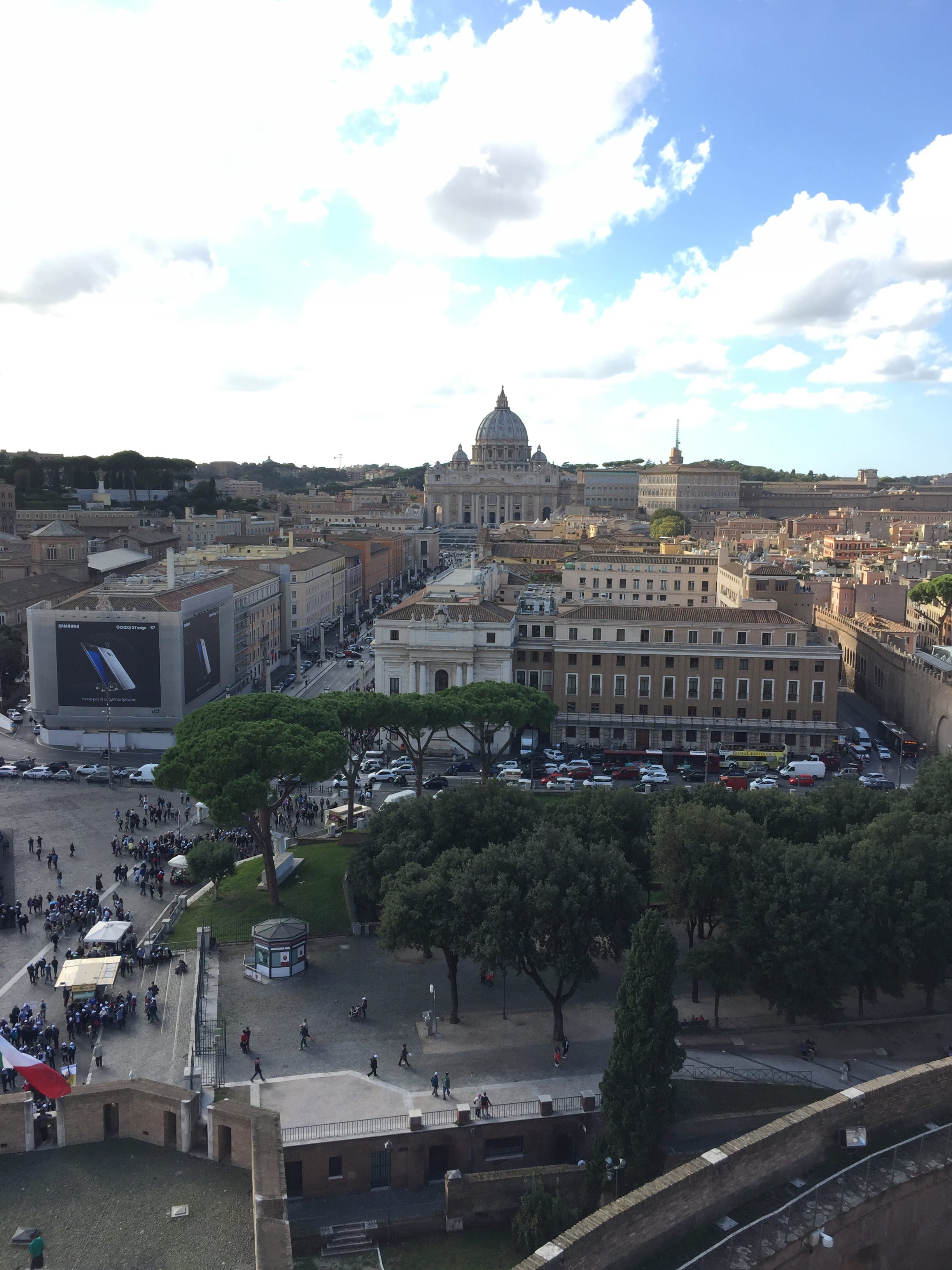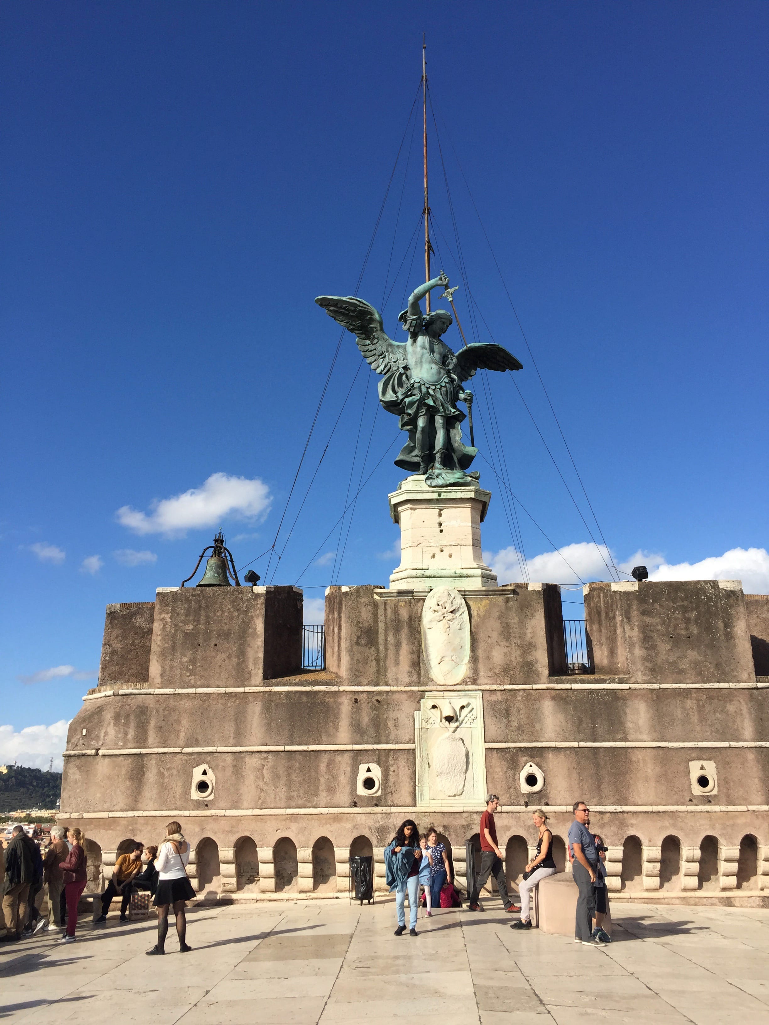 Il est maintenant temps de retrouver Rome, et c’est au château Saint-Ange que nous ferons une pause afin de le visiter et prendre un peu de hauteur sur la ville. Si le bâtiment est très joli de l’extérieur, lorsque l’on s’en approche, au bord du Tibre, l’entrée peut refroidir un peu. Mais nous voulions en voir davantage et c’est finalement la bonne décision. La vue sur la ville est tout simplement magnifique, mais celle sur la basilique l’est tout autant si ce n’est plus. L’archange Michel est quant à lui aussi imposant que haut perché. Si la visite ne prend pas plus d’une bonne heure en prenant son temps, elle mérite le détour, de par la diversité qu’elle propose, entre monument bien conservé, explications dispersées mais intéressantes, et panorama à couper le souffle.