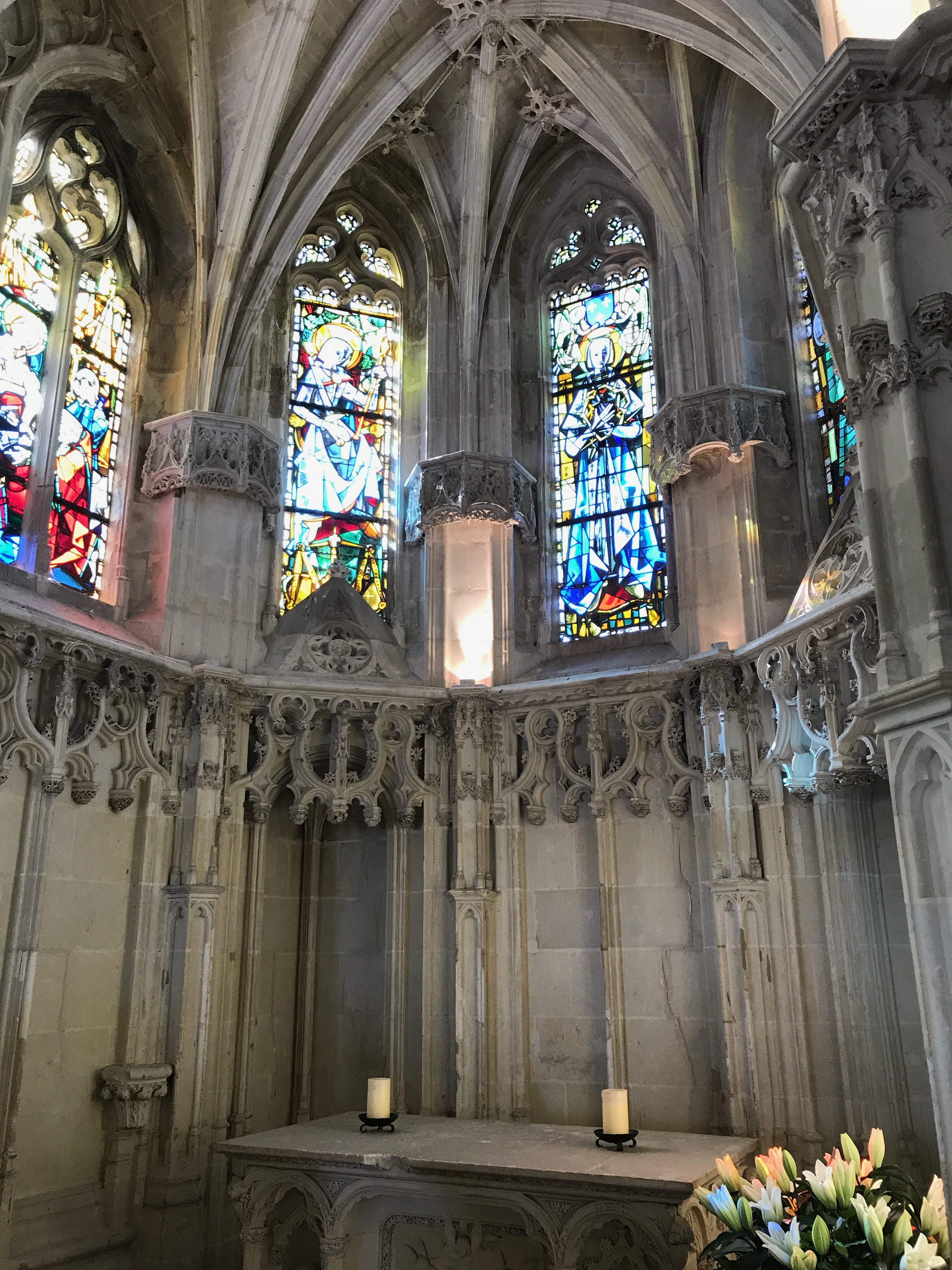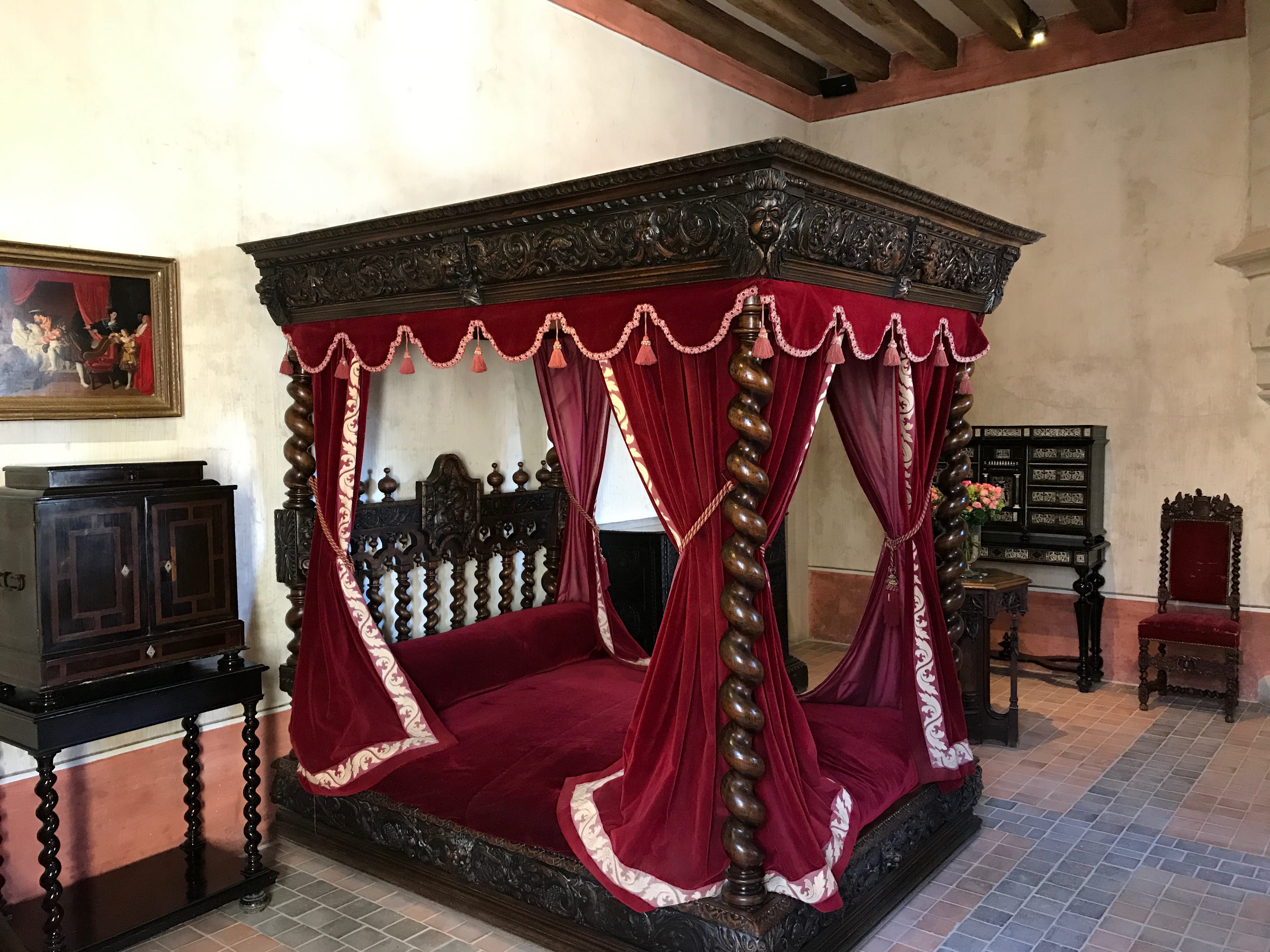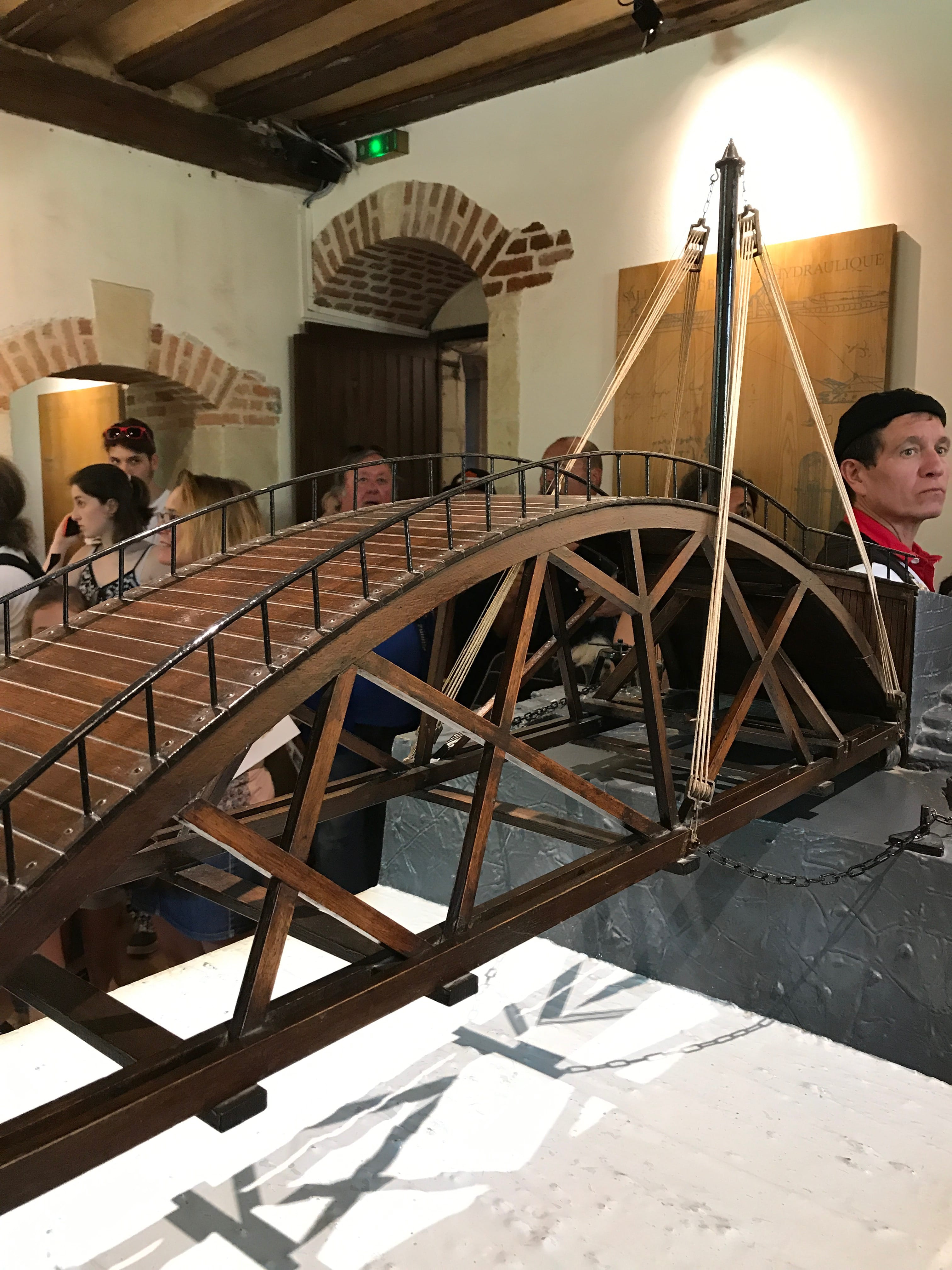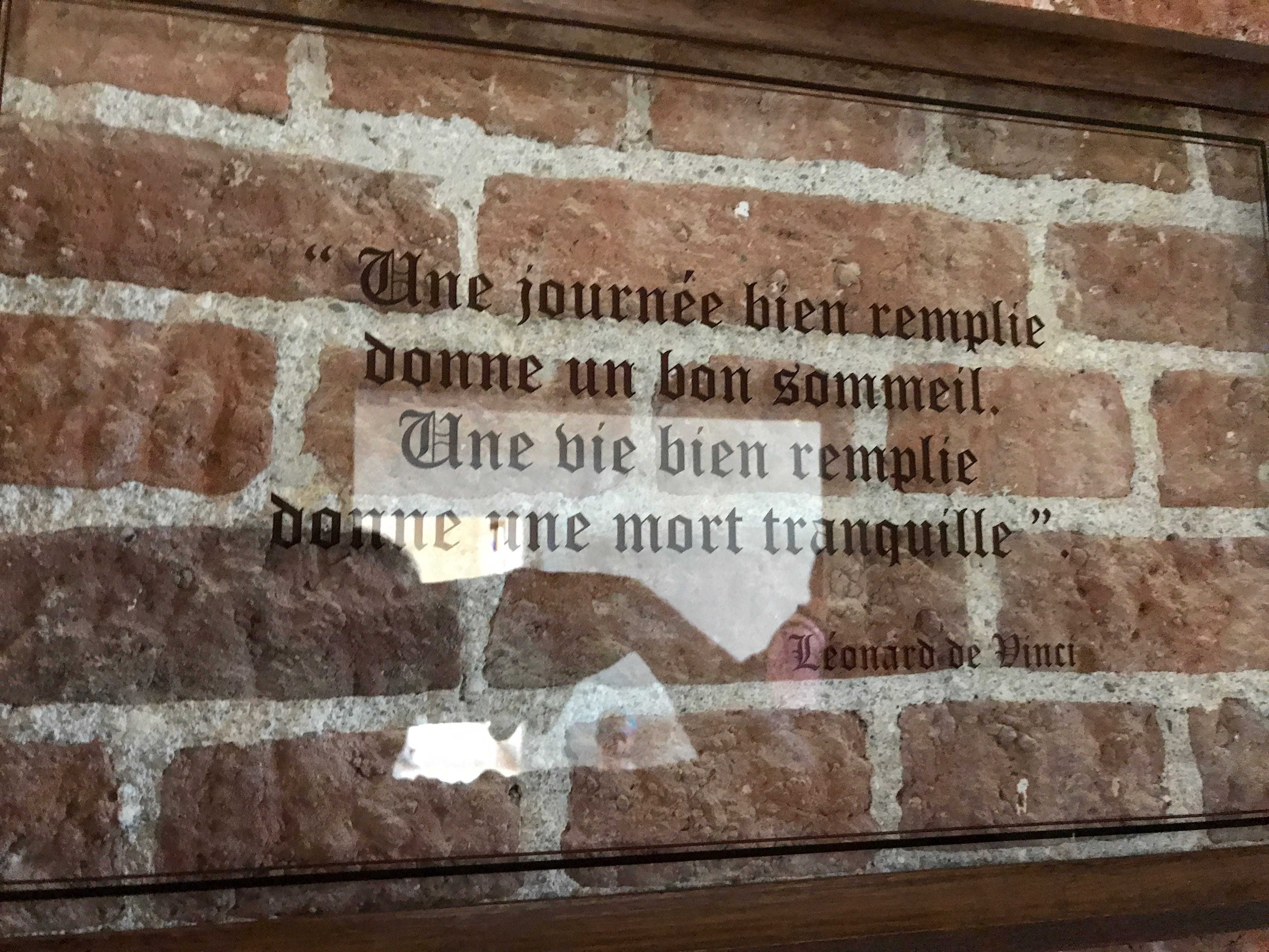 Contrairement à la veille, c’est de bon matin que nous sommes arrivés à bon port, et c’est donc avec une belle place sous les arbres en bord de Loire que nous laissons notre véhicule pour nous diriger vers le château. Nous avons beaucoup apprécié la visite, parce que celle ci était guidée, et sans surcoût. Il suffira d’avoir la patience d’attendre le départ d’un groupe, ce qui ne pose aucun problème lorsque celui-ci coïncide avec le début de votre visite, comme ce fut le cas pour nous ce jour-là. Le château est superbe, la visite intéressante, et des lieux clés sont à découvrir, telle que le tombeau de Léonard de Vinci, non loin du château. Contrairement à Cheverny, celui-ci est un peu vide par contre, même si le rôle des pièces se comprend bien grâce au guide et aux différents volumes assez parlant des différentes pièces traversées.