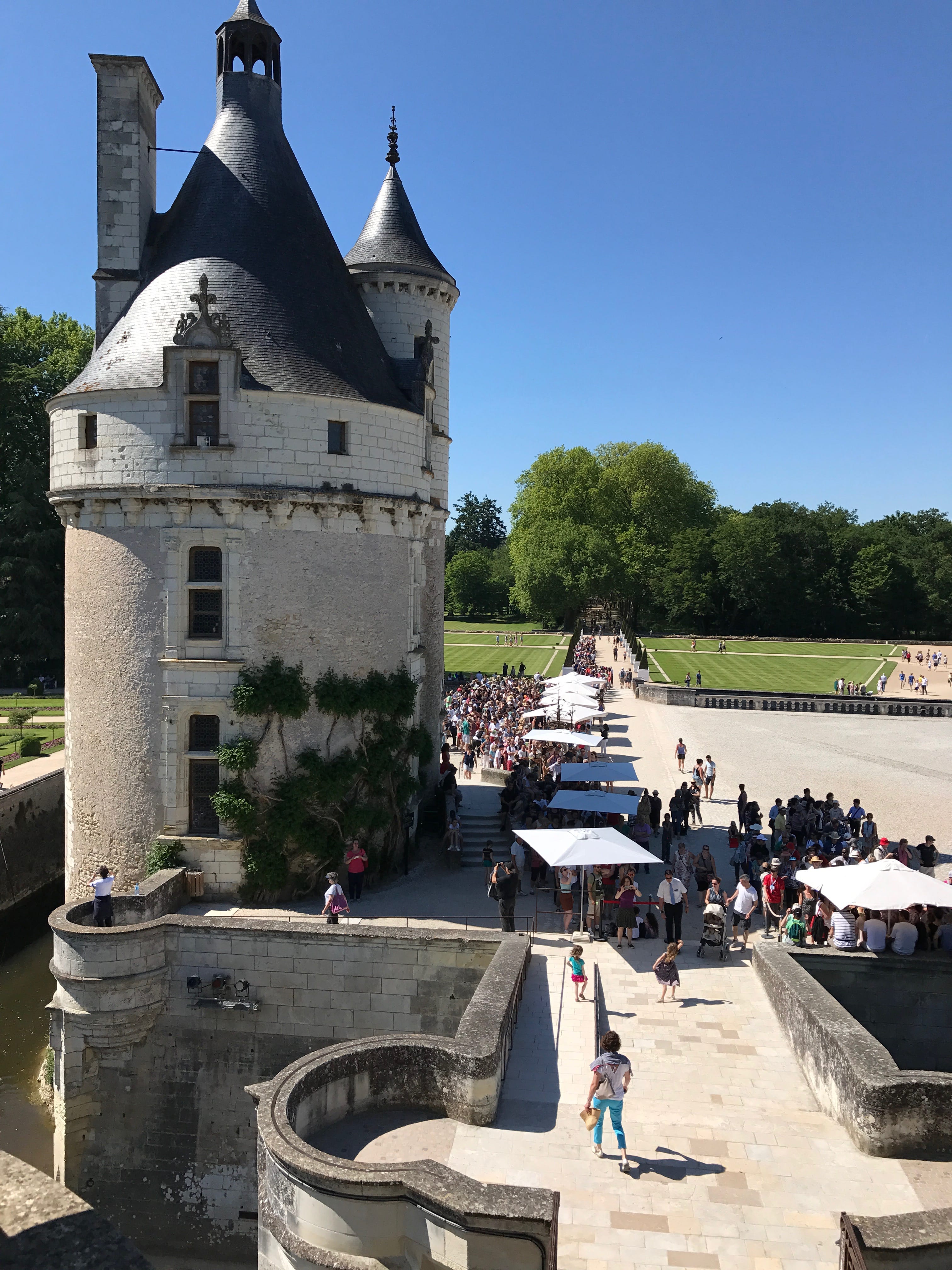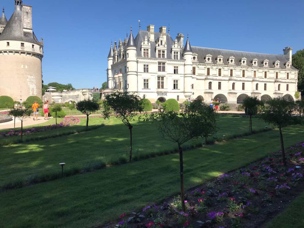 Le château de Chenonceau à Chenonceaux (!) est franchement l’un des incontournables de la boucle, et forcément l’un des plus pris d’assaut par les touristes. Mais cela se comprend, lorsque l’on voit les collections exposées, la reconstitution de certaines pièces comme les cuisines, la grande galerie enjambant le Cher (et non la Loire !), la majestueuse vue de l’extérieur et les jardins magnifiquement entretenus. Nous en garderons un très bon souvenir, comme Il, en avait déjà un de l’époque où il l’avait découvert, posant pour le cliché souvenir, tout petit dans l’immense cheminée.