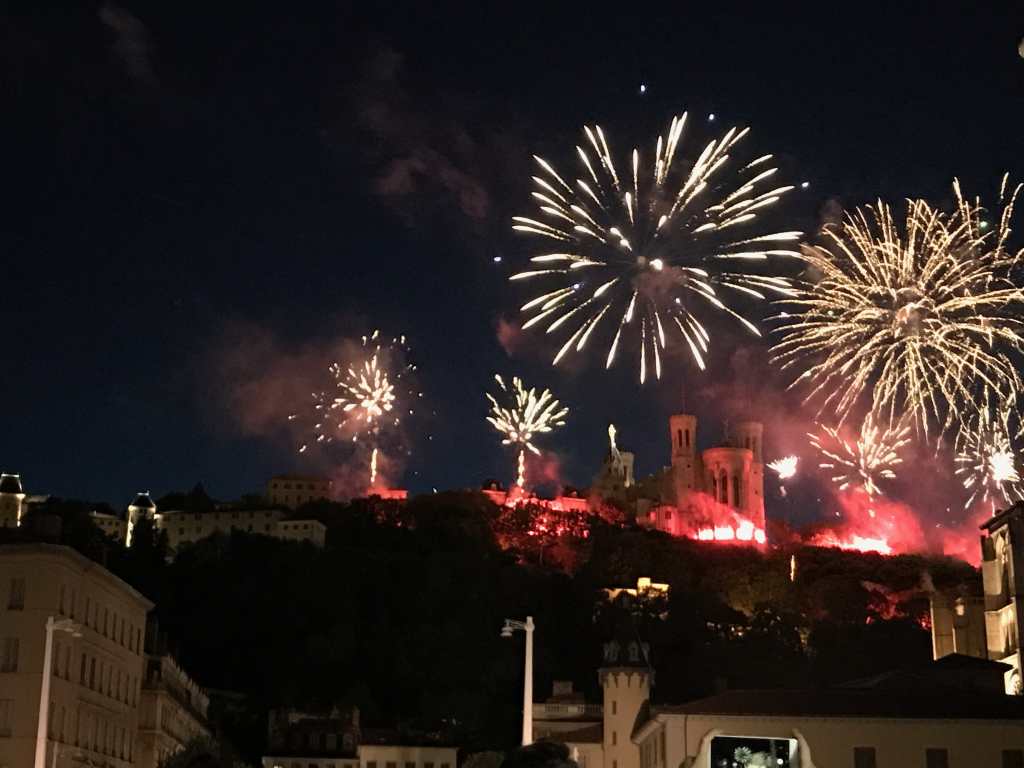 Plus sérieusement, cette anecdote est en partie vraie, mais nous avons surtout choisi Lyon, de par sa situation géographique. La ville est sur notre itinéraire, idéalement placée en termes de distance et temps par rapport, à nos points de départ et d’arrivée, mais aussi car nous sommes partis un 14 juillet et nous voulions profiter du feu d’artifice de la ville, tiré depuis la colline de Fourvière. Les souvenirs de notre récent séjour dans la ville étant encore vifs, nous avons également pu en faire profiter nos compagnons de voyage ne serait-ce que pour quelques heures. Il est également à noter que redécouvrir Lyon en plein été n’a pas été pour nous déplaire.