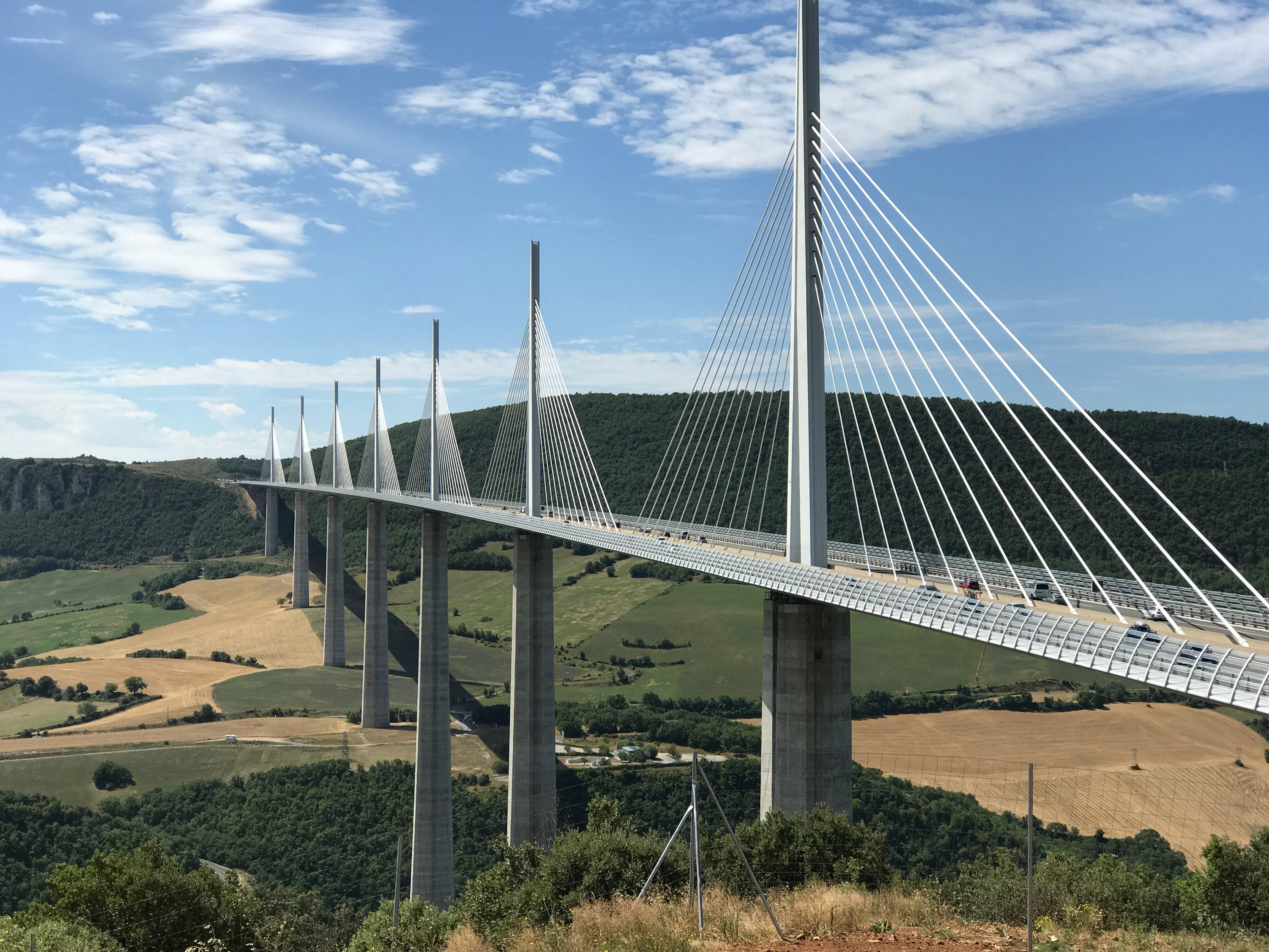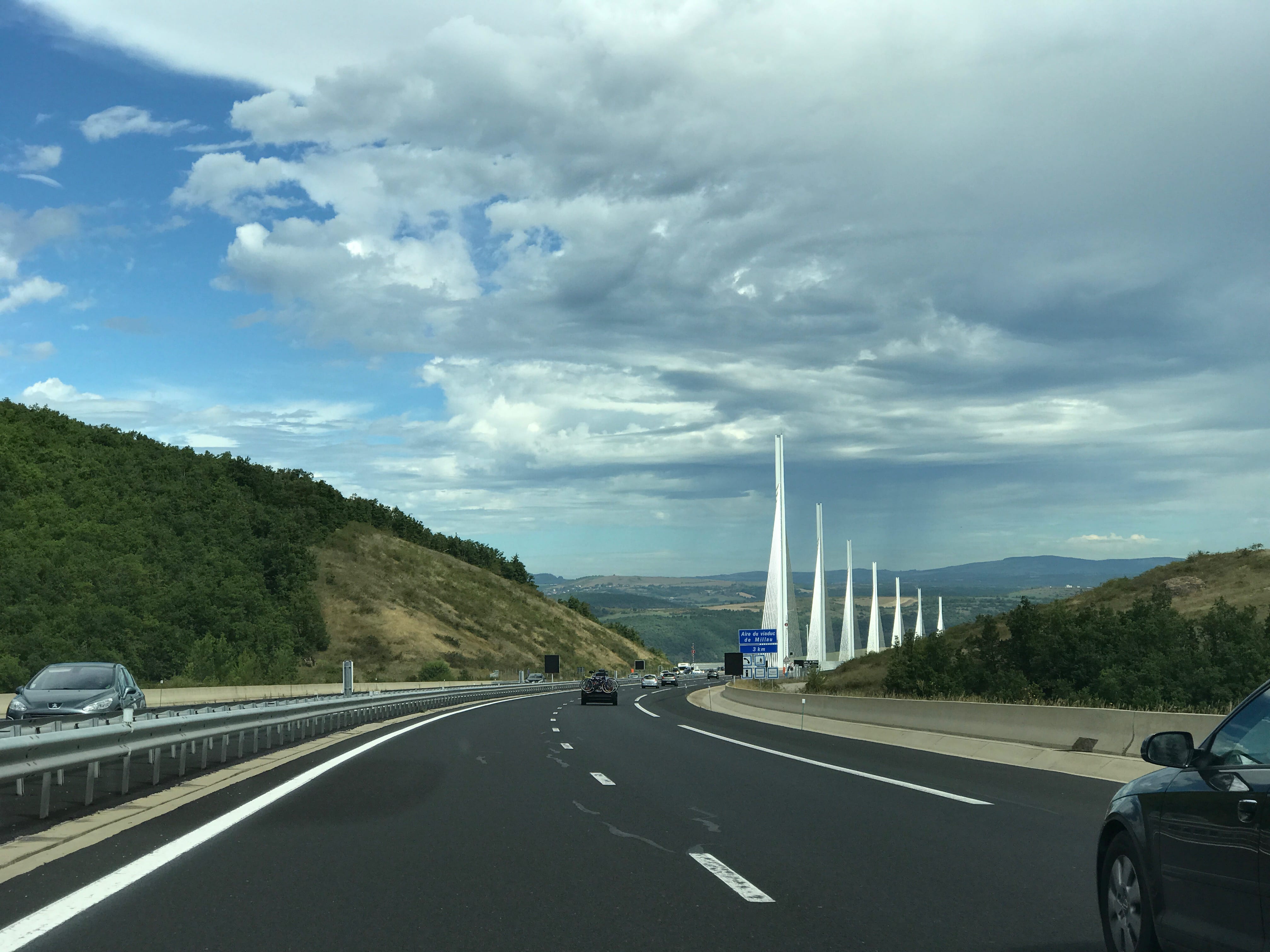 Sur la route du retour, nous avons choisi d’opter pour l’autre alternative possible pour rentrer. A savoir remonter par Clermont-Ferrand. Même si la distance n’est pas bien supérieure à l’alternative par Lyon, l’autoroute est bien plus vallonnée et chargés comme nous l’étions, le trajet n’était pas aussi plaisant qu’à l’aller, bien que sans aucun bouchon. Tout cela pour pouvoir aller admirer un chef d’oeuvre qui n’est plus si jeune mais qu’aucun de nous n’avait encore eu l’occasion de voir : Le Viaduc de Millau.