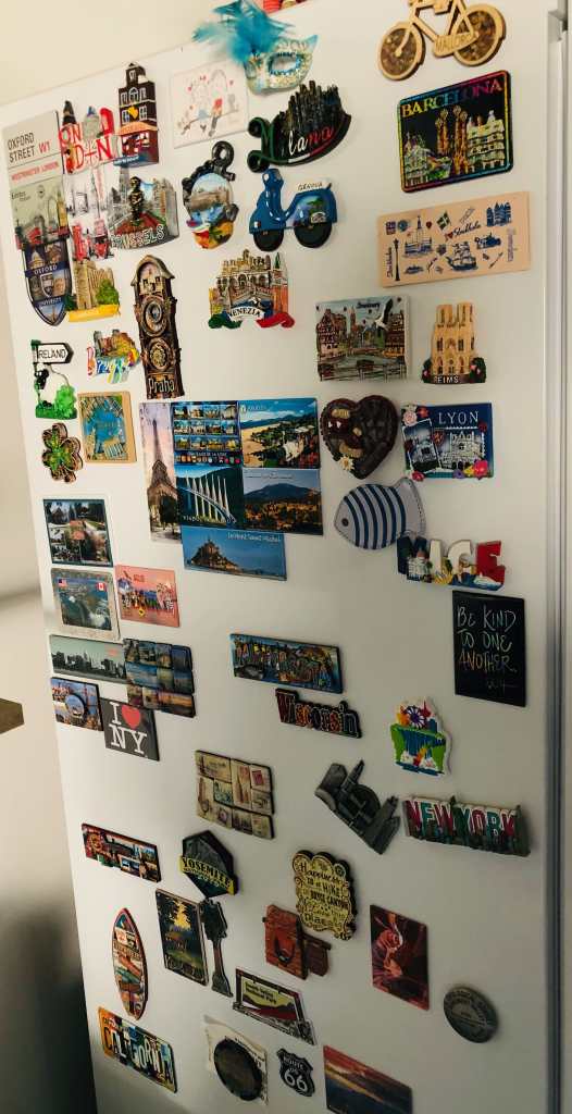 Les aimants sont un peu notre grand classique. Elle, avait déjà commencé sa collection avant lui, et ils l’ont poursuivi tous les deux, comme un peu pris dans un engrenage. Mais l’aimant a cela de pratique et incontournable que, même s’il n’est pas forcément original, il ne coûte jamais très cher, existe sous de très nombreuses formes et voyage facilement sans prendre de place. Il est donc le souvenir idéal à rapporter, même à offrir et peut se choisir malgré tout de manière très personnelle bien qu’il ne soit pas forcément original de base.