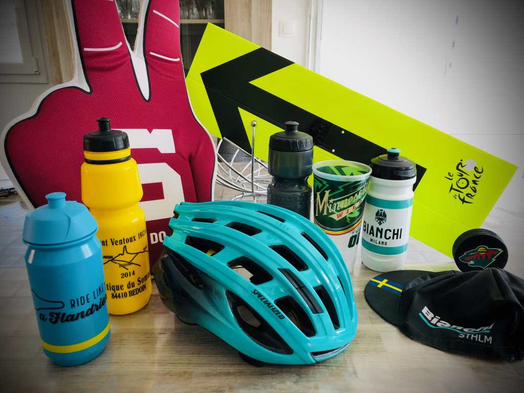D’autres souvenirs se démarquent également de par l’originalité qu’ils représentent, comme par exemple les vrais dés de casinos que nous avons achetés à Vegas, pour quelques dollars, le banc acheté à Londres, à Camden Market, fait devant nos yeux par un artiste plutôt doué, les bidons de vélo rapportés du magasin d’usine Trek dans le Wisconsin, des Flandres, du Mont Ventoux, le palet de hockey acheté au Xcel Center à Minneapolis, les balles de base-ball dont l’une nous a été offerte par Maura, et l’autre achetée au stades Yankess, à NYC, jusqu’au petit phare rapporté de Gallipoli.