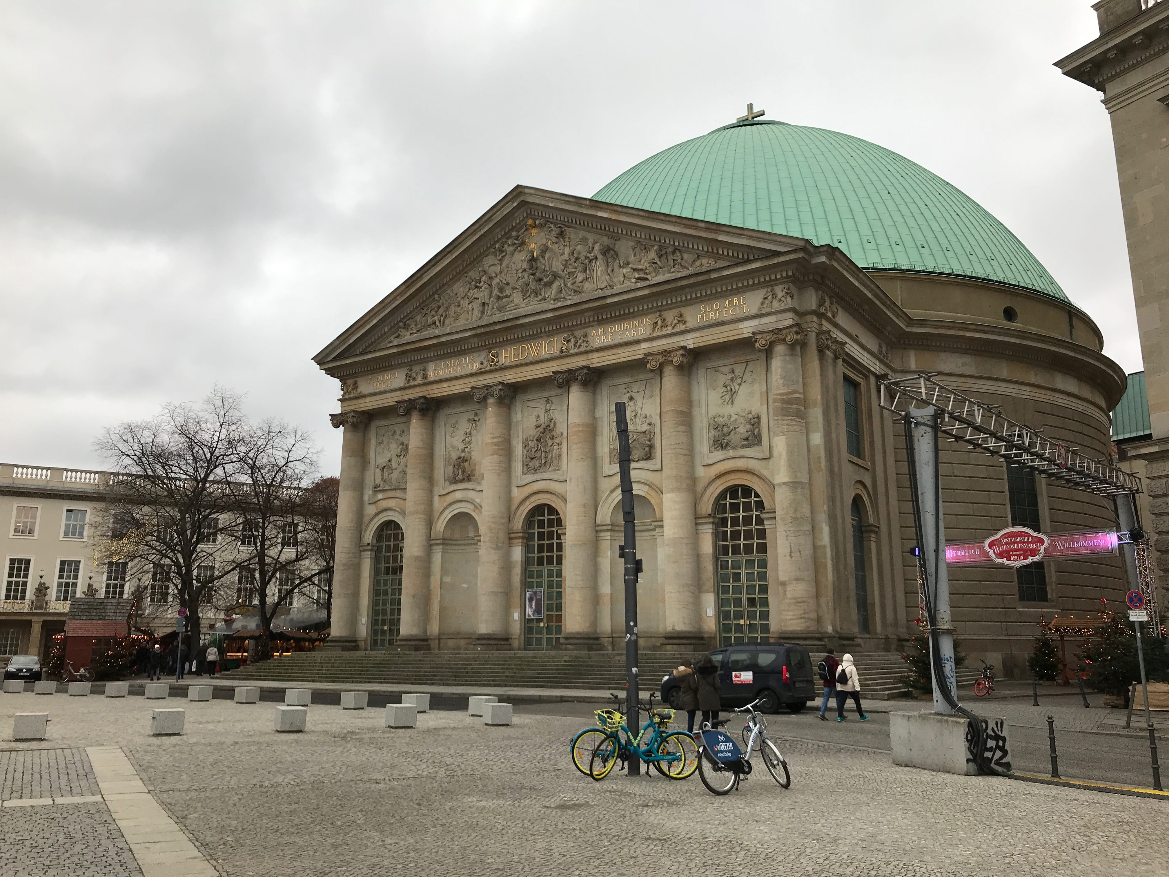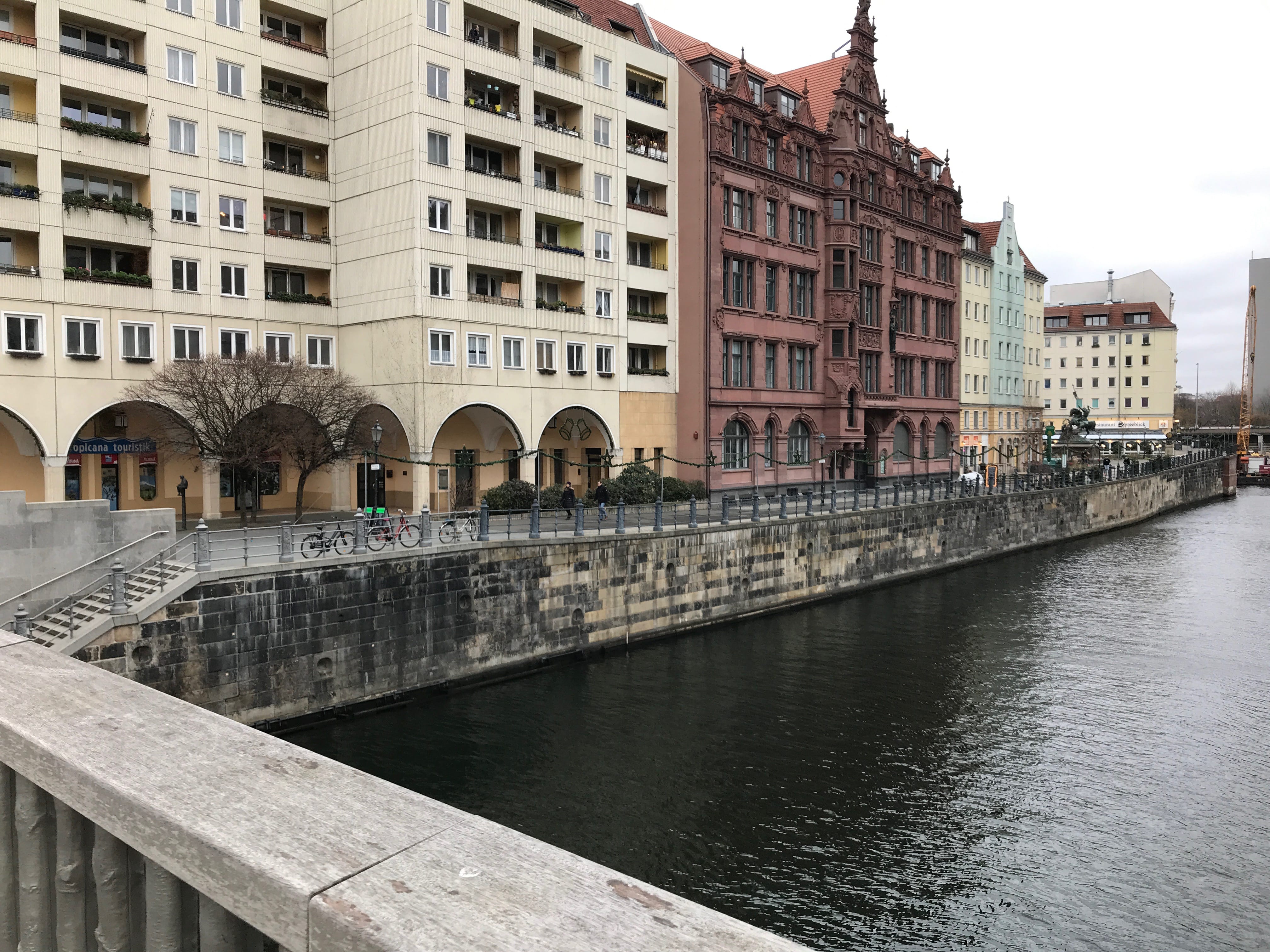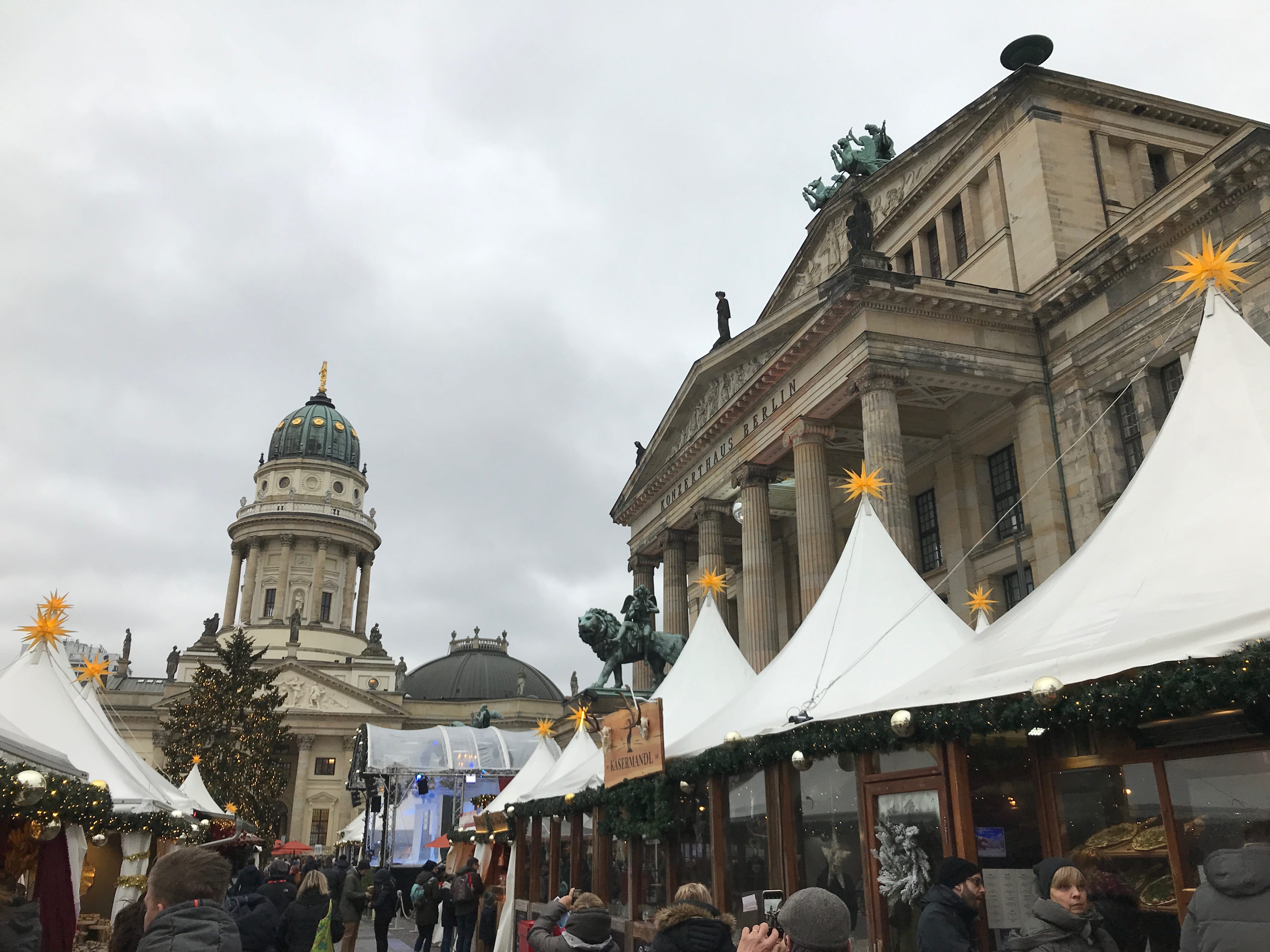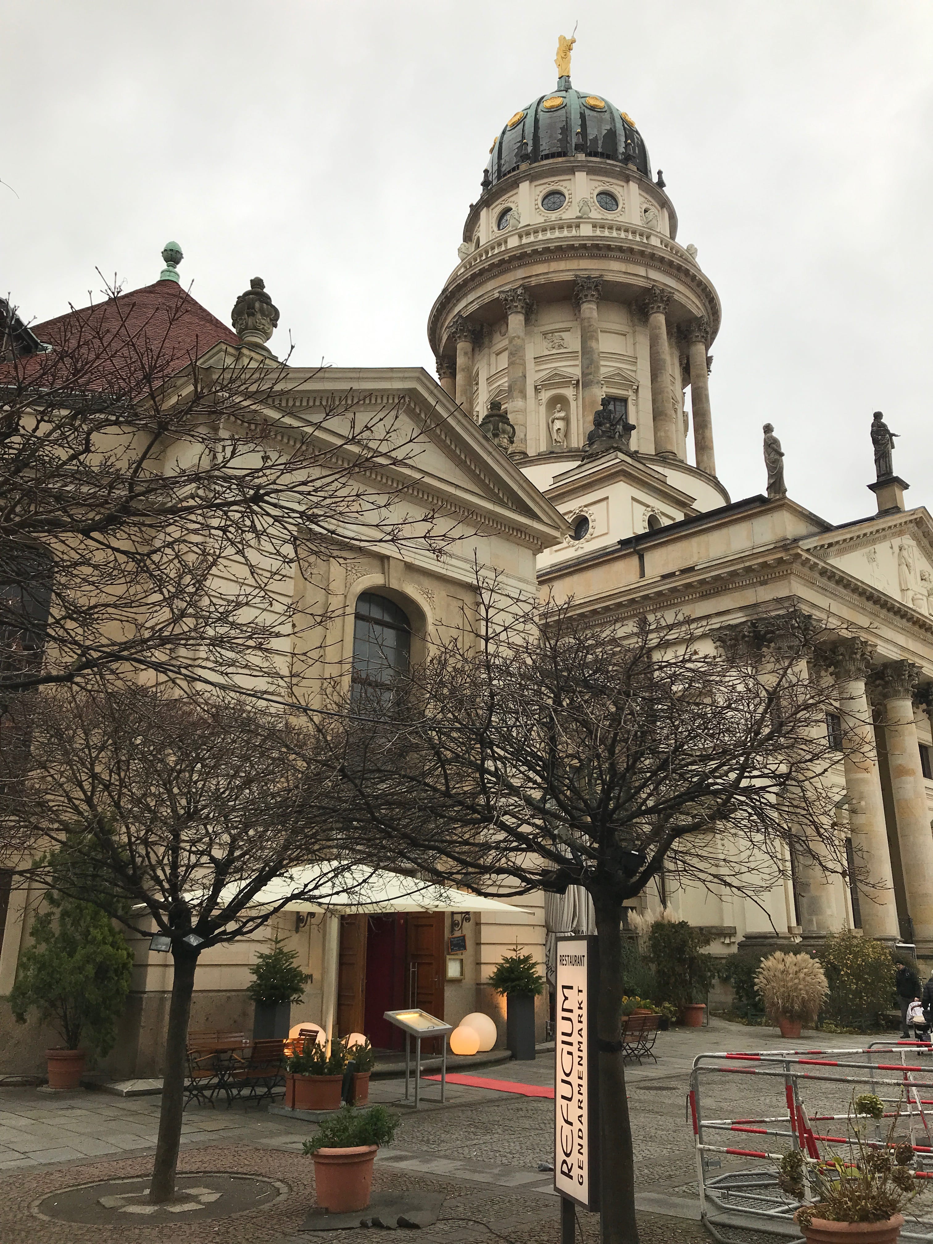 Nous venions à ce moment là du Gendarmenmarkt, où un magnifique marché de Noël vit ses derniers beaux jours et nous permet ainsi de nous restaurer de manière plus régionale, enfin presque. Il optera pour un fameux currywurst, Elle choisira raclette… Mais parcourir les stands sur une touche plus légère ne fut pas non plus pour nous déplaire, surtout que le reste de la journée restait encore aussi historique que chargée en émotions. Nous avons quitté le marché par une sortie à l’opposé de là où nous y étions entrés, évitant ainsi de nous replonger dans la foule ici bien réunie et présente.