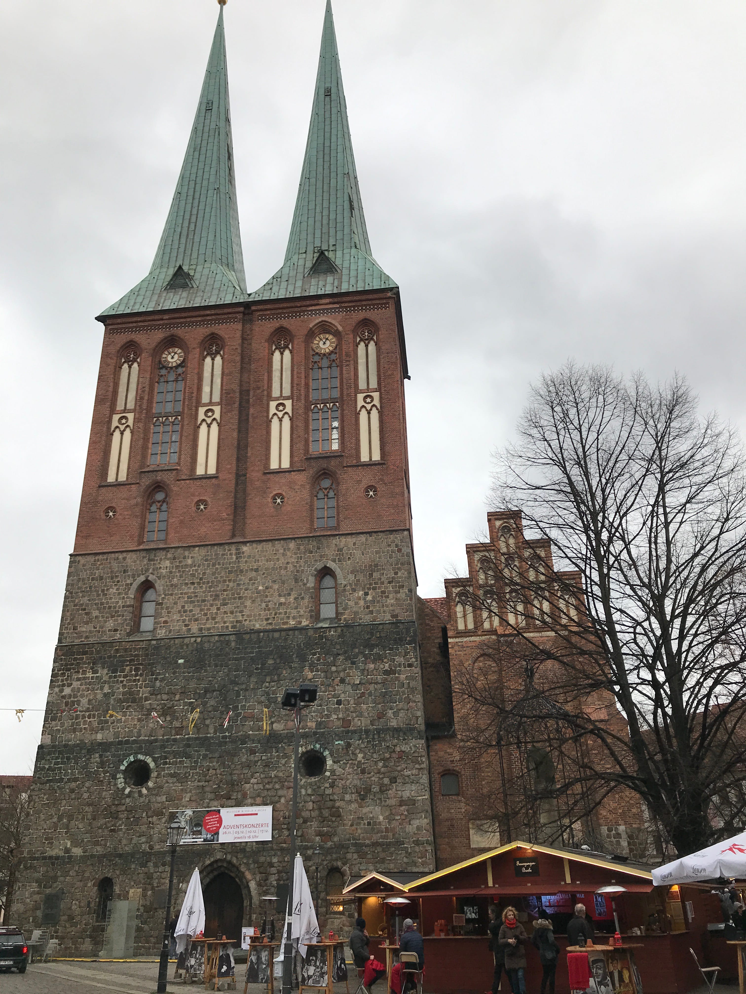Direction la Rotes Rathaus, l’Hôtel de Ville de Berlin, bâtiment superbe et atypique, parfaitement reconnaissable. Elle est située à distance raisonnable, à l’Est du centre, et a comme voisine proche la jolie Académie de musique. Mais ce qui nous a amené dans ce quartier en premier lieu, c’est le quartier Saint Nicolas, le plus ancien quartier de Berlin. Il s’articule autour de l’église du même nom, et a la particularité, s’il a été détruit presque totalement lors de la Seconde Guerre Mondiale, d’être reconstruit le plus fidèlement possible à l’origine pour recréer l’illusion d’un vieux quartier de Berlin. Même en sachant cela, difficile de ne pas être sous le charme de ce lieu assez paisible, à échelle plus humaine et non loin de la Spree.