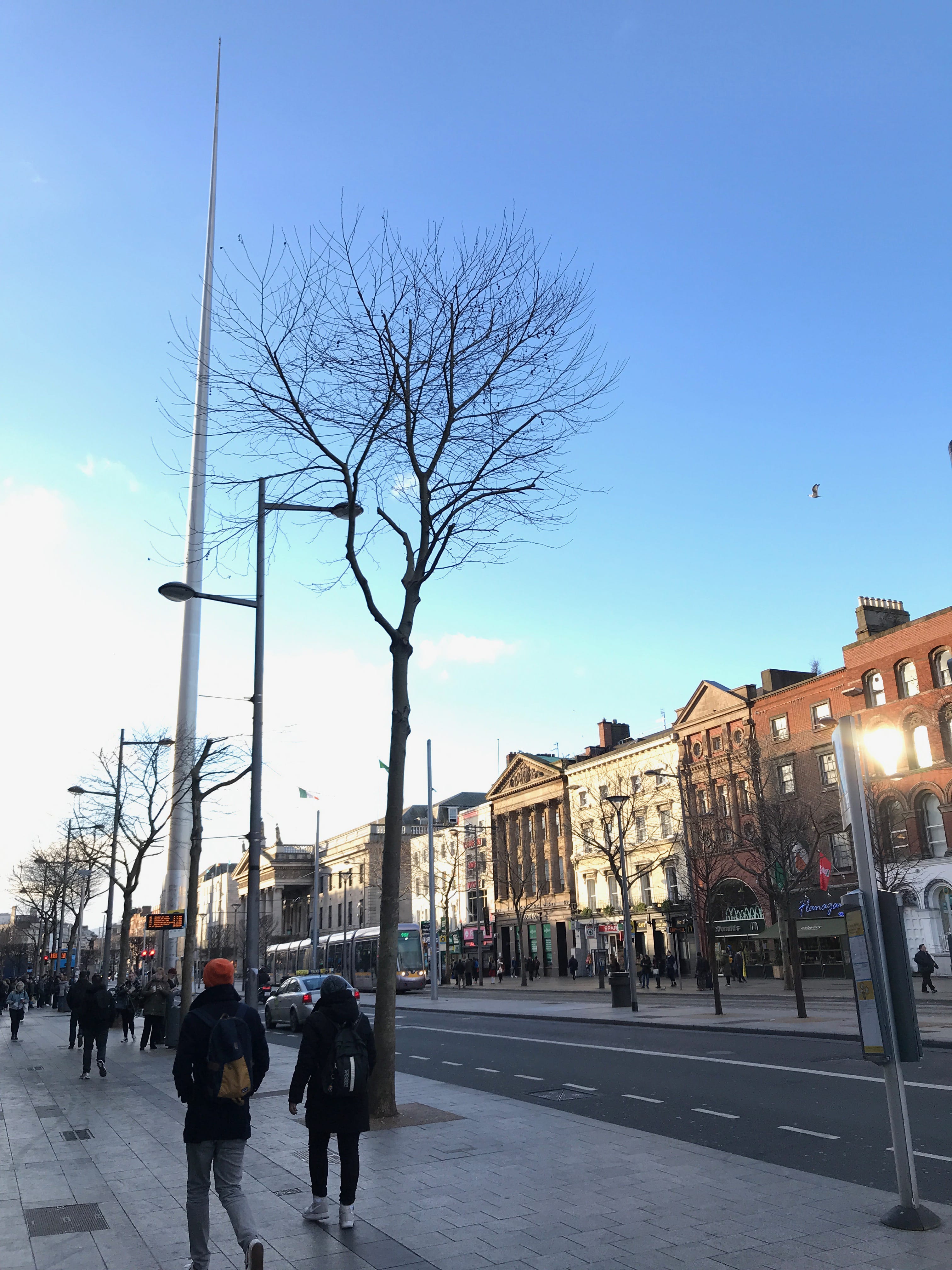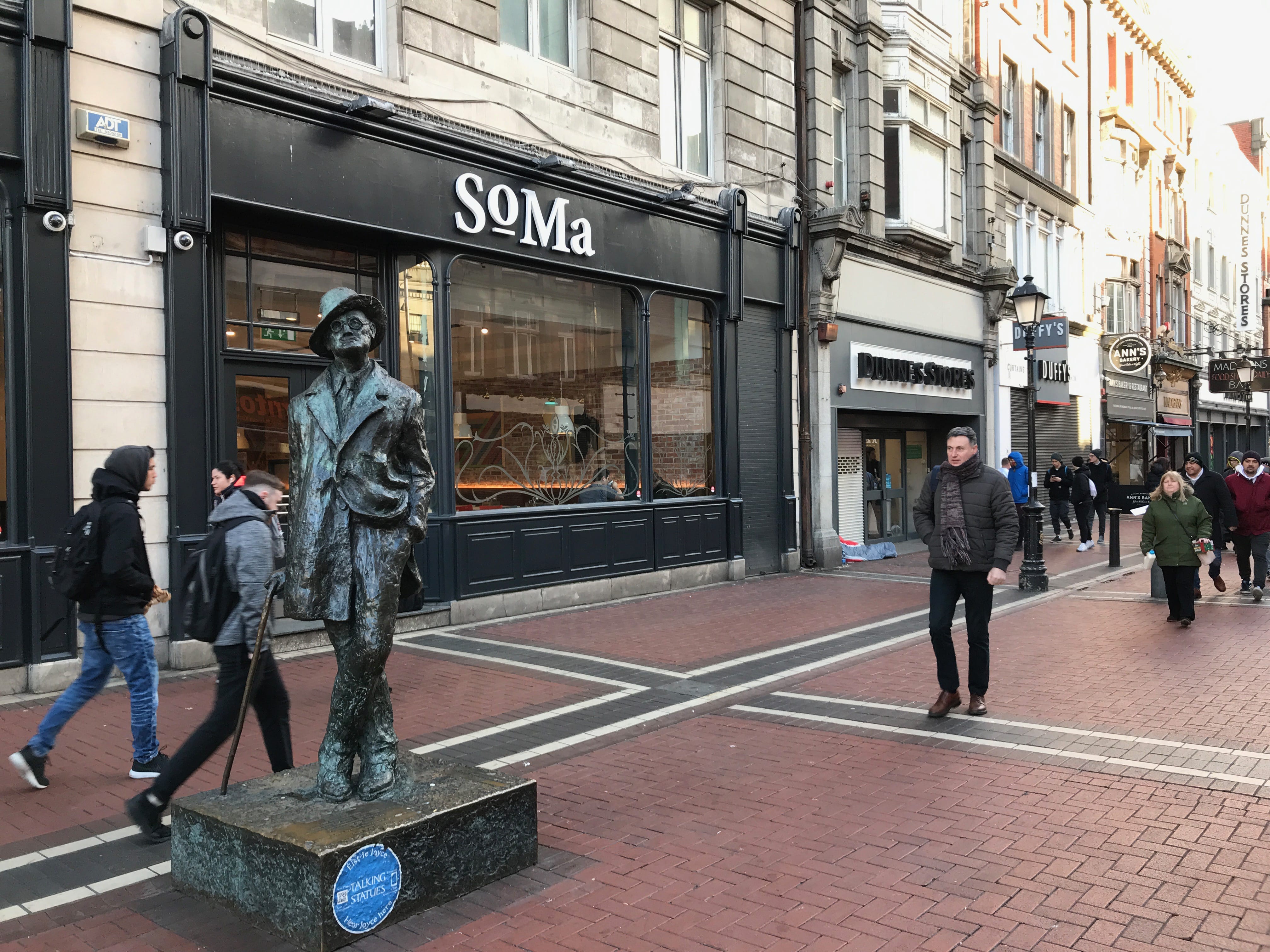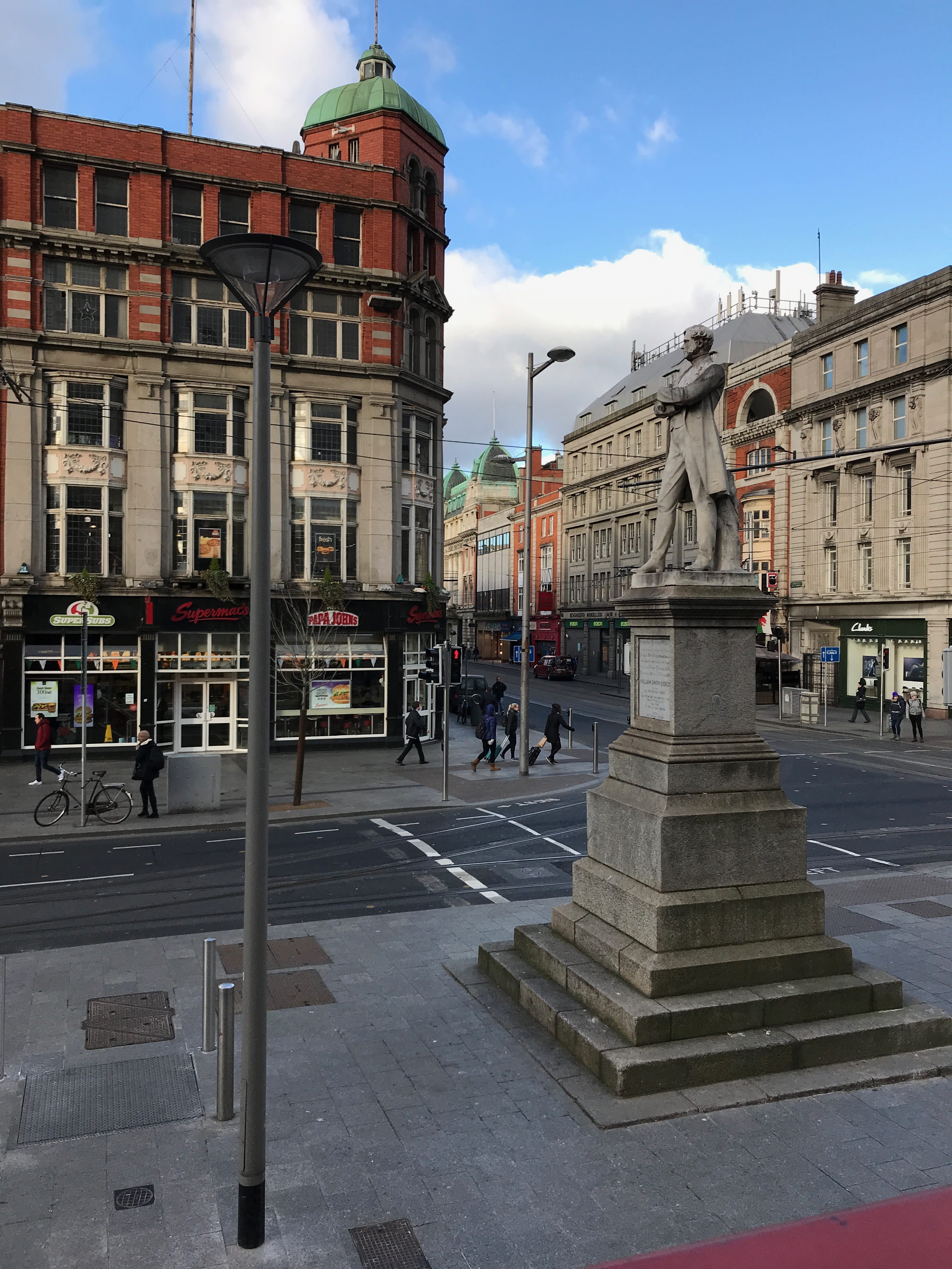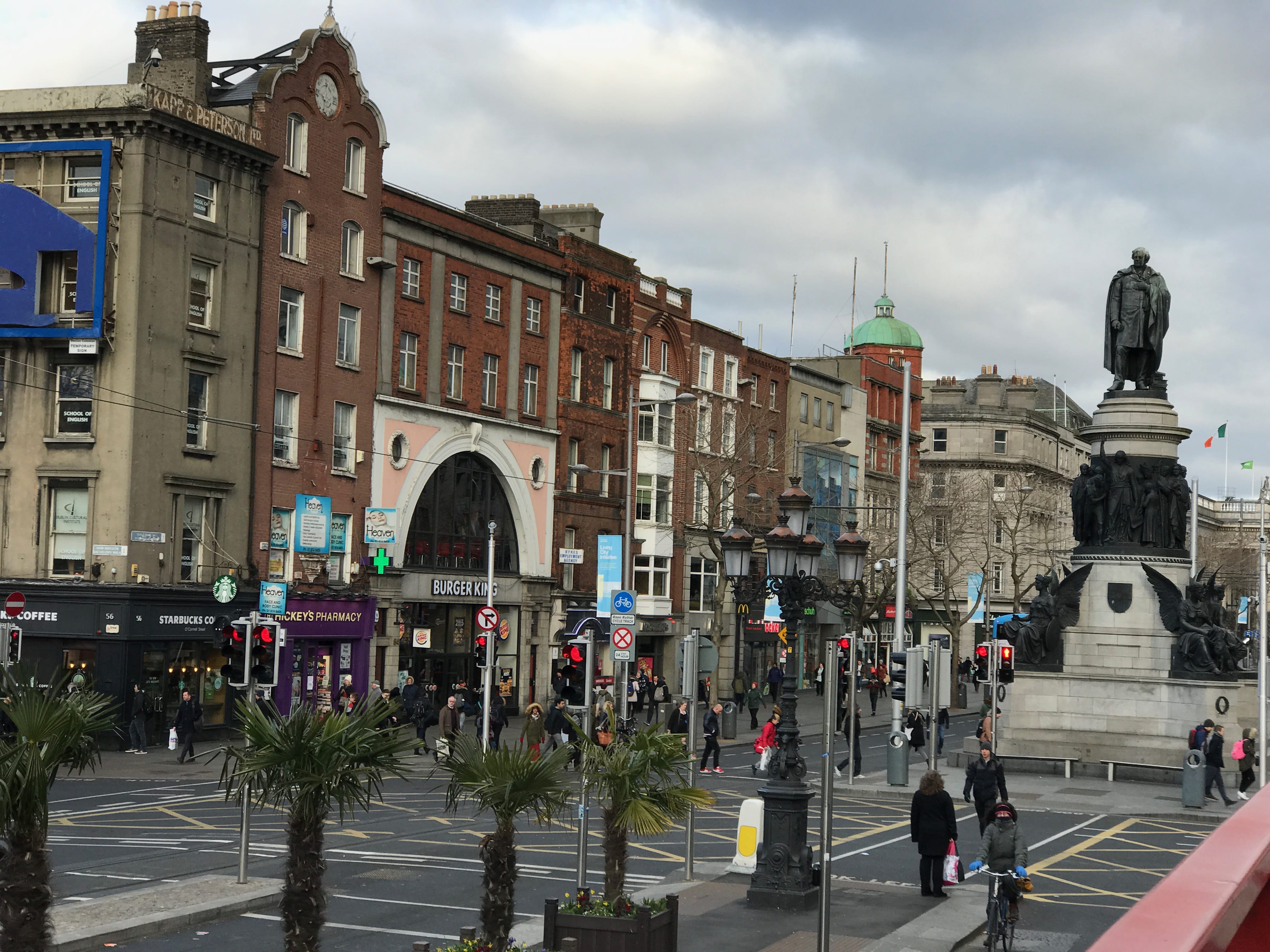 Nous nous rendrons ensuite à l’arrêt de bus le plus proche pour rejoindre le centre-ville, en passant devant l’Abbey Presbyterian Church et descendrons sur O’Connell Street Upper. Avant de vraiment commencer la journée, nous irons prendre un petit-déjeuner dans une chaîne de café bien connue en Grande-Bretagne : les Caffè Nero. C’est un choix que nous faisons la plupart du temps lors de nos séjours. En effet, nous nous en sortons en général pour environ 15€ pour nous deux pour nos petits-déjeuners alors que les hôtels en proposent généralement pour ce prix-là mais par personne. C’est donc une économie non-négligeable, surtout que nous profitons rarement de la large offre des petits-déjeuners d’hôtel et cela nous permet enfin de décoller plus vite de la chambre.
