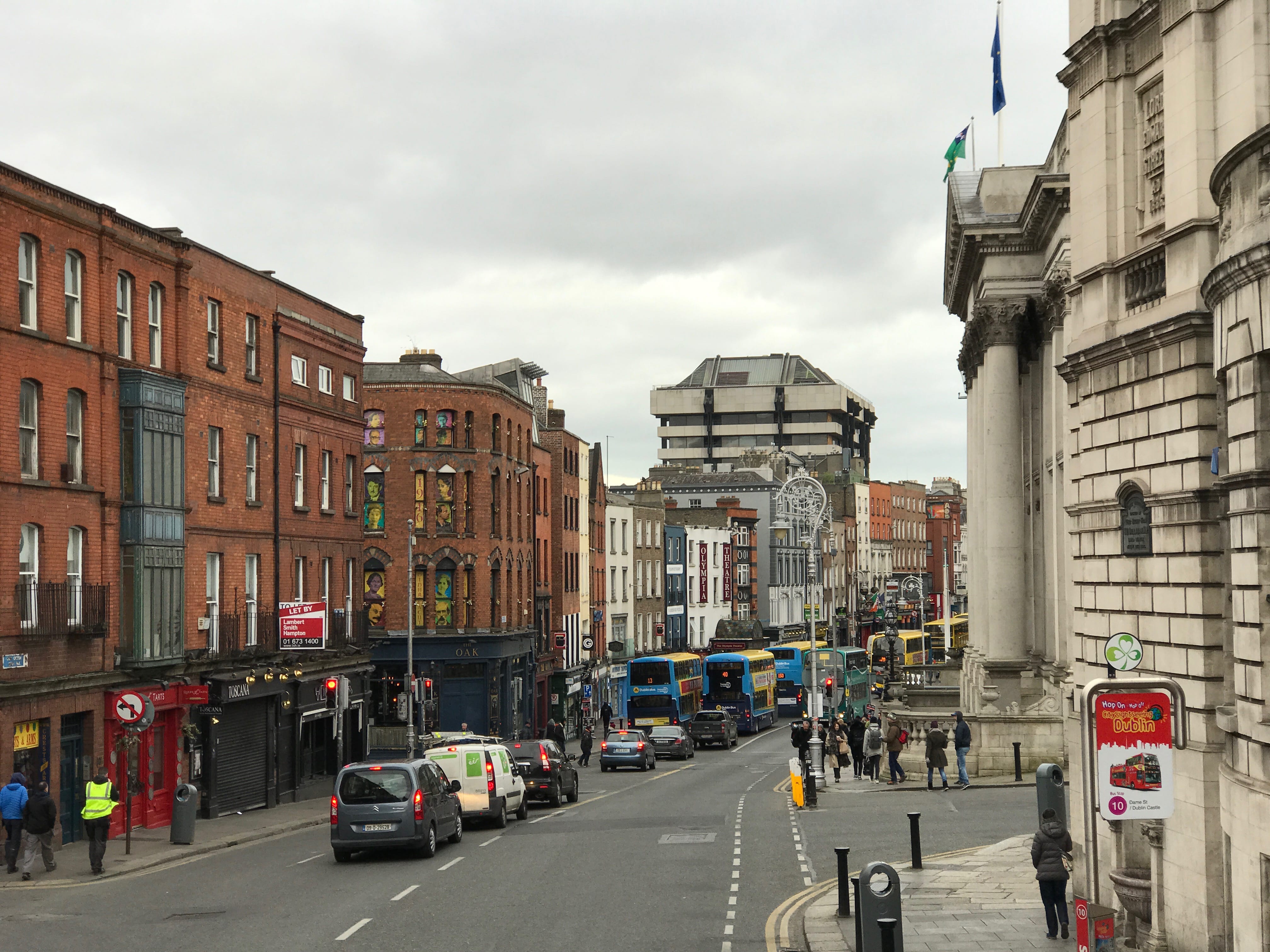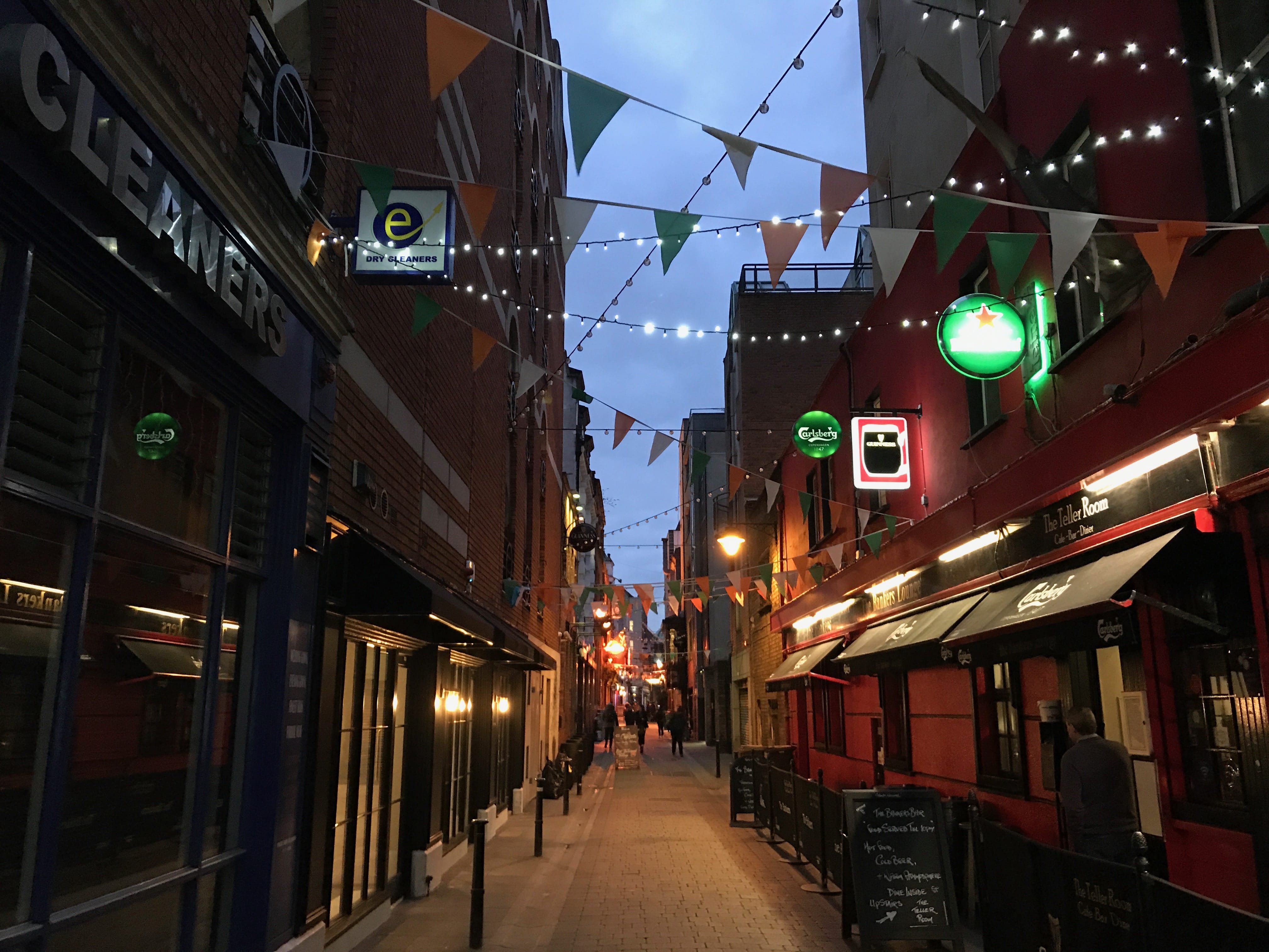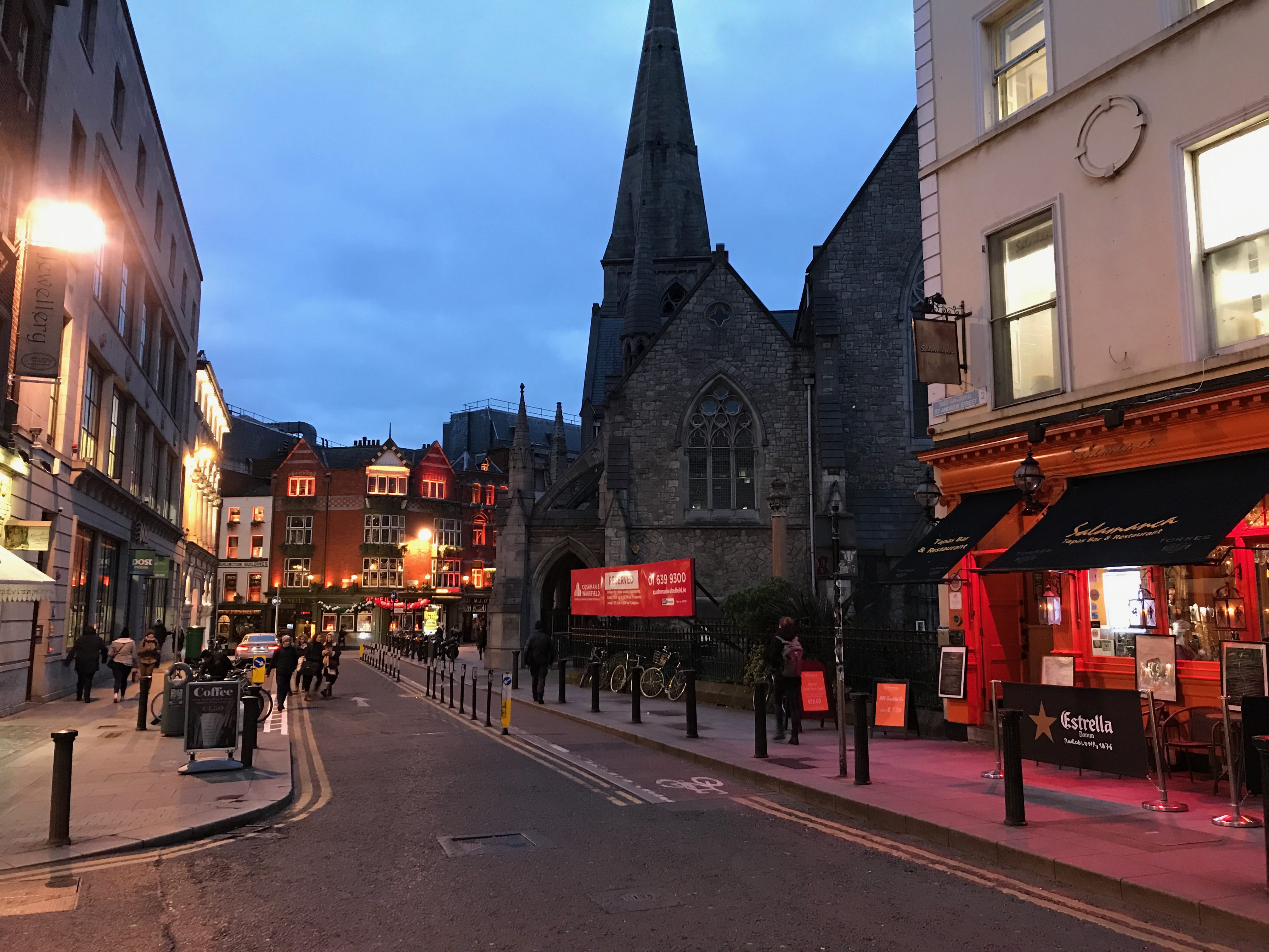 C’est donc pendant quelques jours lors des vacances scolaires de février, que nous avions choisi de partir à Dublin. Comme à notre habitude, nous sommes partis de l’aéroport de Luxembourg mais cette fois, les horaires nous imposaient un départ en fin d’après-midi. Nous avons donc atterri dans la capitale irlandaise à 19h, heure locale, le décalage horaire d’une heure nous aidant à arriver un peu moins tard que prévu. Nous sommes donc en plein hiver, à la nuit tombée, en train de nous diriger vers notre hôtel. Erreur de notre part cette fois, notre hôtel était à une plus grande distance des transports en commun que celles auxquelles nous étions habitués. Cela à rendu sa recherche plus compliquée pour le premier soir. Mais la marche en valait finalement la peine !