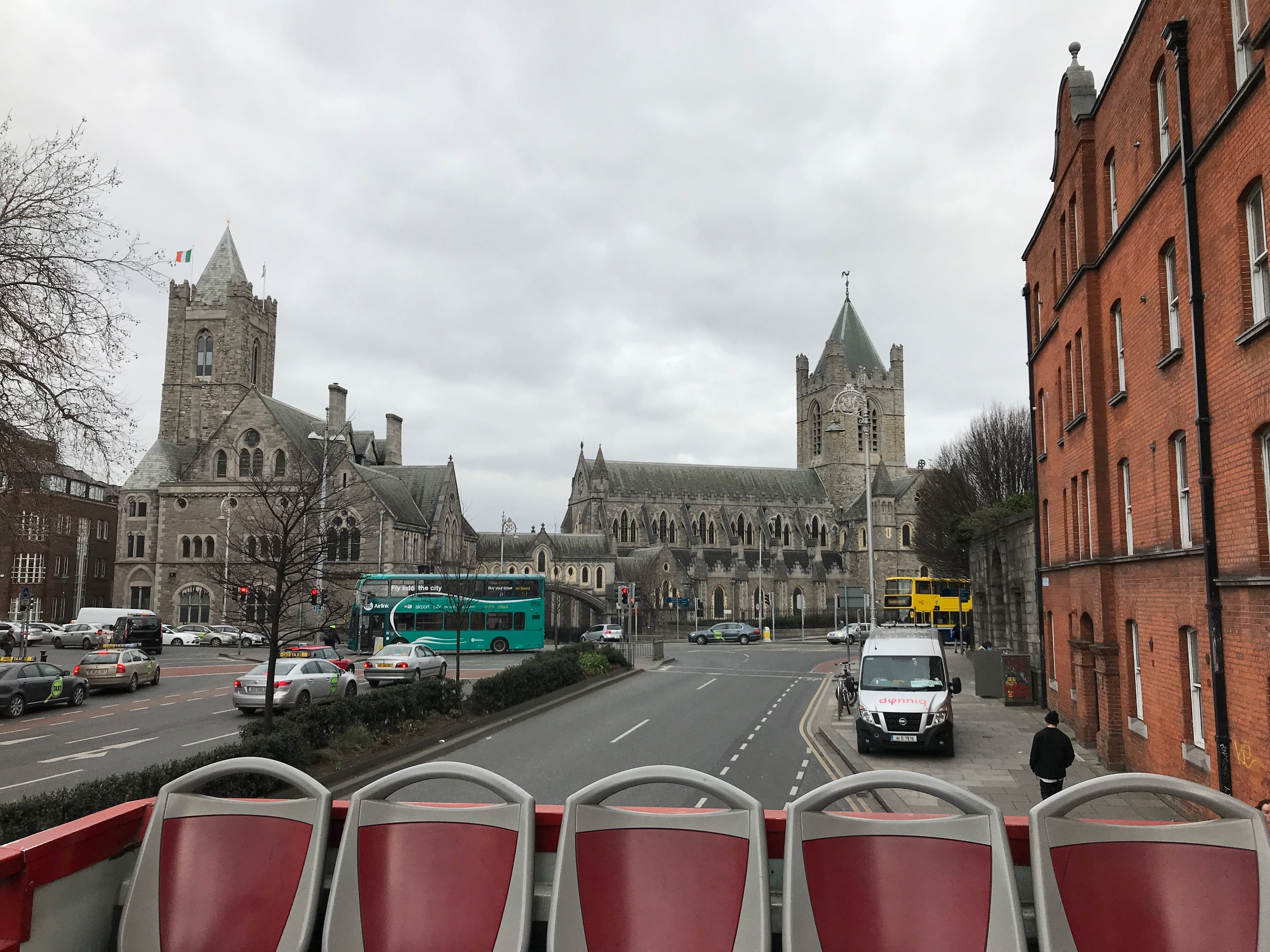 Pour visiter la ville, nous avions choisi de nous procurer, en amont du voyage, le Dublin Pass (infos à retrouver ici). Il nous permettait de faire de nombreuses visites et de profiter d’attractions de la ville qui étaient incluses, et qui tous comptes faits, nous faisait faire des économies. Pour le rentabiliser au maximum donc, nous avons commencé par un petit tour panoramique de la ville en montant à bord d’un bus Hop-On Hop-Off que l’on trouve dans toutes les capitales, ou grandes villes aujourd’hui. Grâce à lui, nous passerons par des rues typiques et devant plusieurs monuments : la National Gallery, la Christ Church Cathedral, St Patrick’s Cathedral et la Brasserie Guinness, arrêt auquel nous déciderons de descendre pour rejoindre à pied la Cathédrale Christ Church, entrevue précédemment dans le bus.