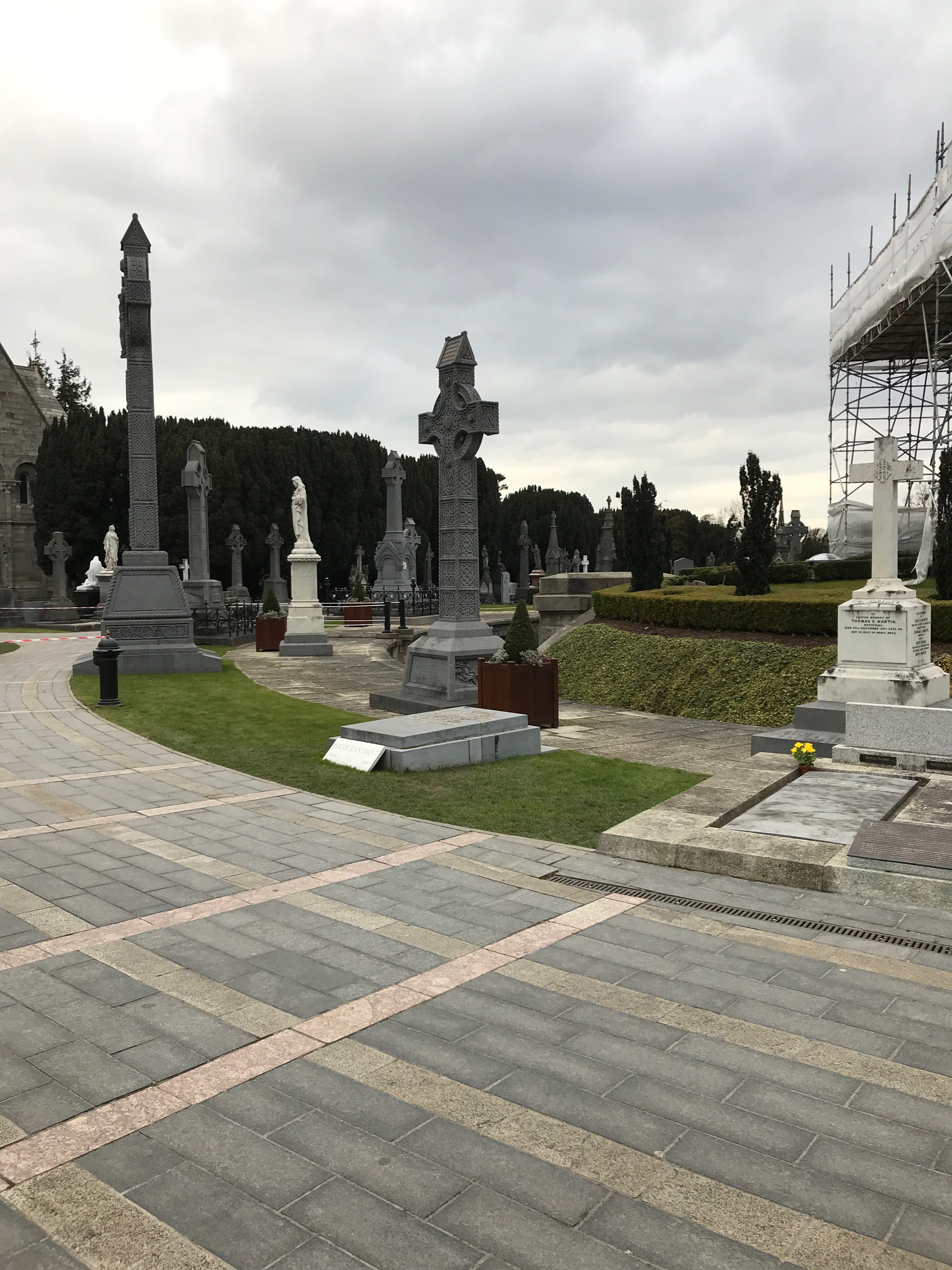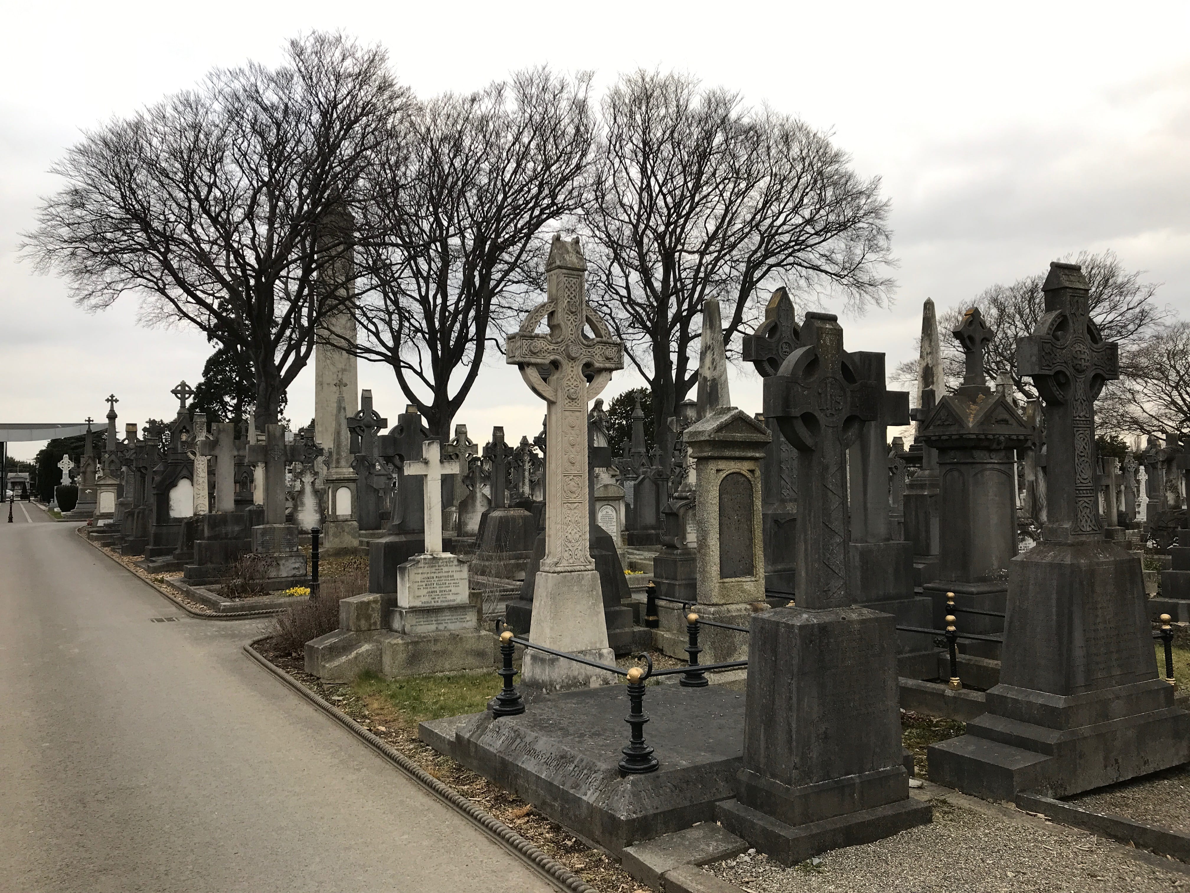 Profitant de la dernière heure de luminosité, nous choisirons de nous rendre encore au fameux Cimetière de Glasnevin. Il est connu pour abriter les dernières demeures de grandes personnalités irlandaises. Pour nous, qui n’y sommes pas initiés, nous serons surtout impressionnés par la cohabitation des stèles modernes et anciennes dont ces dernières sont parfois bien abîmés, et dont la perpendicularité au sol montre assez clairement les ravages du temps. Même si on s’attendait à un nombre impressionnant de croix celtiques dans le cimetière, nous ne pensions pas en voir une concentration aussi impressionnante. C’est avec beaucoup de respect que nous aurons parcouru ces allées, avant de reprendre le bus vers le centre.