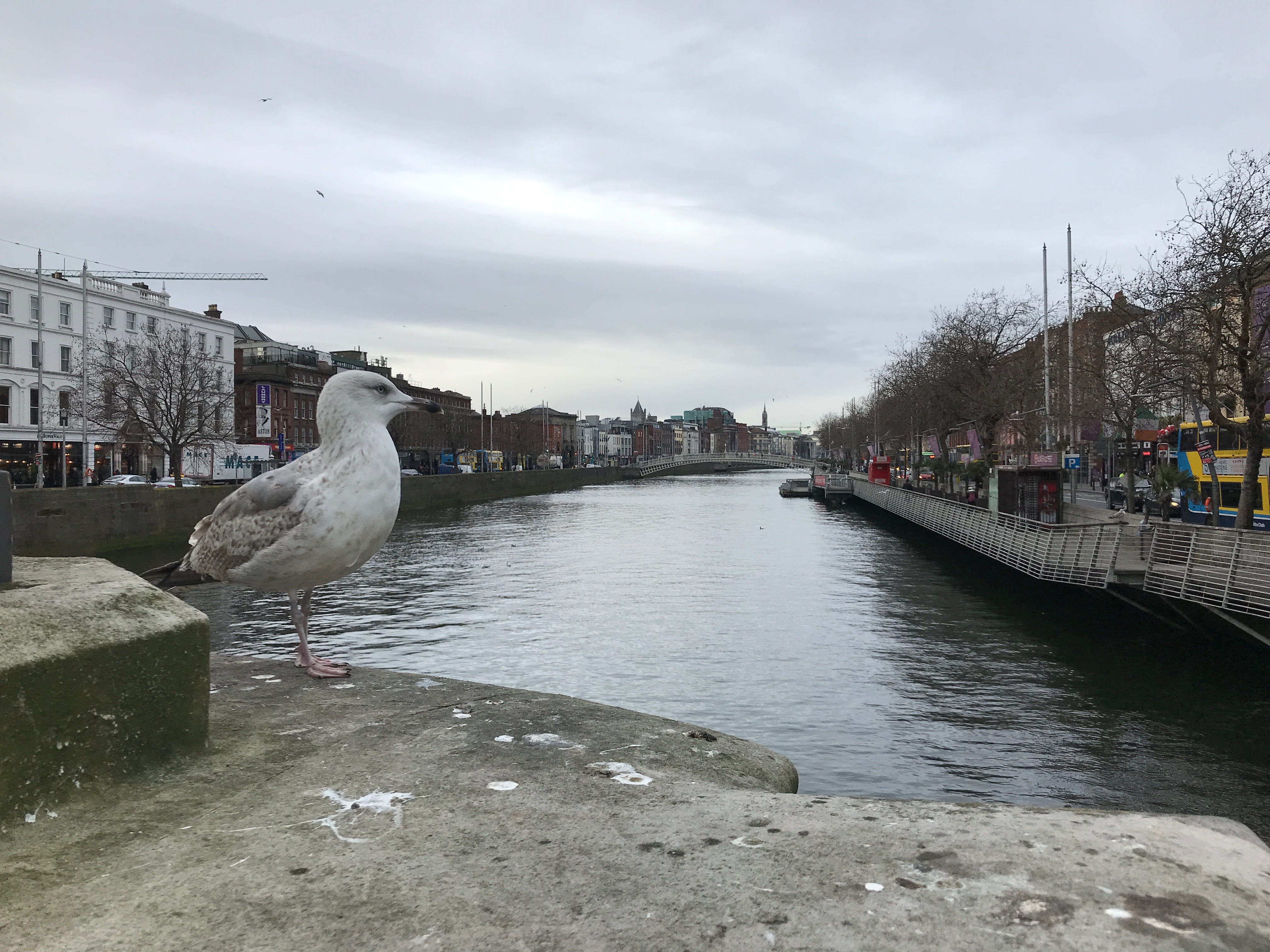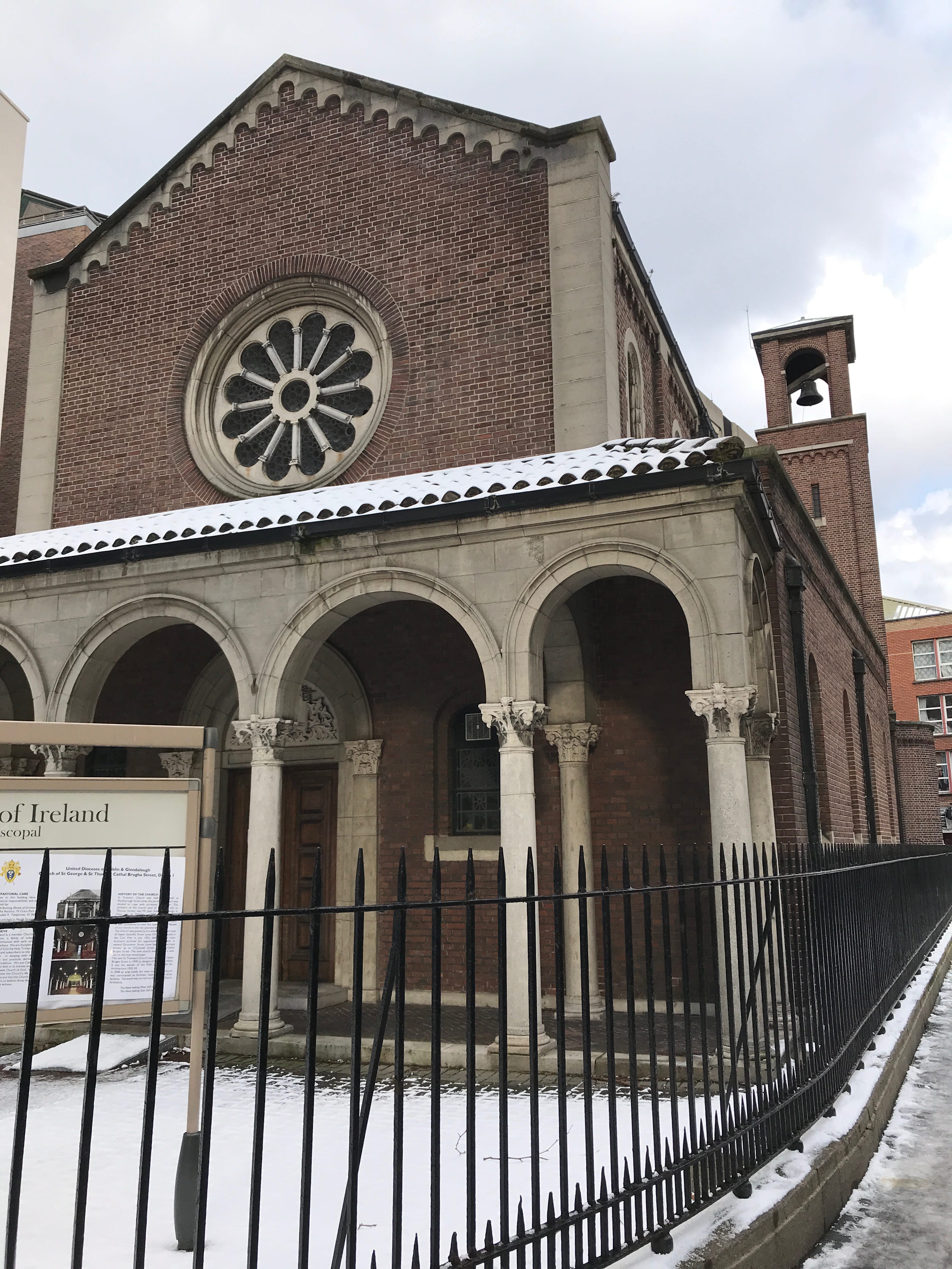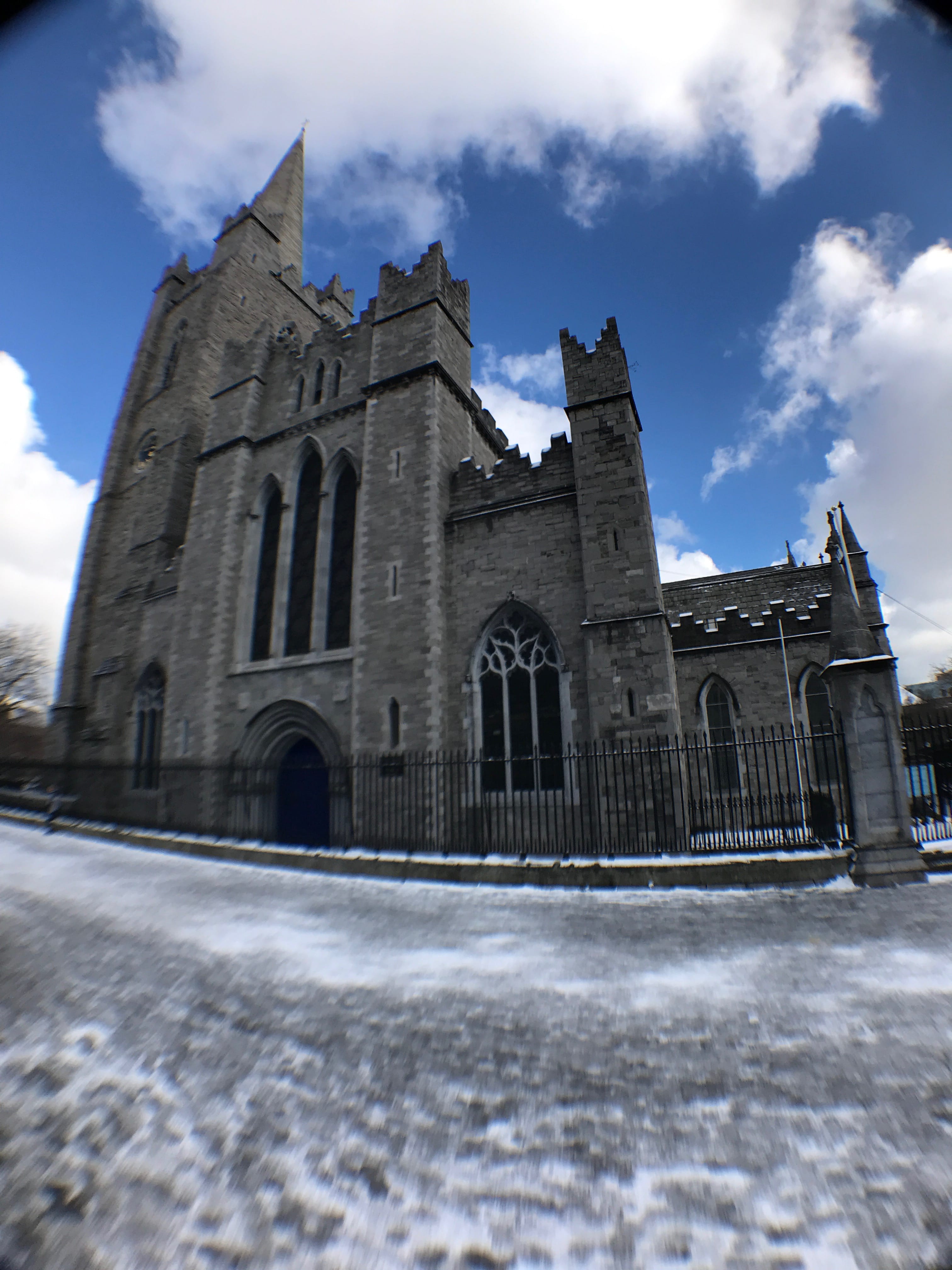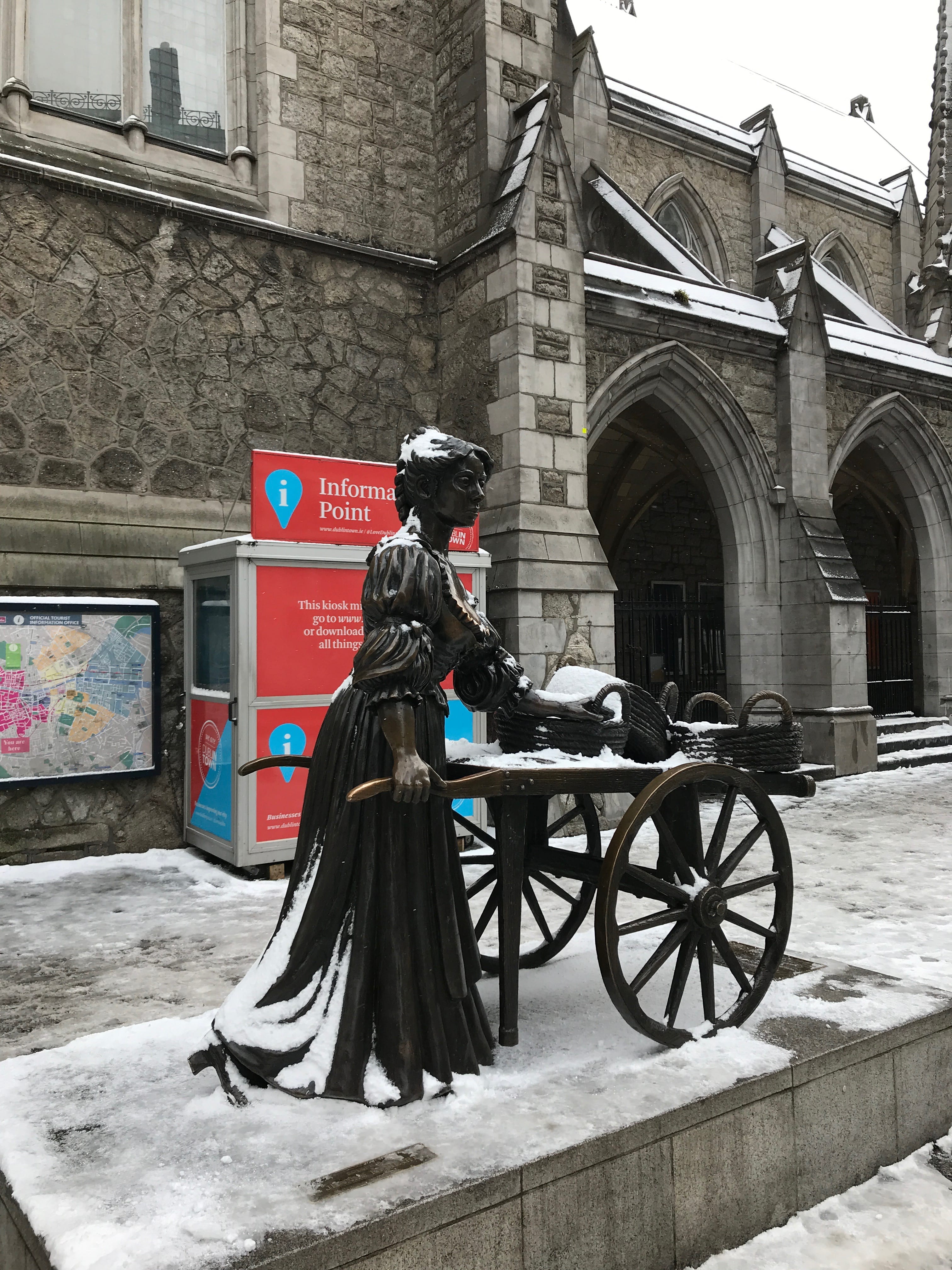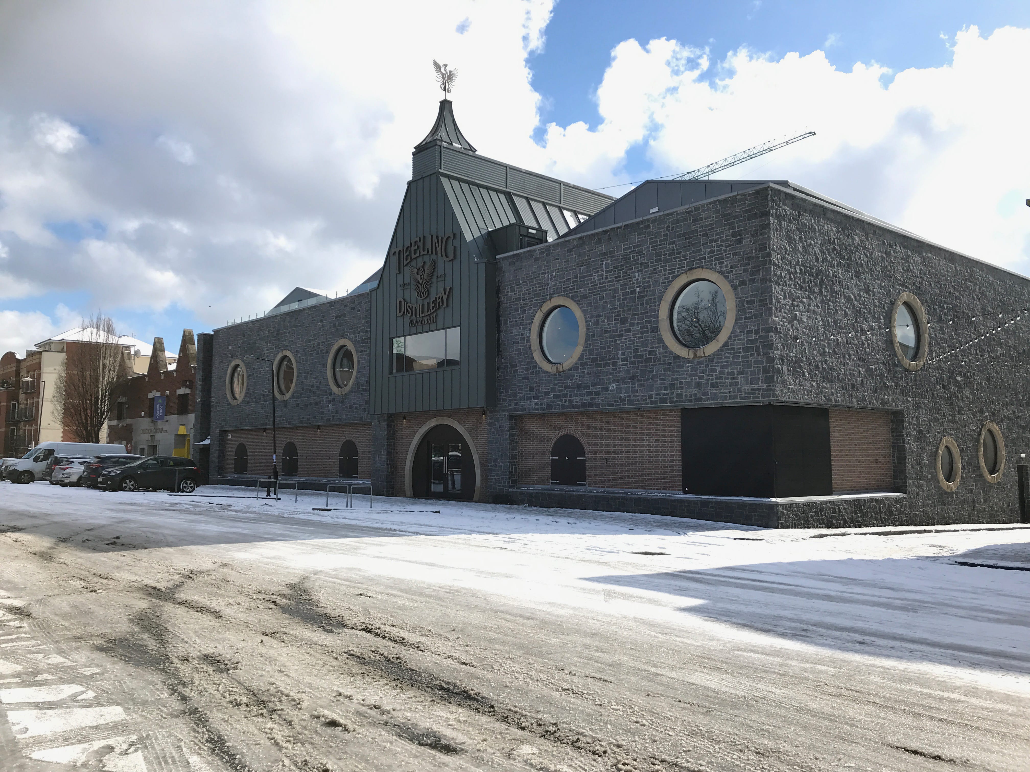 Pour éviter toute déconvenue, nous reprenons le chemin du centre-ville, et choisissons d’y trouver notre prochaine visite. Il y a encore une distillerie de whisky, la Teeling Distillery, que nous hésitions à visiter. Comme nous avions encore du temps, et que la météo semblait se calmer un peu, nous pensions pouvoir encore profiter au maximum de notre Pass. Malheureusement, nous avons trouvé porte close, comme partout ailleurs à partir de ce moment-là. Tout cela en continuant à éviter de glisser sur les trottoirs et en essayant de profiter de la ville étrangement enneigée.
