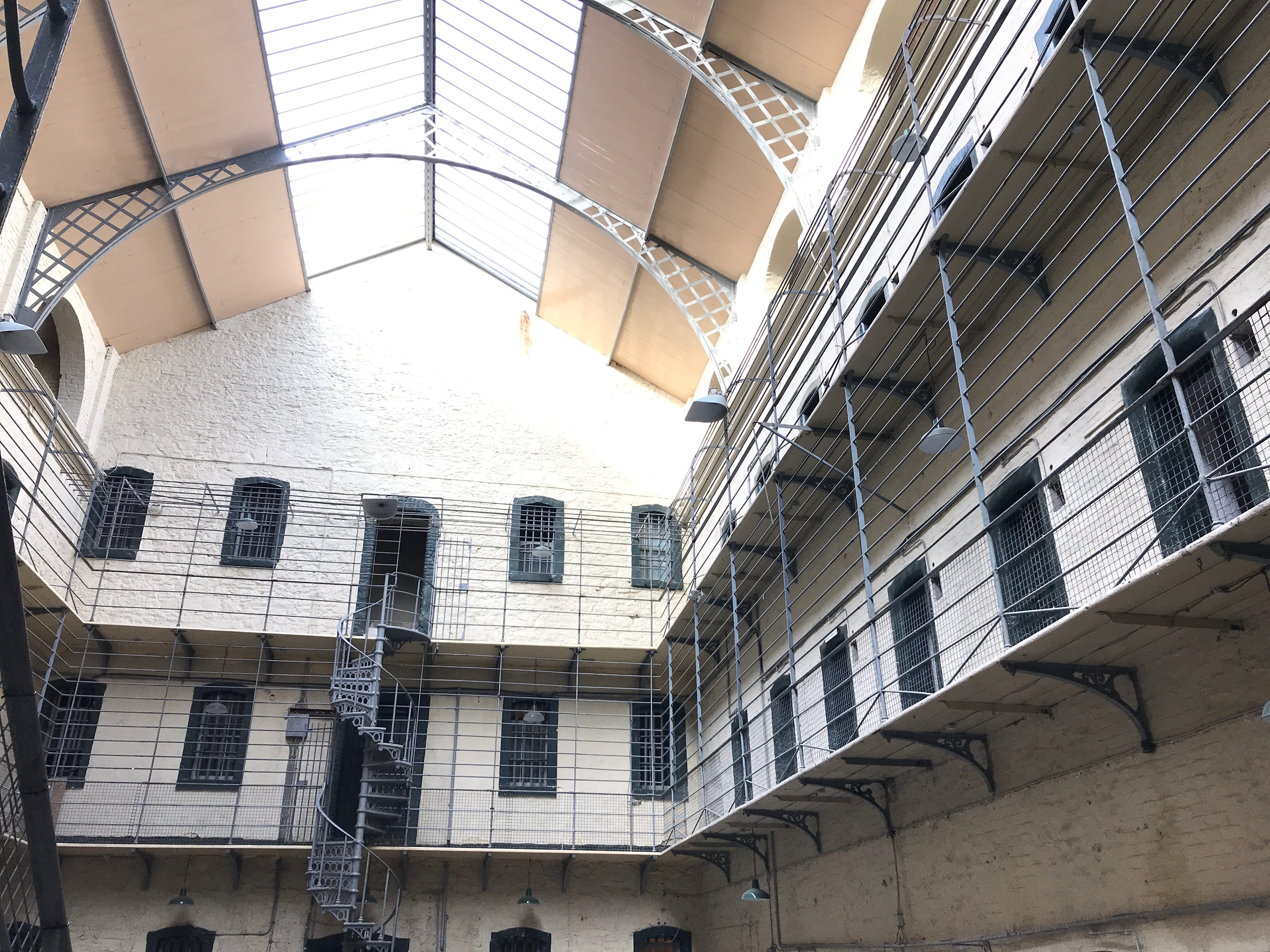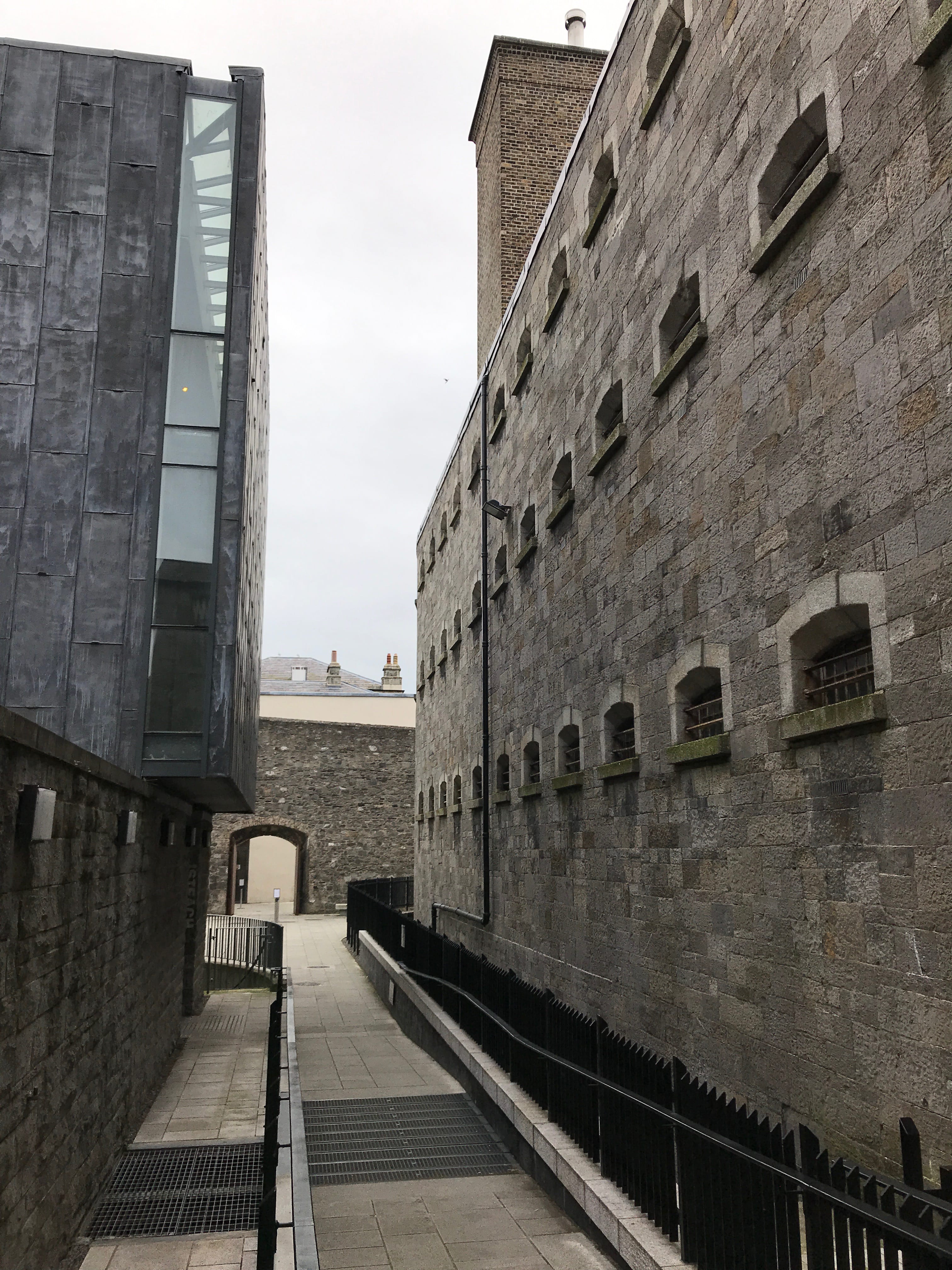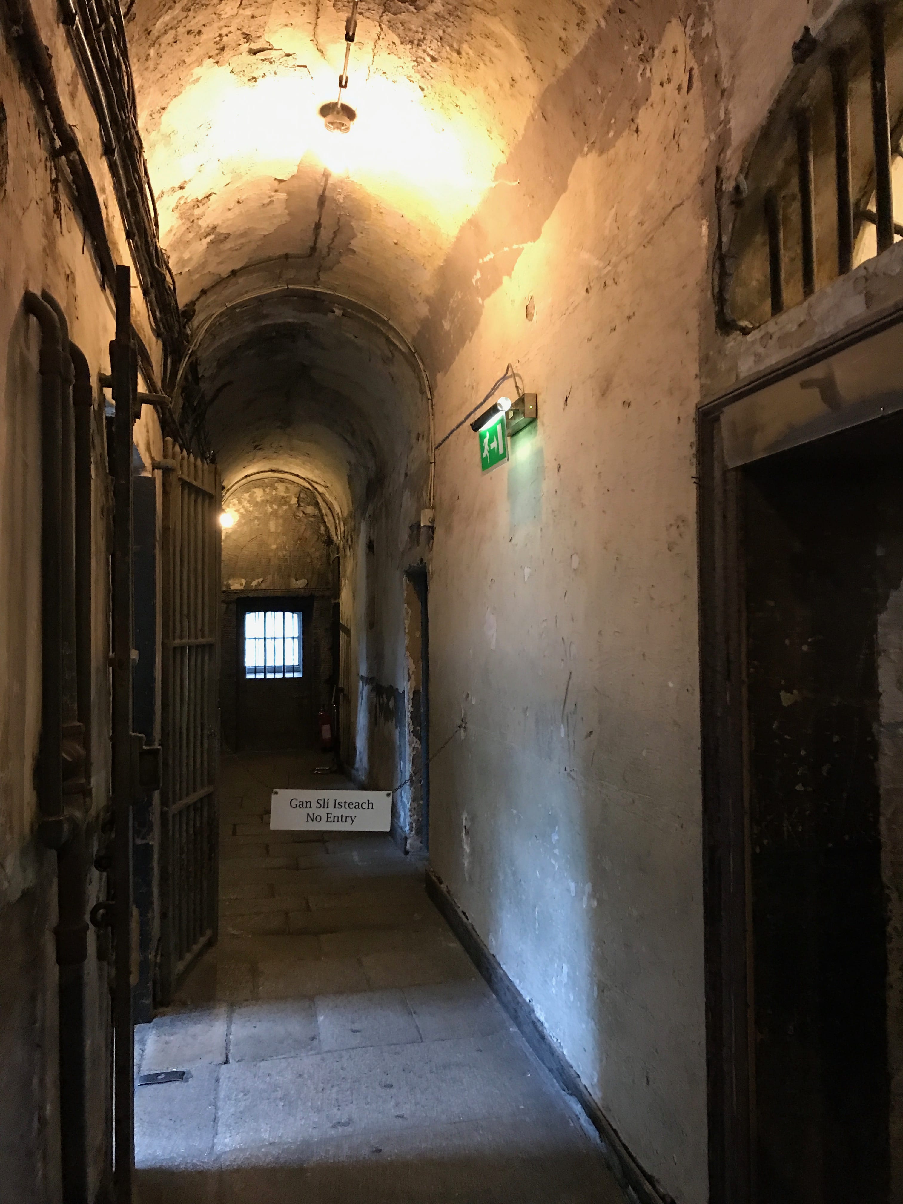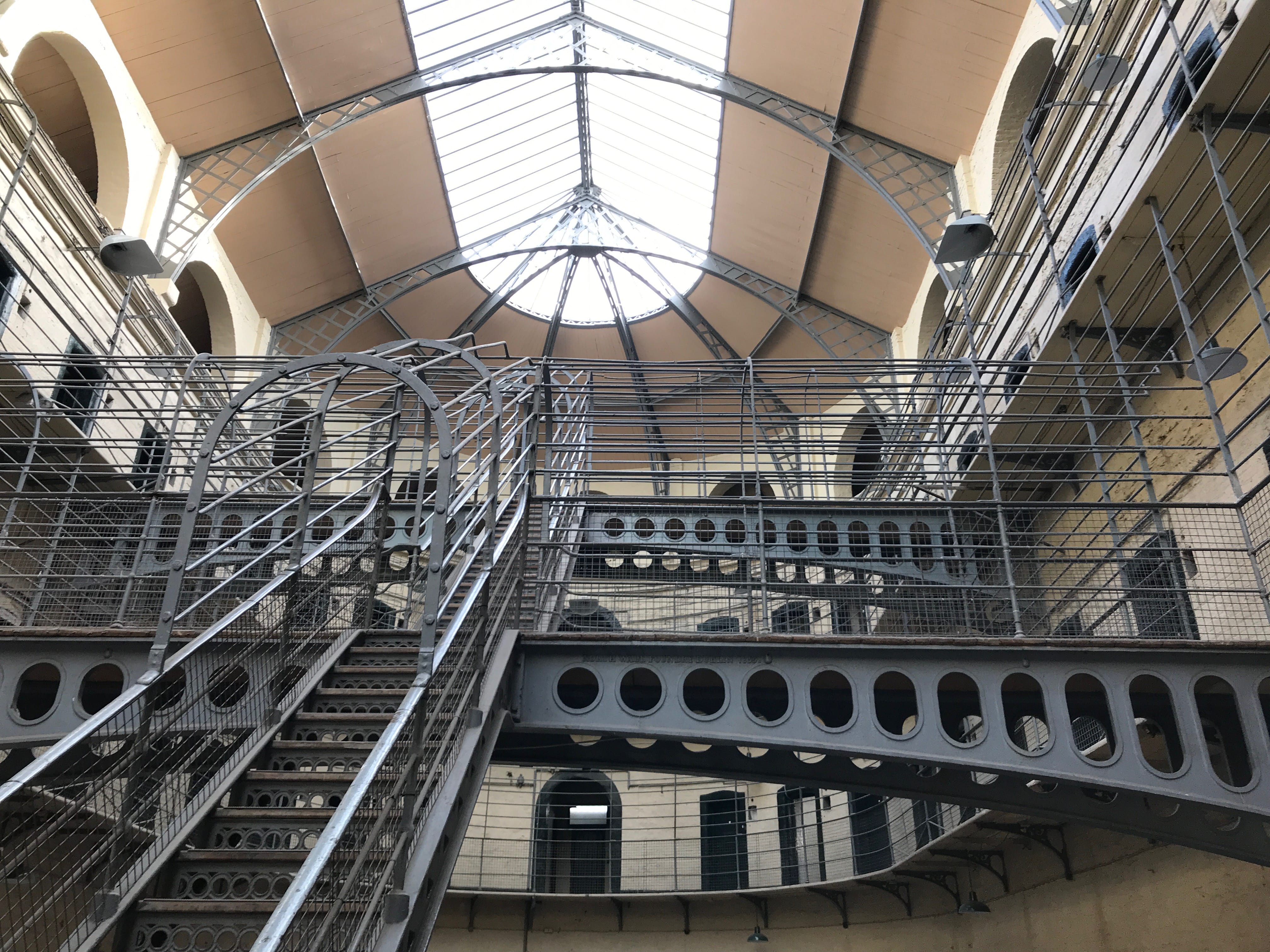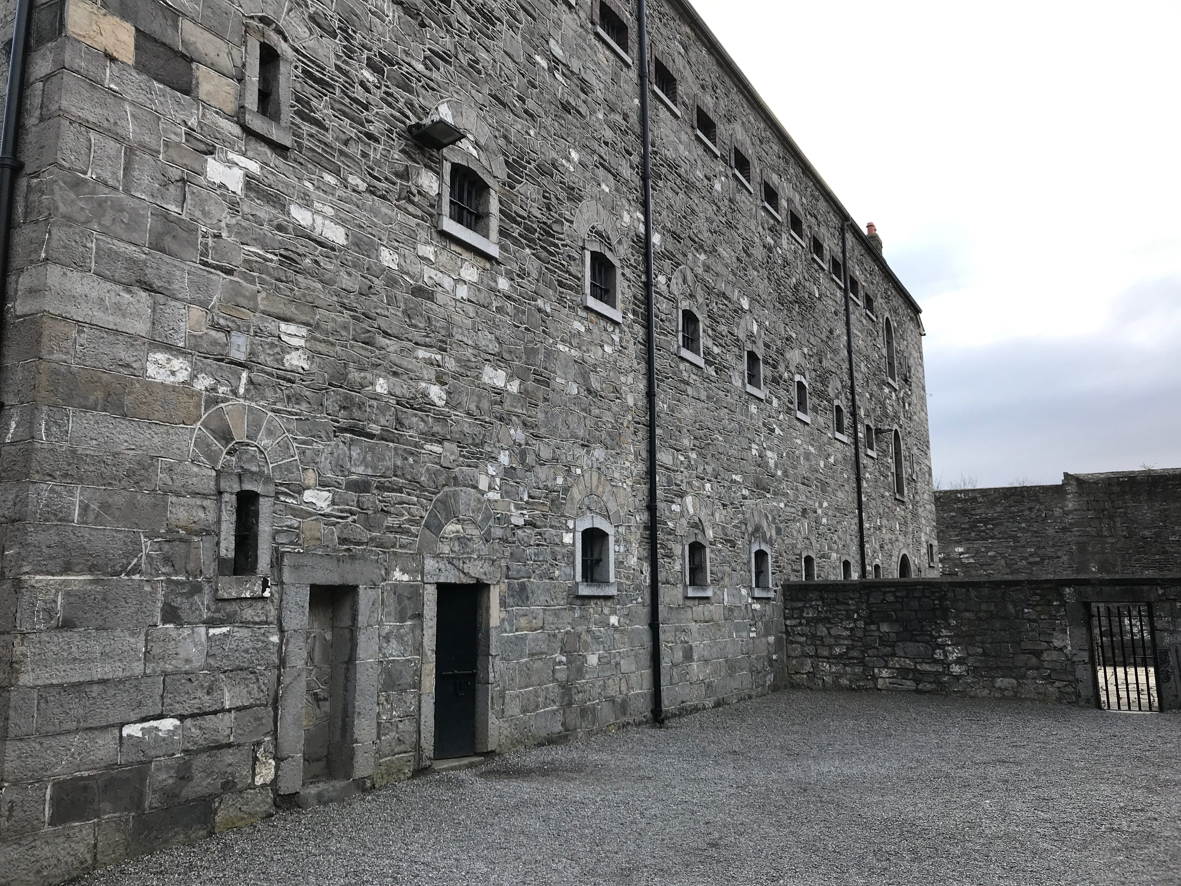 Nous débutons cette nouvelle journée à Dublin aux abords de la rivière Liffey, en nous rendant à la Kilmainham Gaol, dans le quartier du même nom. Cette prison, devenue aujourd’hui un musée, a servi de décor pour de nombreux films et sa visite, en compagnie d’un guide au fort accent irlandais, était immanquable pour nous. Il nous aura fallu beaucoup nous concentrer pour comprendre le maximum de choses présentées par notre guide malgré sa bienveillance et son entrain. Cette prison est majoritairement connue pour avoir abrité de nombreux prisonniers politiques et des leaders de la rébellion irlandaise, dont certains y ont même été exécutés. Sa cour intérieure, très photogénique, est impressionnante et les histoires, racontées par notre hôte de la matinée, nous aurons davantage marquées par nos difficultés de compréhension que par leur contenu. La visite n’en fut néanmoins pas gâchée, le bâtiment pouvant se suffire à lui-même.