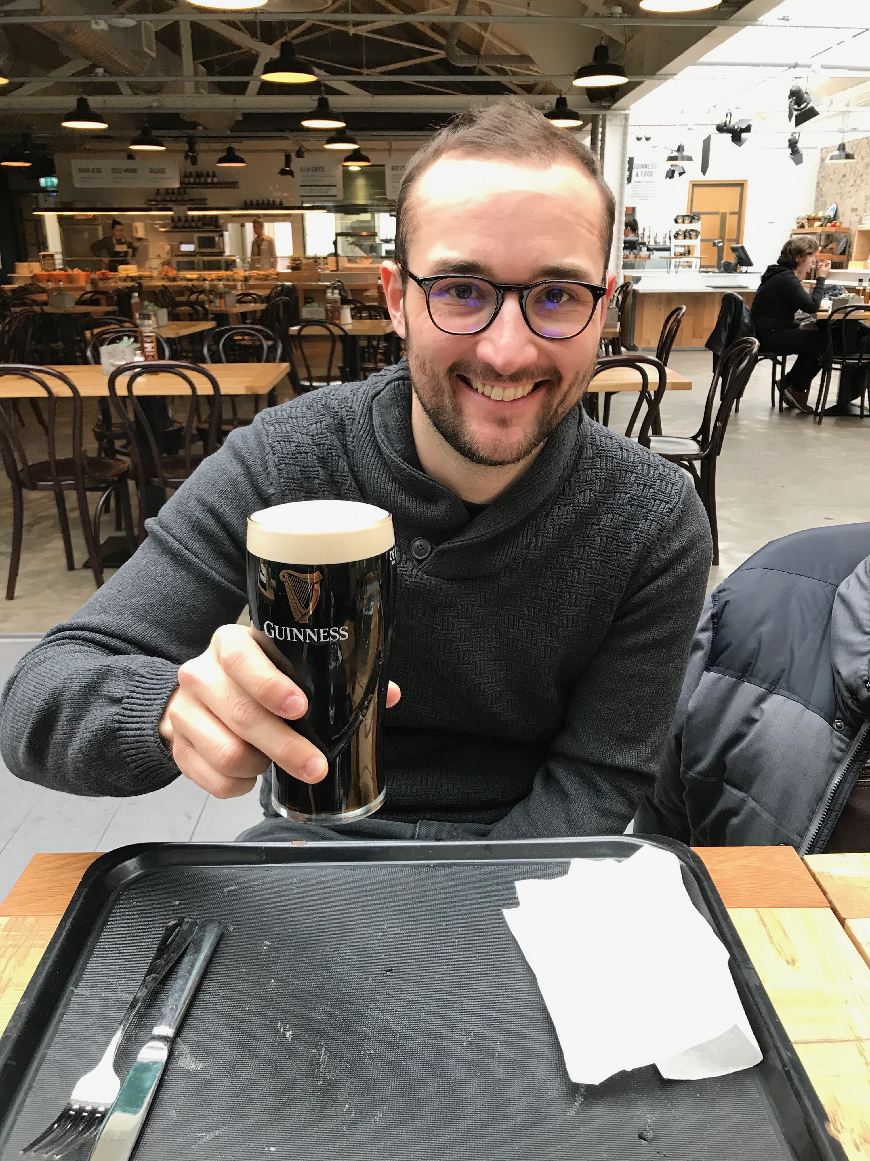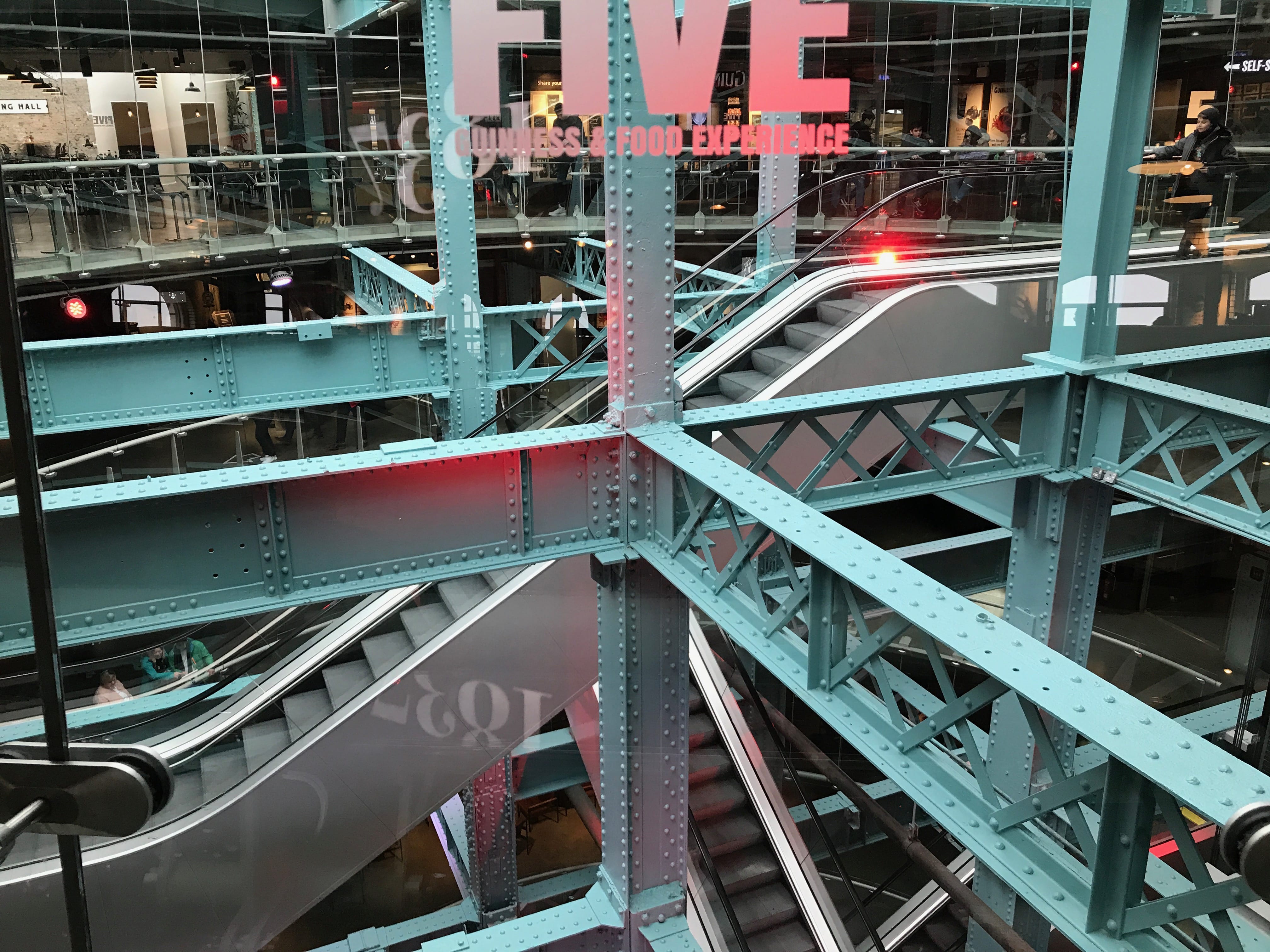 Après cette visite à l’atmosphère pour le moins pesante, nous nous dirigeons vers la Brasserie Guinness pour en faire la visite, et profiter de notre passage pour y déjeuner. Contrairement à la visite de la distillerie de la veille, Guinness ne propose pas de visite guidée dans le Dublin Pass. C’est donc plutôt une sorte de musée, sur 7 niveaux qui présente l’histoire de la brasserie, de son marketing et les procédés de fabrication sans donner trop de détails, qui nous ouvre ses portes.