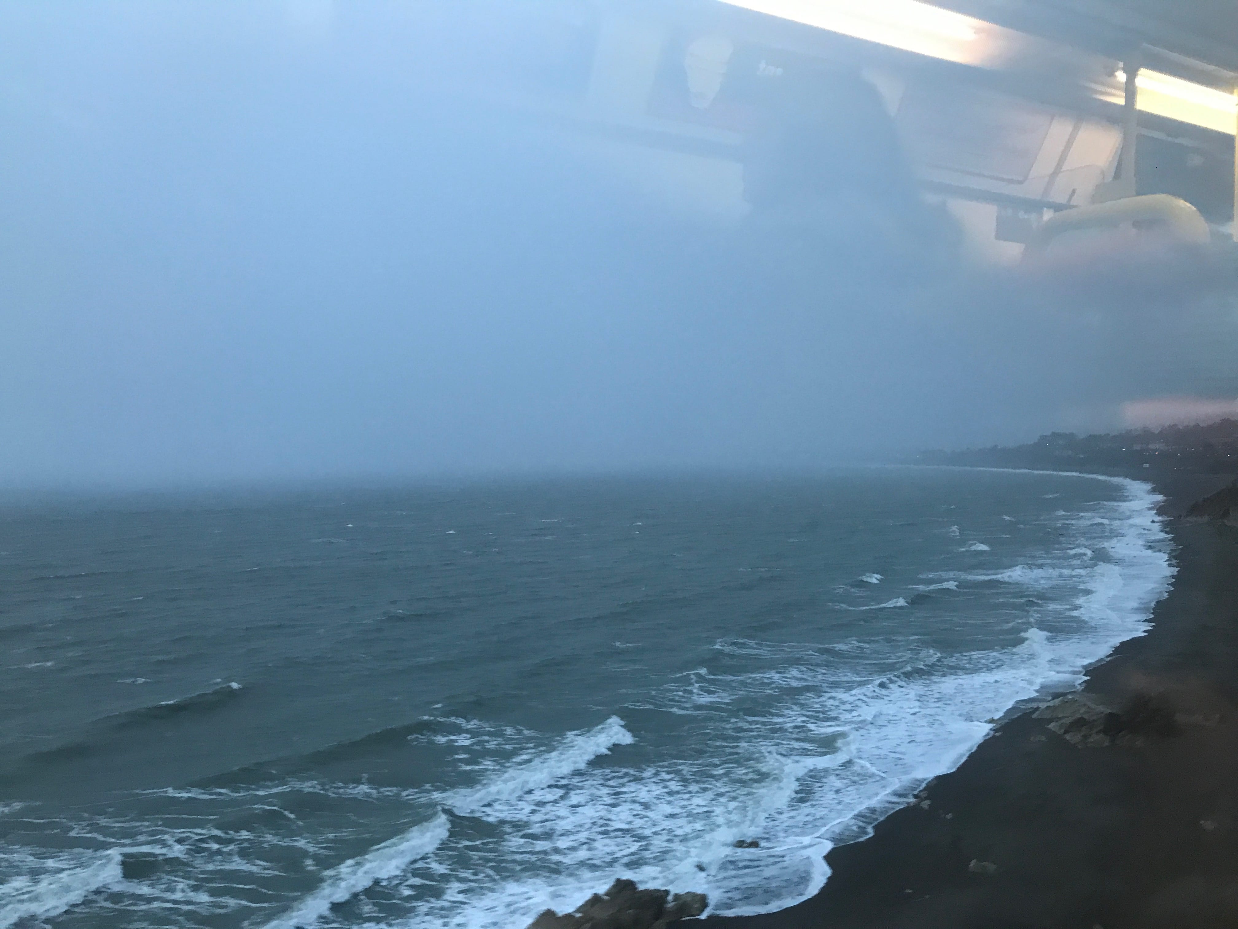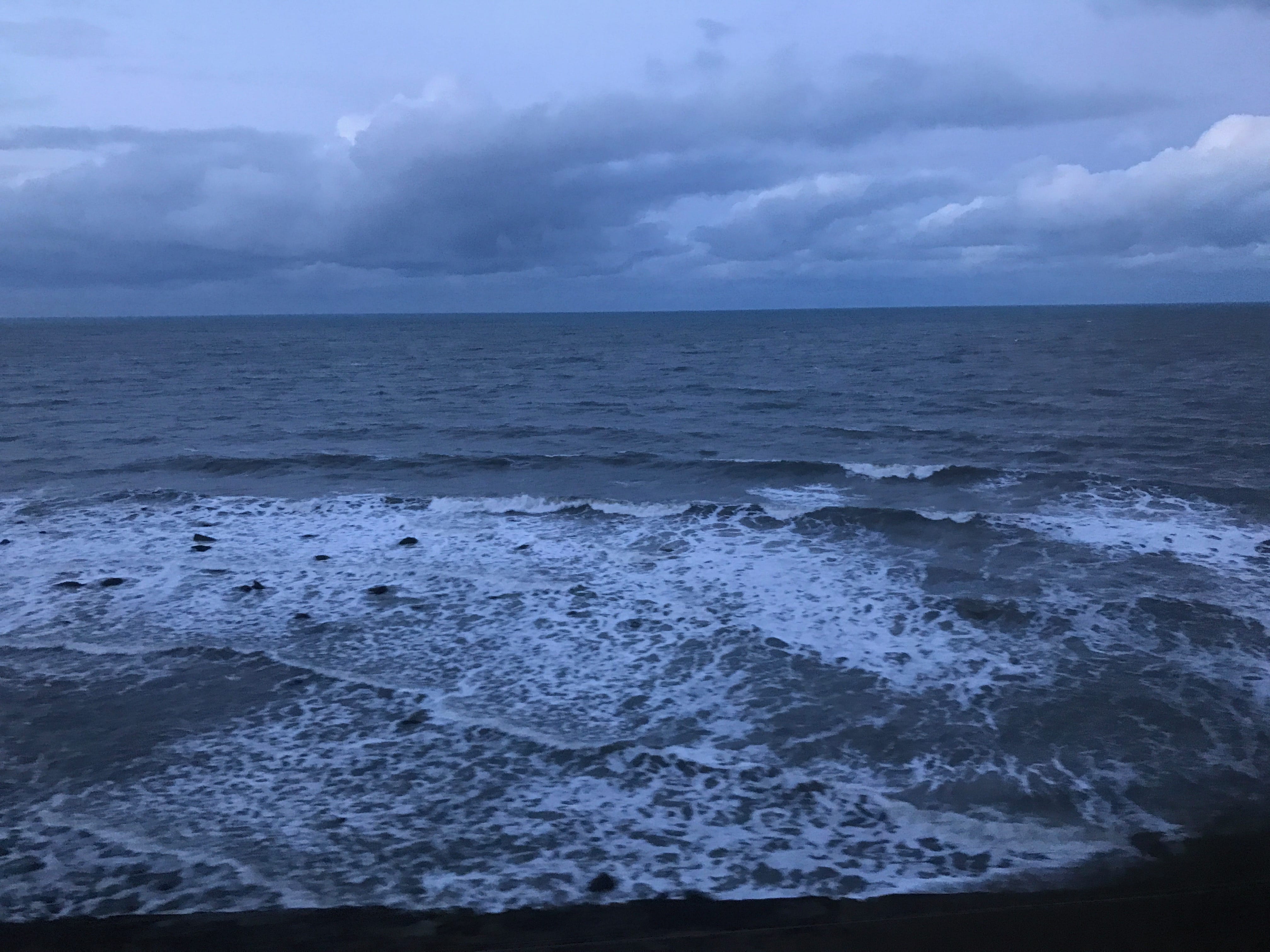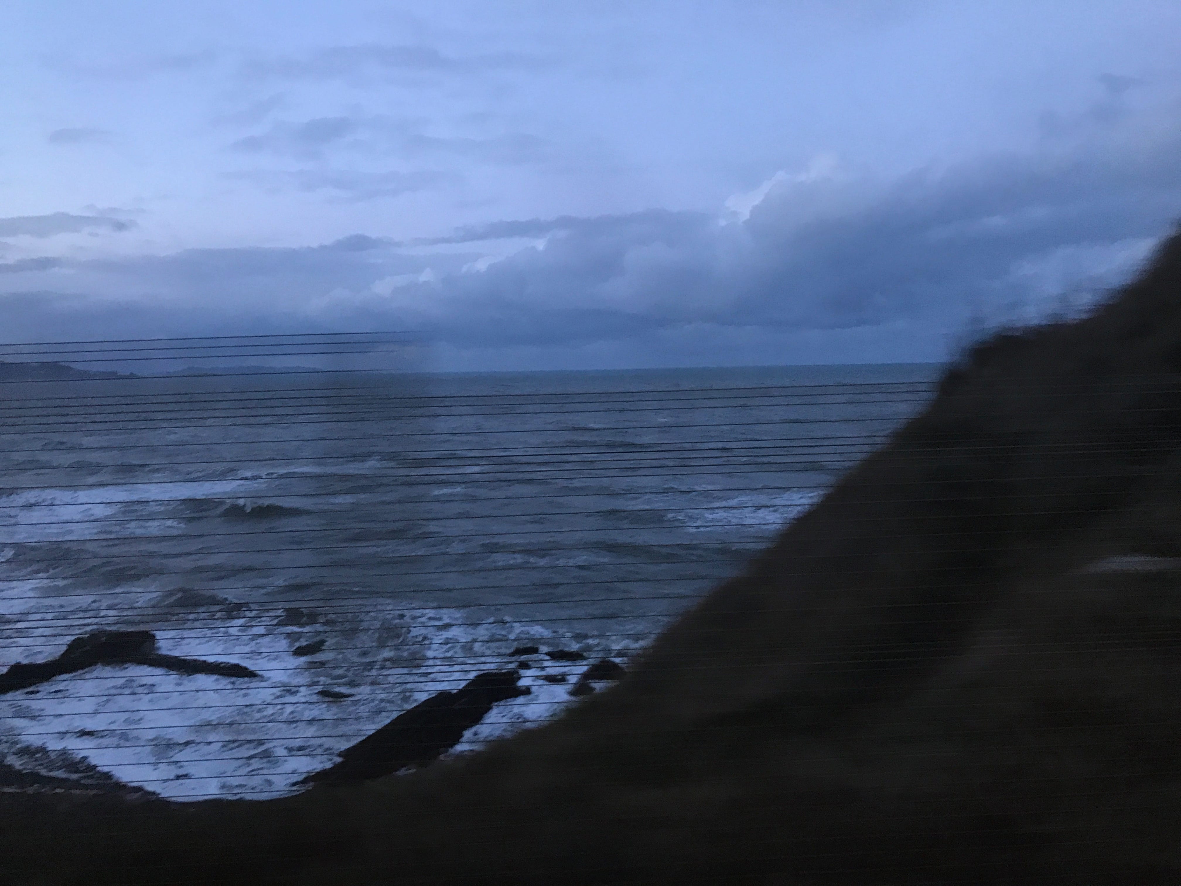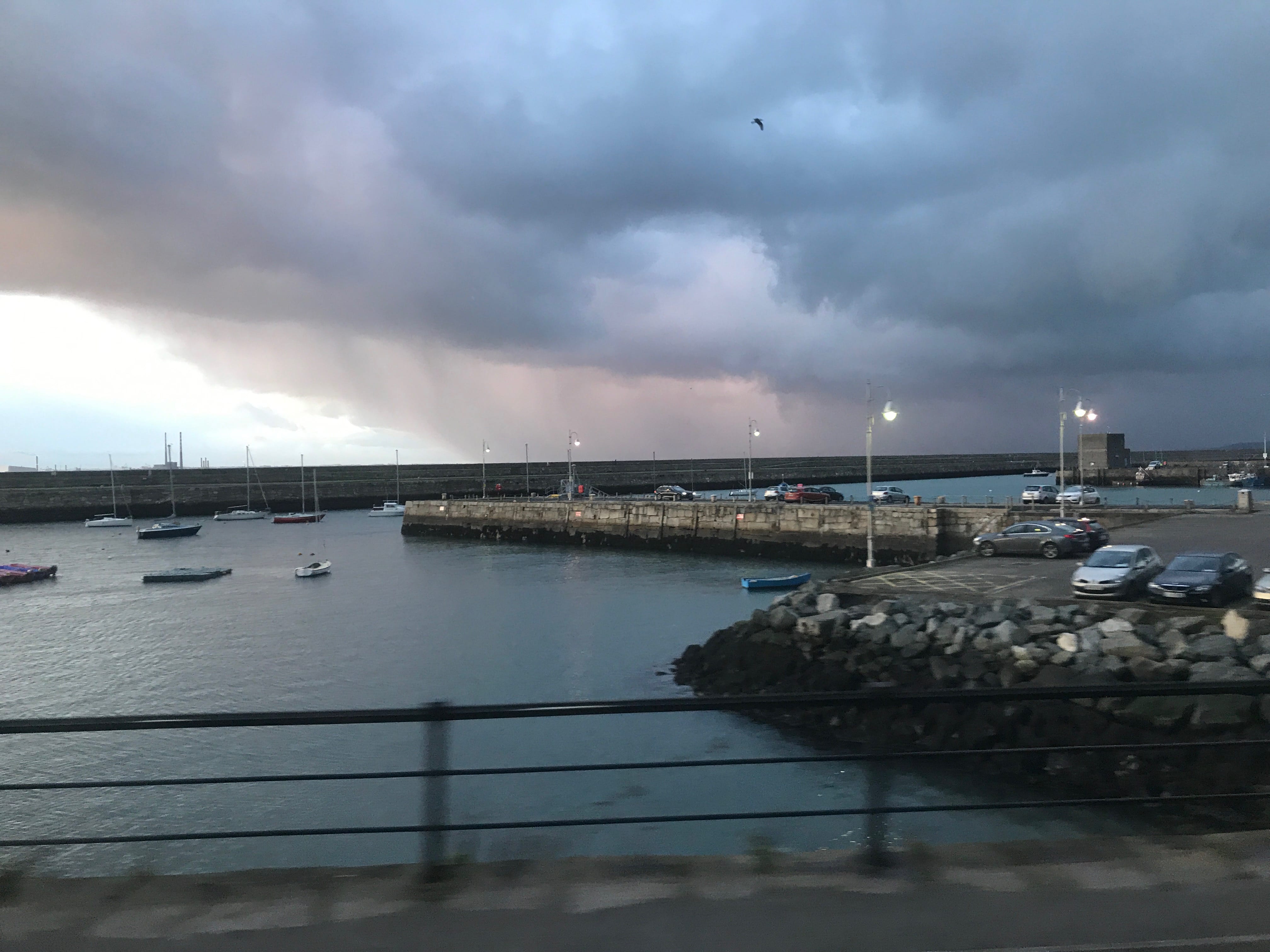 En quittant le château, nous rejoignons la gare de Malahide pour retrouver le centre de Dublin. Mais, étant fatigués par les longues marches des derniers jours, nous choisirons de reprendre un DART (métro de Dublin), qui assurait la liaison de Dublin à Greystones en longeant les côtes de la mer d’Irlande. Cette partie du voyage en train semblait presque hors du temps. Nous étions fatigués, juste concentrés sur le littoral qui défilait. Les paysages s’offrant à nous évoluaient au gré de la nuit tombante ainsi que de la météo changeante, pour nous offrir de magnifiques panoramas, presque irréels à certains moments. Au bout de quelques dizaines de minutes, un phénomène « étrange » s’est produit. Alors que nous commencions à voir des flocons tourbillonner autour de nous, la passagère qui nous faisait face semblait ahurie de ce spectacle, nous répétant sans cesse « It’s snowing ! It’s snowing! ». Cette réaction nous a surpris mais nous ne savions pas encore à quel point nous aurions dû l’être !