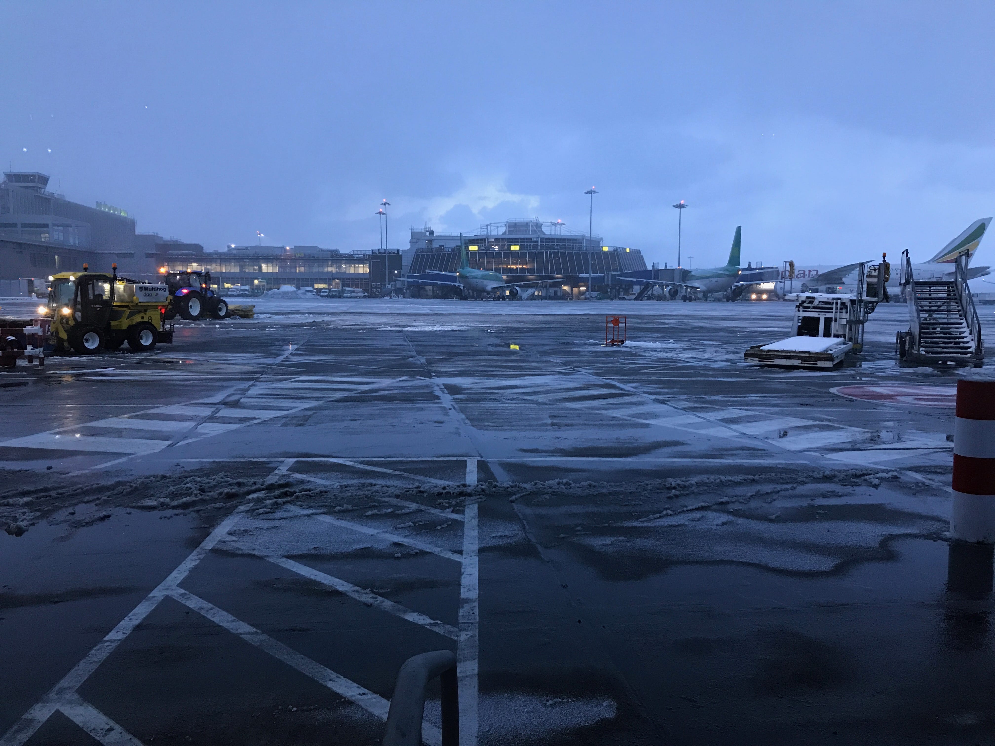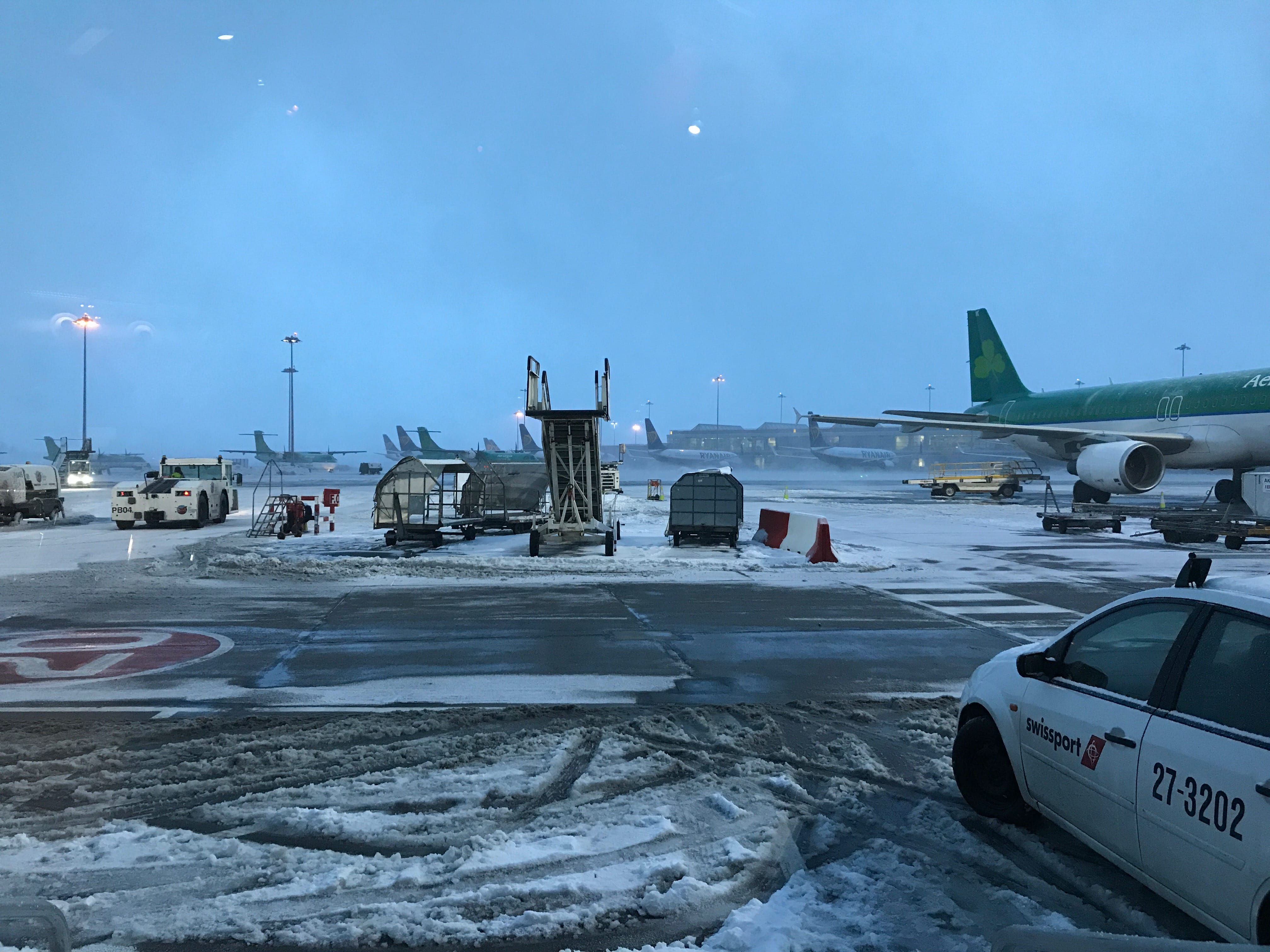 Notre vol, bien que retardé de plusieurs heures, est resté programmé. Pendant tout ce temps, nous apercevions le manège des camions et tracteurs parcourant sans arrêt la piste d’atterrissage pour dégager la neige. Nous pouvions voir, tous les quarts d’heure, un avion réussir à se poser, puis attendre de longues minutes avant de libérer ses passagers. C’est finalement vers 22h que nous avons pu monter dans le nôtre, posé de longues minutes auparavant. Une fois à bord, nous avons encore dû attendre au moins une heure sur le tarmac, que le camion de dégivrage fasse le plein, pour pouvoir pulvériser son produit sur notre appareil, afin que l’on puisse enfin décoller. Pendant le vol, les hôtesses se sont assurés que tout le monde aurait un moyen de rejoindre sa voiture. Nous, comme à notre habitude, étions garés sur le parking Economy, relié à l’aéroport de Luxembourg par une navette gratuite, ne circulant plus de minuit à 4h. Pour notre plus grande surprise, bien qu’arrivés sur le tarmac aux alentours de 2h du matin, la navette nous attendait pour nous ramener au parking, rien que tous les deux. Bravo Luxair et Merci d’avoir un peu sauvé ce dernier jour apocalyptique à Dublin…!