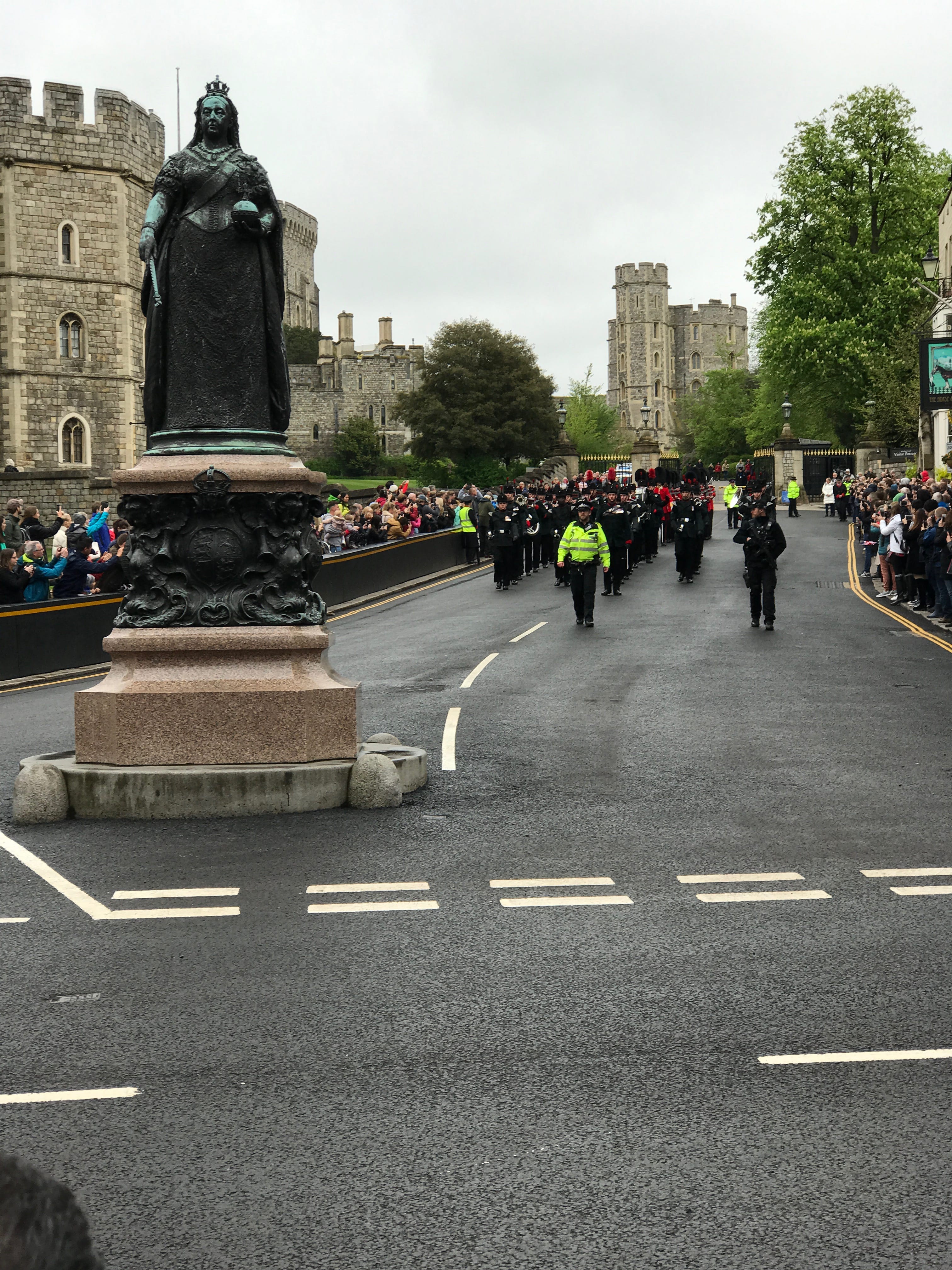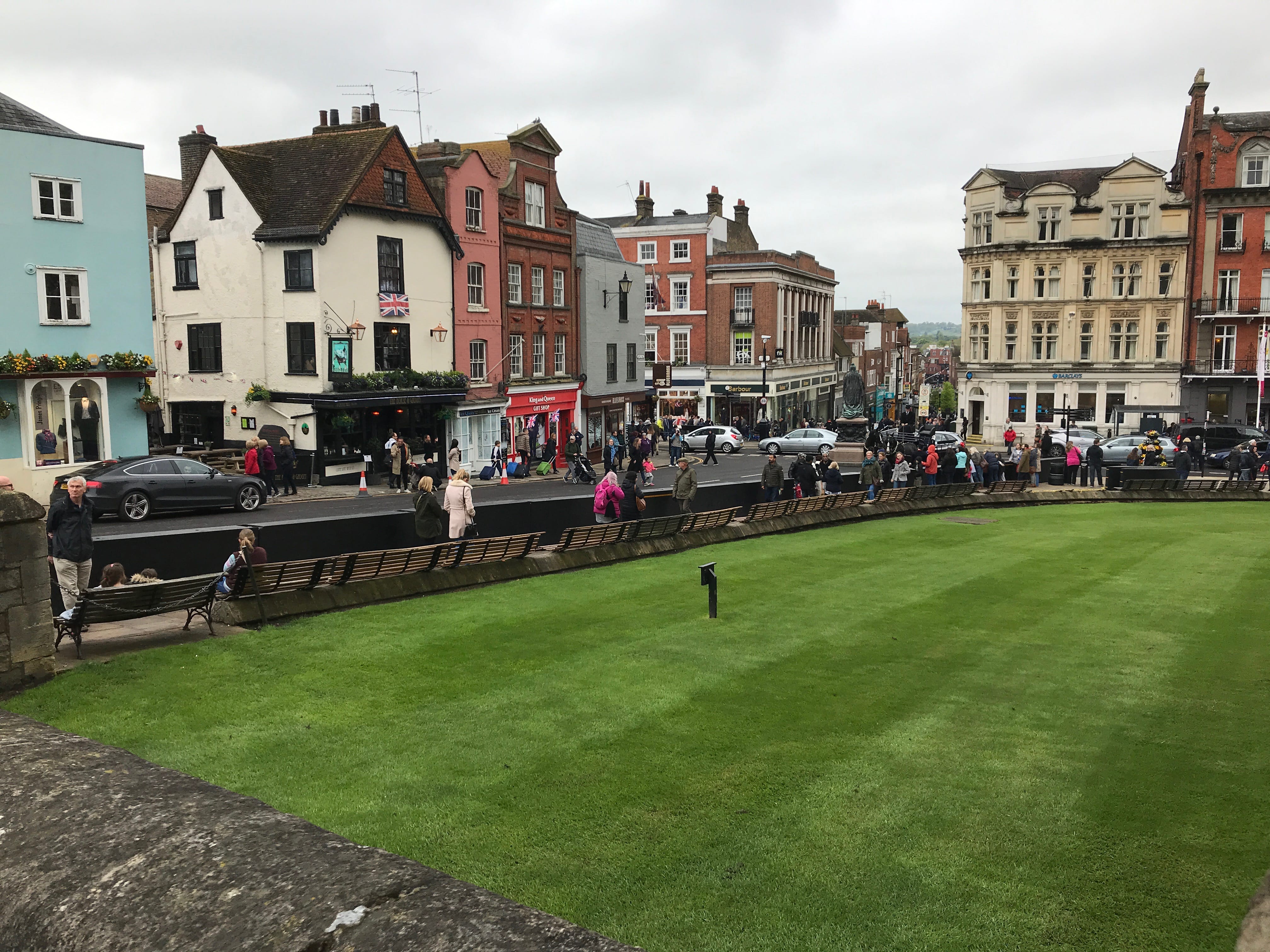 Direction Windsor, avec des transports en perspective avec la jonction Leyton-Paddington station puis le train jusqu’à Windsor, mais également la visite d’un lieu incontournable, avec tout le panache qui l’accompagne. C’est aux alentours de 11h que nous arrivons dans la petite bourgade, déjà bien vivante et remplie de visiteurs, tous rassemblés devant une parade descendant du château en direction de la ville. Nous cherchons ensuite à rejoindre la file d’attente de l’entrée, déjà bien allongée, mais toujours moins qu’une demi-heure plus tard… Après de longues minutes de patience, nous arrivons enfin à l’entrée, juste après avoir vu la visite de la chapelle St-Georges de Windsor supprimée à cause d’un mariage s’y déroulant, non royal celui-ci, enfin on suppose. Nous profiterons donc déjà de tout le reste, et c’est déjà aussi sublime que riche en contenu. Les photos en intérieur sont pour la plupart malheureusement interdites, mais nous pouvons vous assurer que la majorité des salles traversées sont à couper le souffle, tant par les hauts plafonds richement décorés que par tout ce que l’on y trouve à l’intérieur. Après avoir pleinement profité de tout ce qui était visitable à Windsor, nous repartons en direction de la petite bourgade plus étriquée que le centre londonien, afin d’attendre le train du retour.