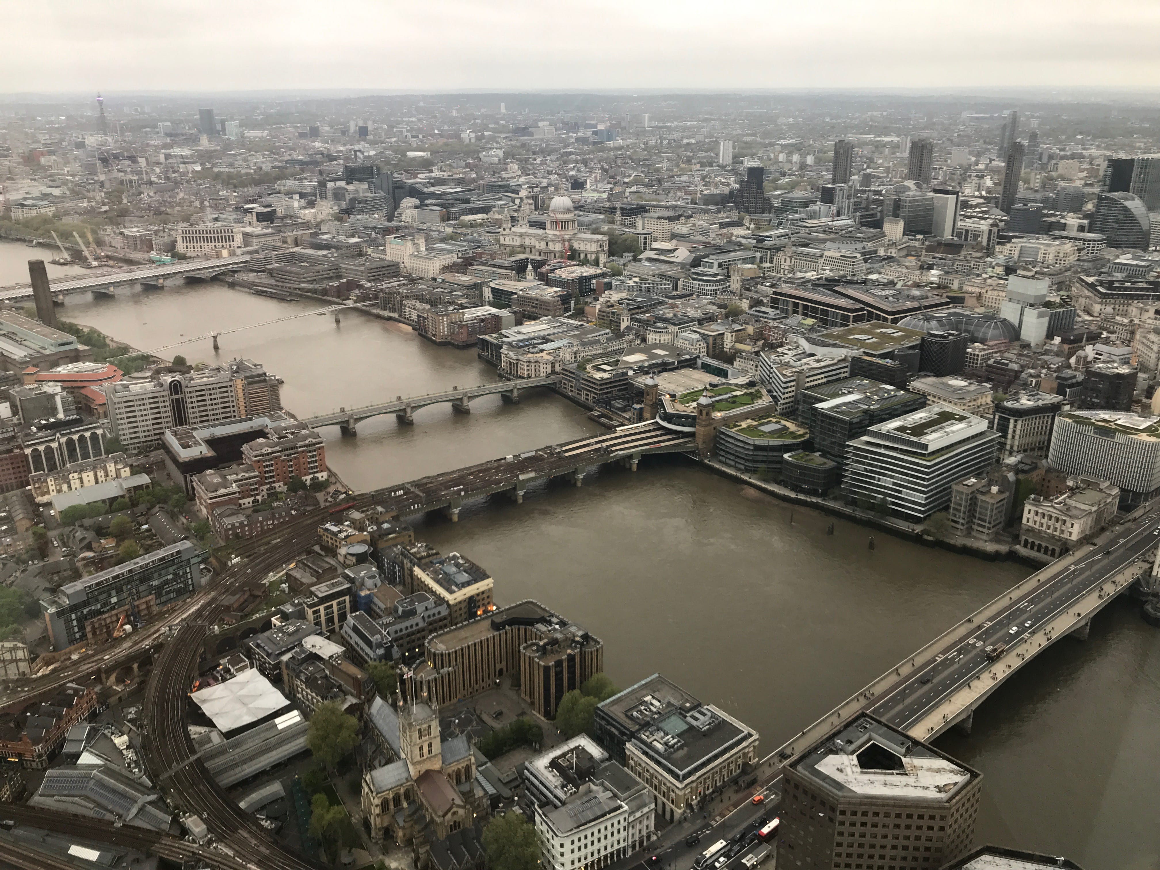 Est enfin venu le moment de terminer cette journée par l’ascension réservée le matin, celle du Shard. Elle est aussi rapide que le bâtiment est haut, et nous avons ainsi rapidement l’occasion de profiter d’un dernier panorama sur Londres pour ce voyage. Si elle n’était pas dans le Pass, nous ne la recommanderions pas absolument, le prix étant relativement cher pour la prestation proposée, même si forcément c’est le seul bâtiment qui peut proposer cette vue sur la ville… Disons que d’autres visites nous auront davantage plu que celle-ci.