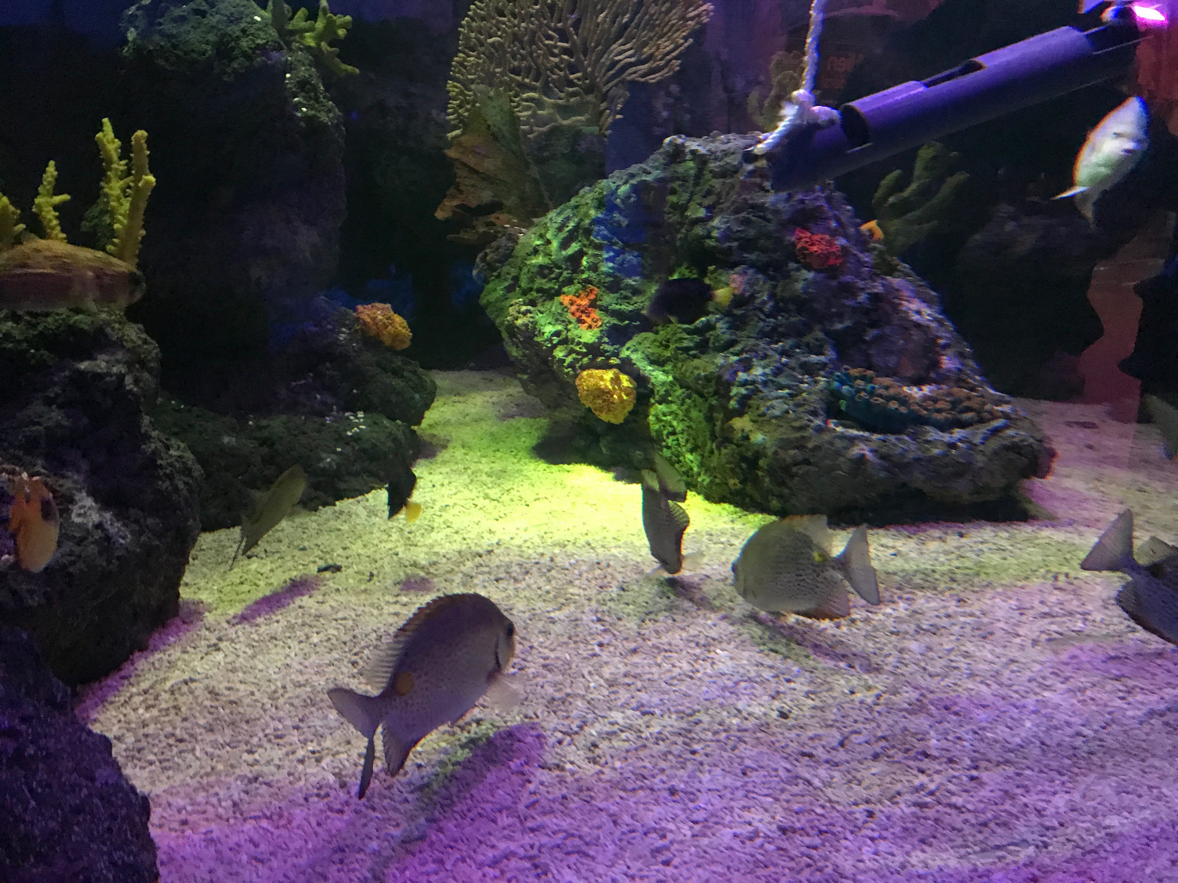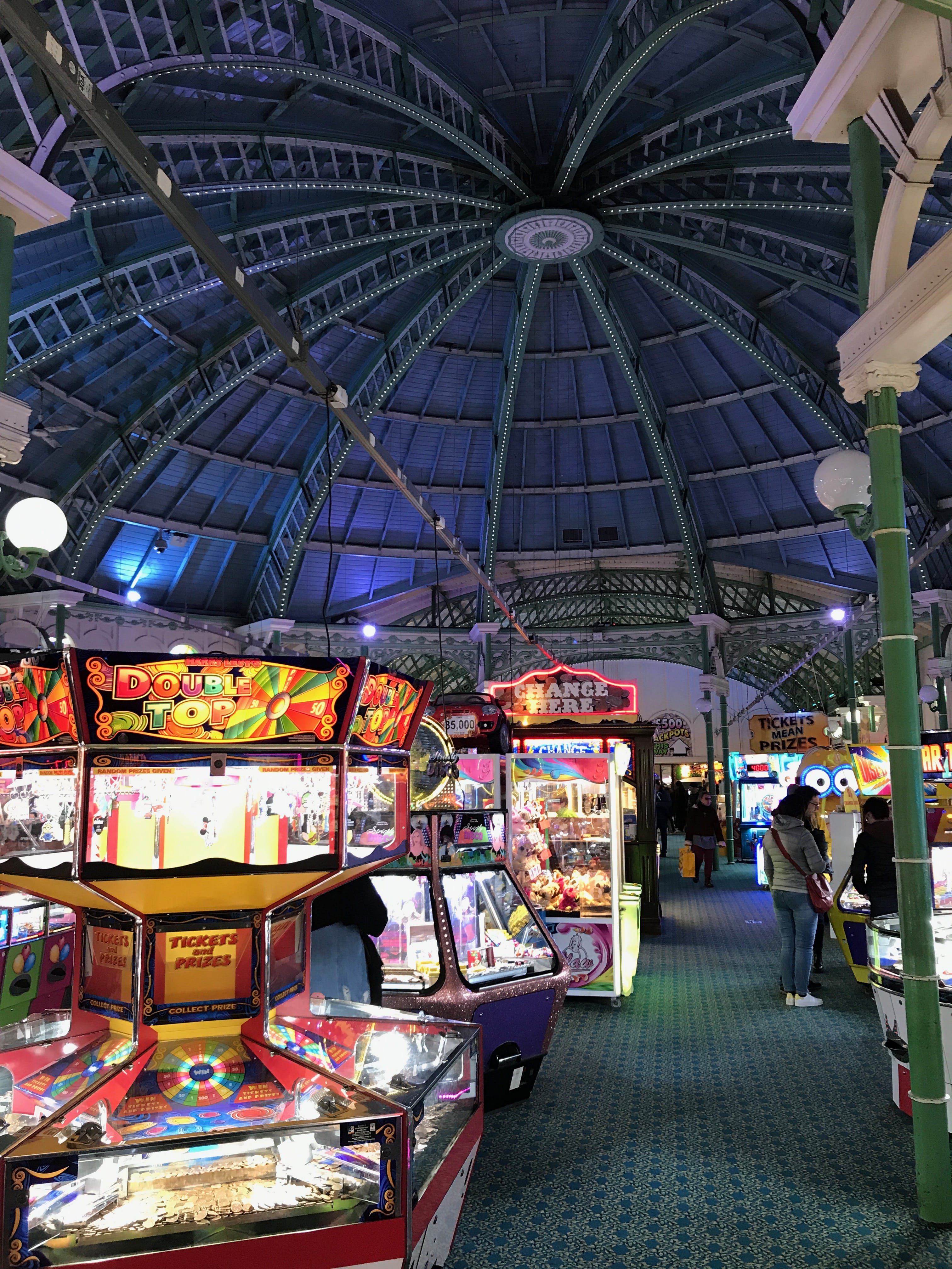Mais du côté du positif, nous aurons quand même apprécié la visite de l’aquarium, à l’architecture et l’éclairage si particuliers, passer un peu de temps à l’abri pour nous restaurer dans l’un des centres commerciaux de la ville, déambuler dans les ruelles très colorées du centre, et jouer pendant une bonne heure avec deux livres de mise sur le Pier. Nous pensons que cette visite par une belle journée aurait été l’un de nos plus beaux souvenirs de nos séjours en Angleterre, malheureusement, pour le coup, nous y avons laissé pas mal de forces et avons apprécié de retrouver le train du retour pour se poser un peu et se reposer avant le concert qui nous attendait le soir.