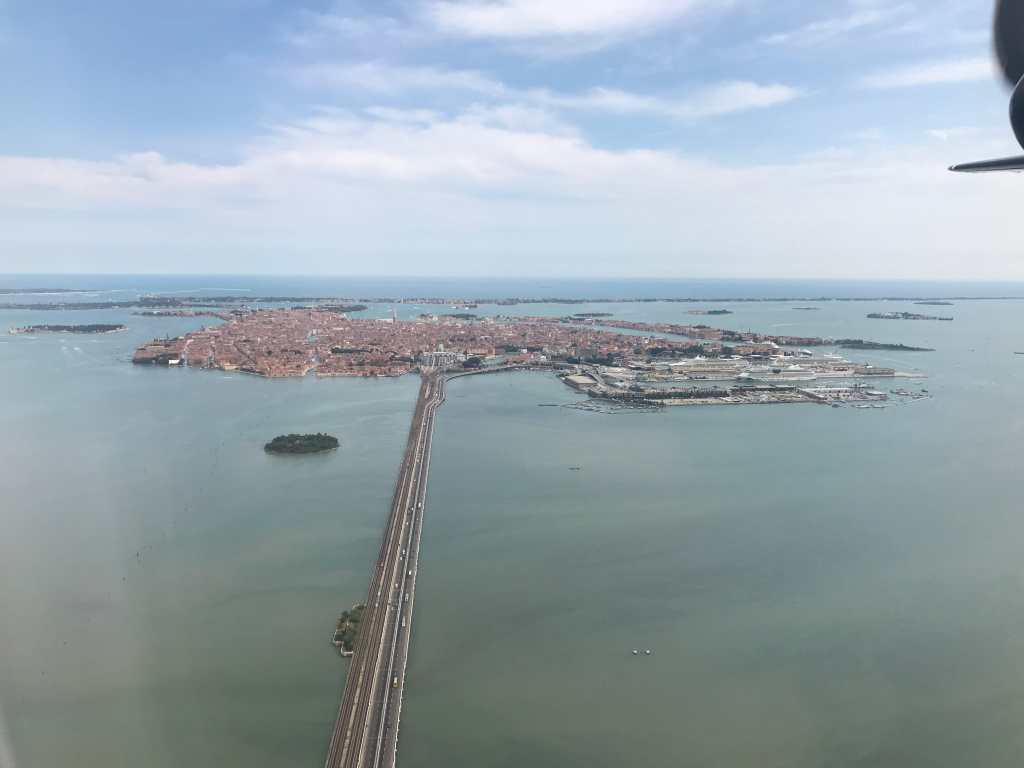 Partis de Luxembourg en milieu de journée, nous survolerons les Alpes et la lagune de Venise avant d’atterrir à l’aéroport Marco Polo. L’approche de Venise restera l’un de nos souvenirs clés de ce voyage. En effet, pouvoir appréhender clairement les limites de la ville en la survolant est un scénario plutôt rare d’habitude, alors quand en plus il s’agit d’une cité aussi belle que Venise, c’est tout simplement inoubliable. On vous laisse d’ailleurs en juger par vous-mêmes ci-dessous.
