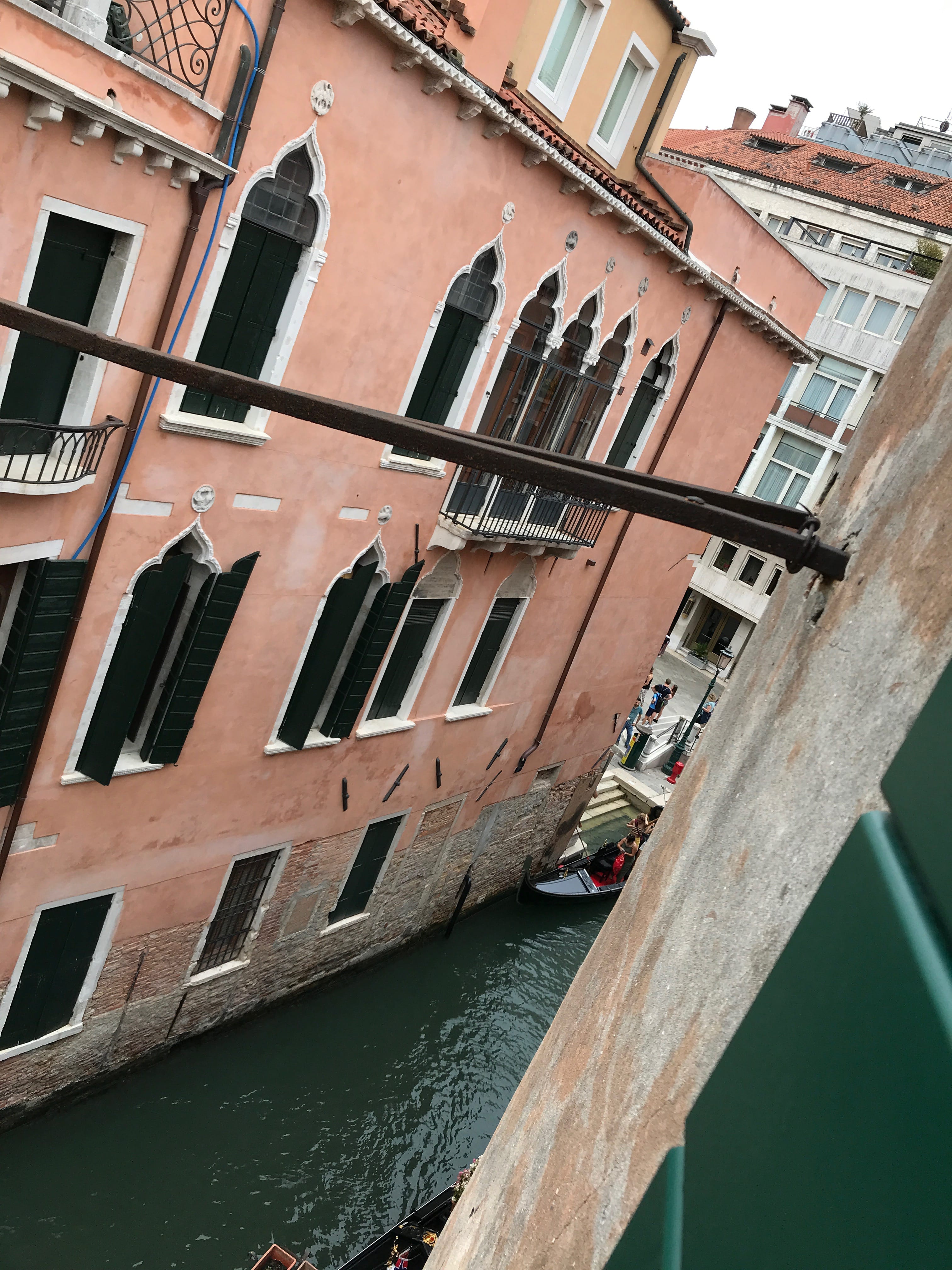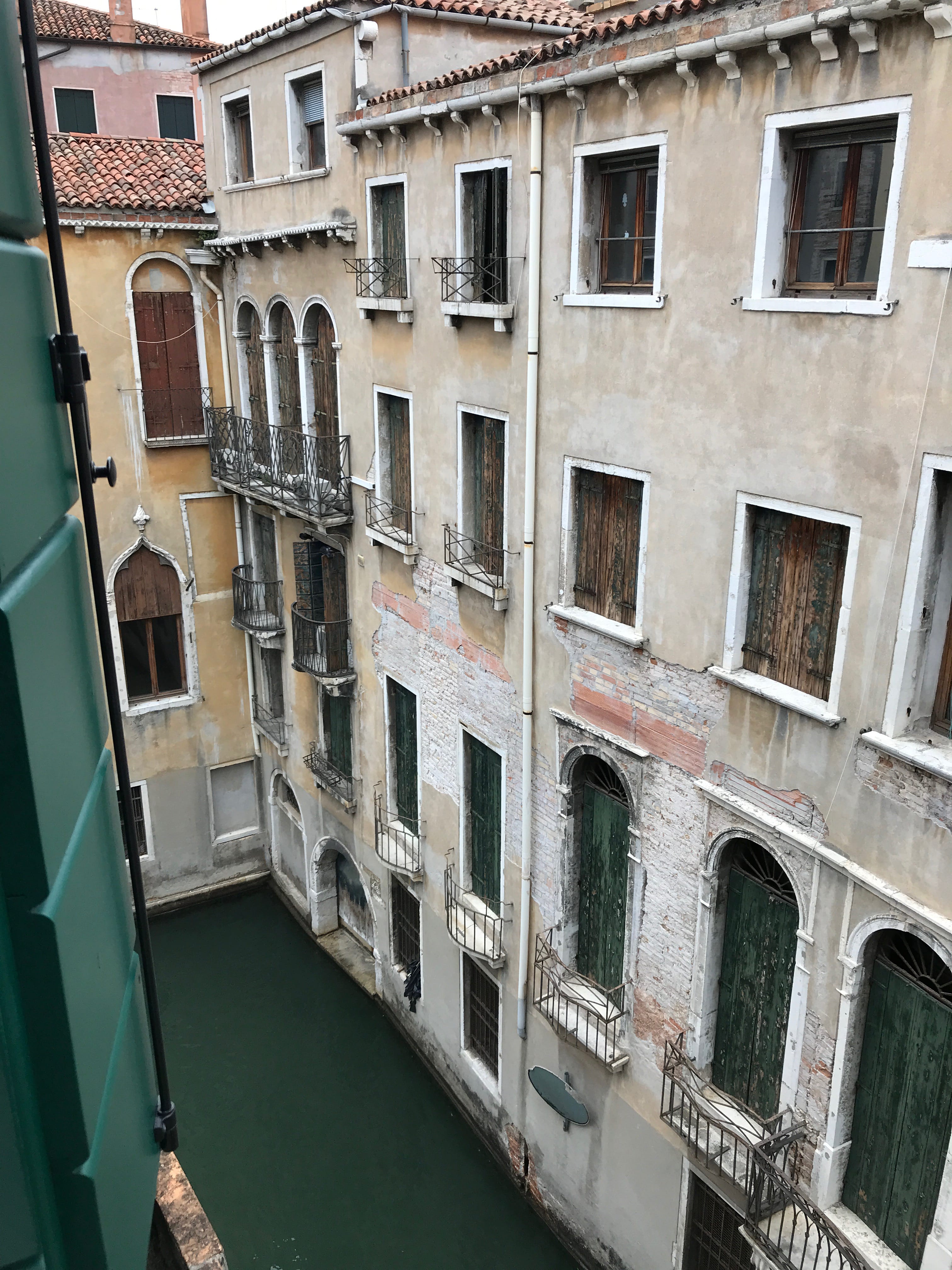 Les transports dans la lagune sont assez chers et comme nous voulions pouvoir profiter du centre également en soirée, quand les touristes sont moins nombreux, nous avions trouvé une chambre d’hôtes à 300m de la place Saint-Marc. Si votre budget n’est pas trop serré et que vous souhaitez découvrir Venise moins encombrée, nous vous la conseillons ici. Pour la rejoindre, nous choisirons d’y aller à pied pour traverser une première fois la ville. Grand mal nous en a pris, car bien que la distance ne soit pas très importante, nous n’avions pas pris en compte les très nombreux ponts que nous allions devoir traverser ni les pavés qui jalonnaient le chemin sous les roulettes de nos valises. Trajet bruyant et interminable mais ça en valait la peine.