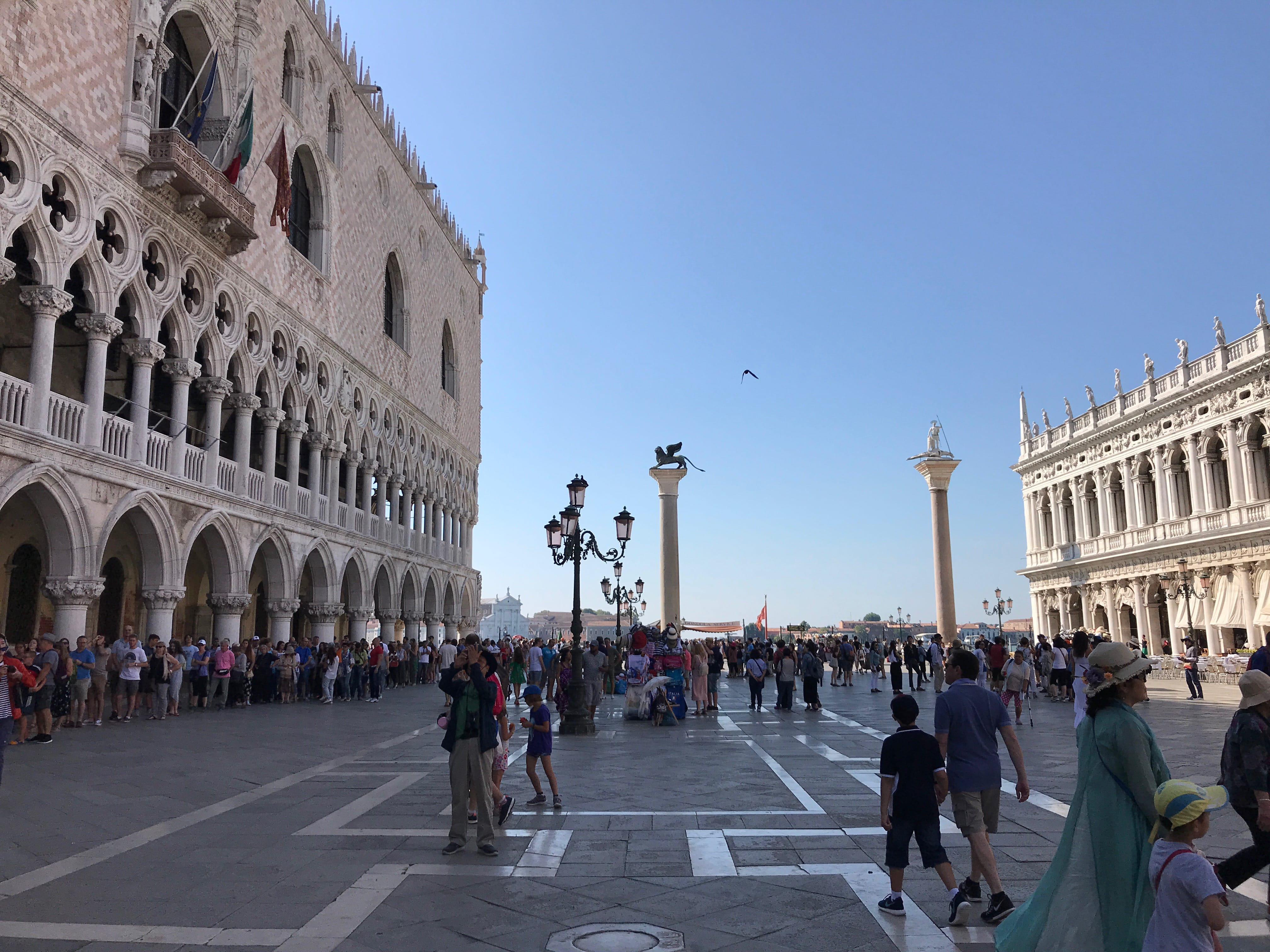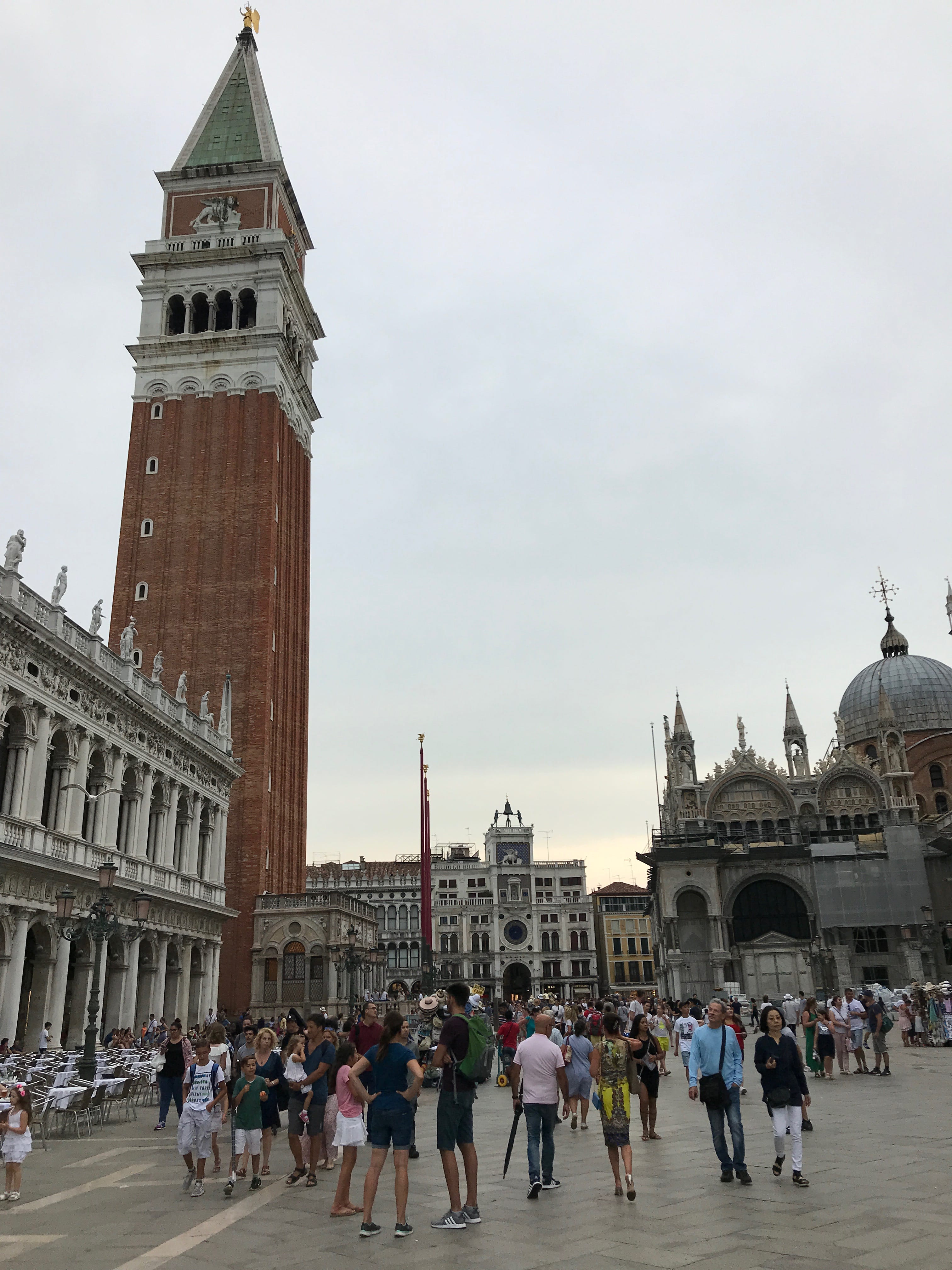 L’après-midi étant déjà bien entamée, nous irons nous balader autour des points d’intérêts principaux : la place Saint-Marc avec la Basilique et le Campanile, le Palais Ducal et le Pont des Soupirs, l’Arsenal, le Pont du Rialto. Tout cela en profitant des célèbres canaux et des innombrables ponts qui les enjambent. Tout le centre peut se faire facilement à pied et permet de voir beaucoup de choses. D’autant plus que, en fin de journée, les croisiéristes sont tous de retour sur leur bateau et il est bien plus agréable de visiter sans les hordes de touristes se ruant dans tous les sens. Nous finirons par dîner dans un restaurant, trop touristique à notre goût, avant de prendre une bonne glace chez Venchi et de rentrer nous reposer.
