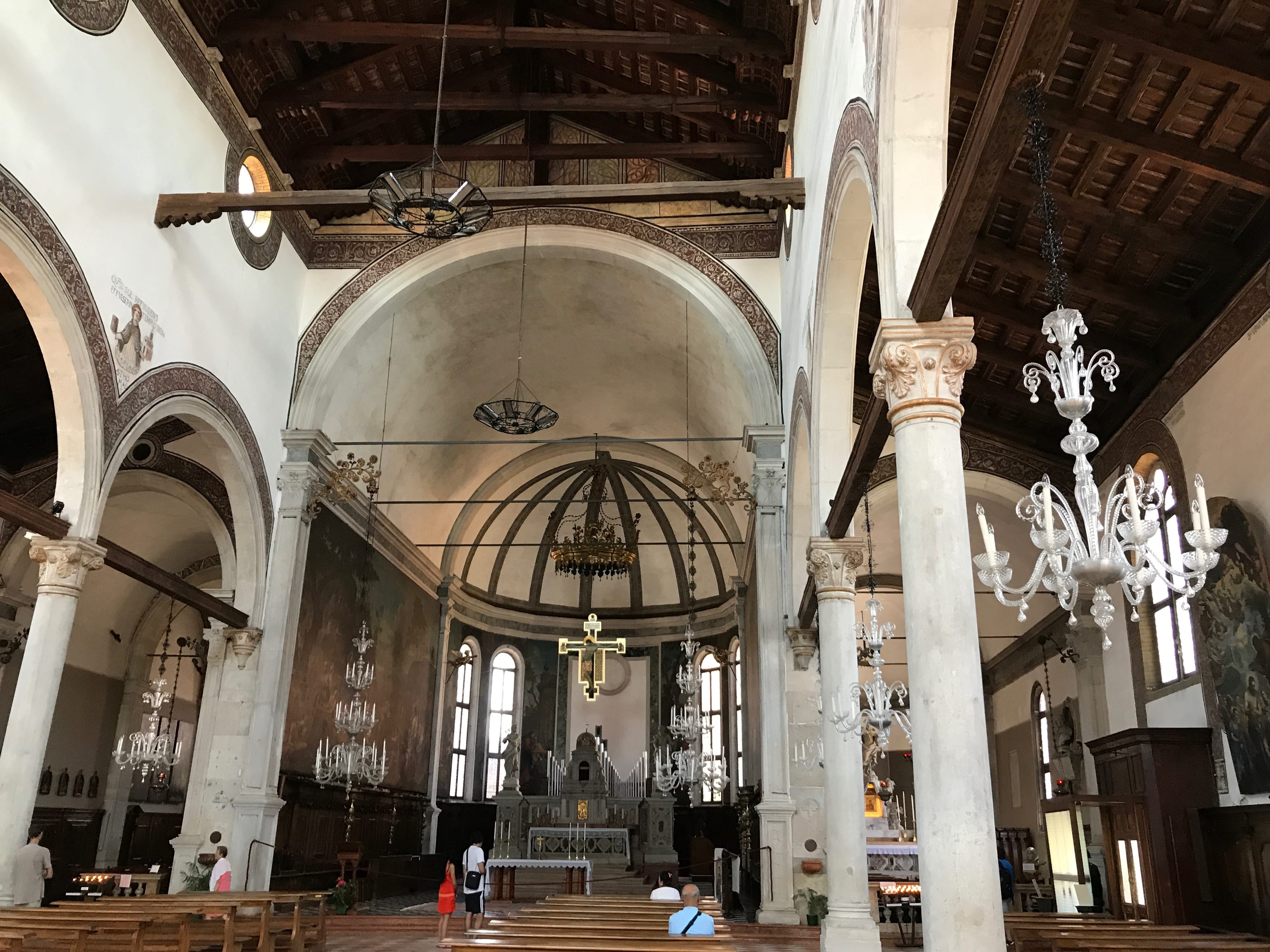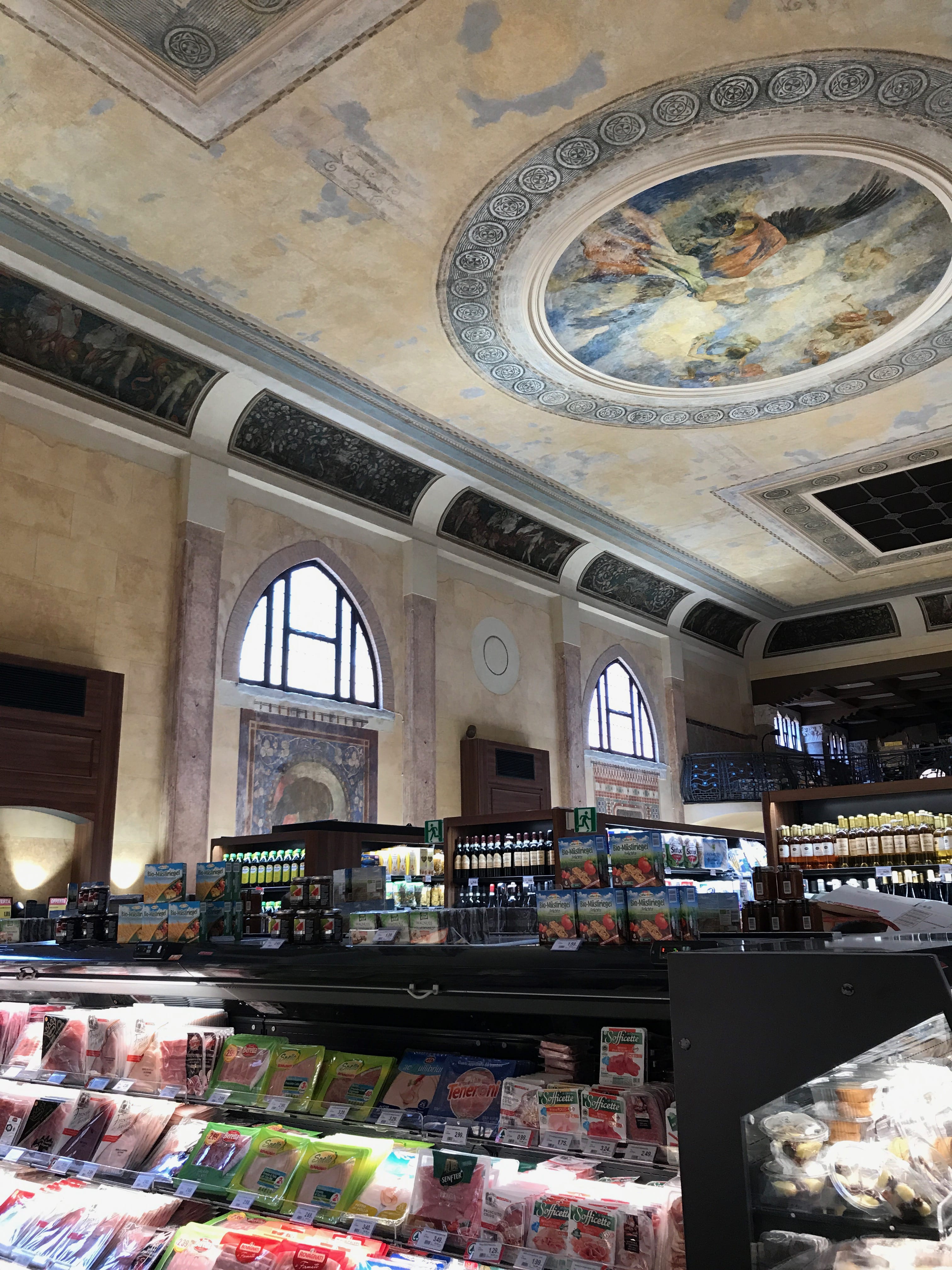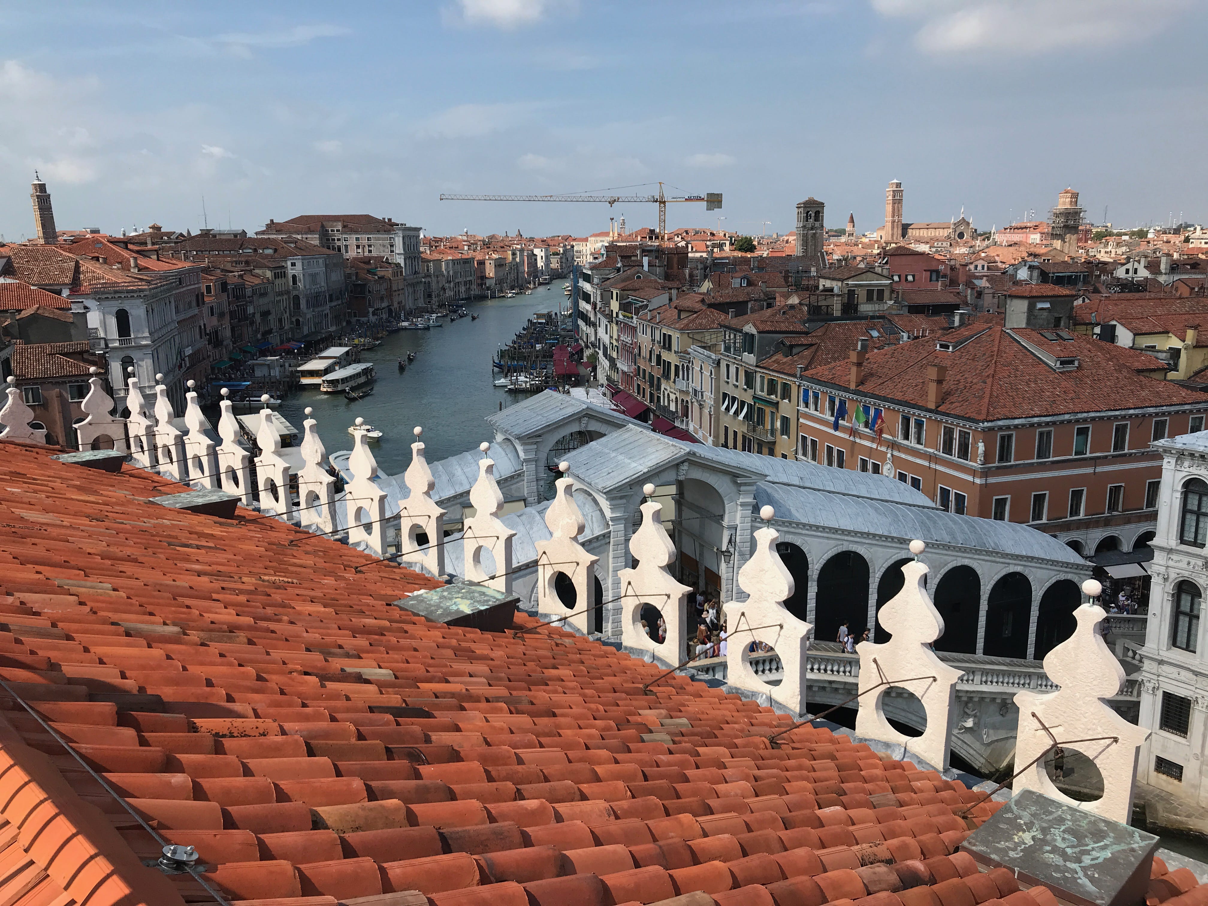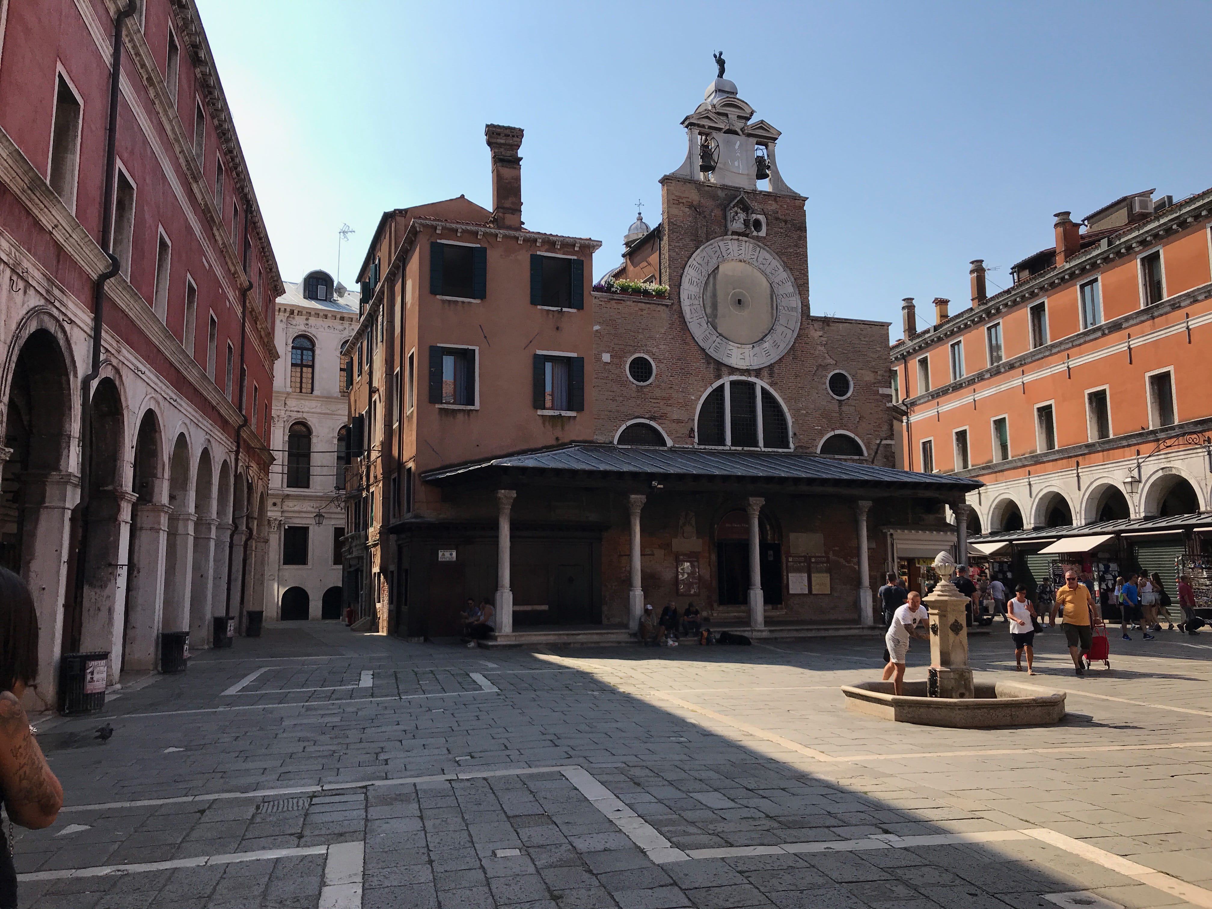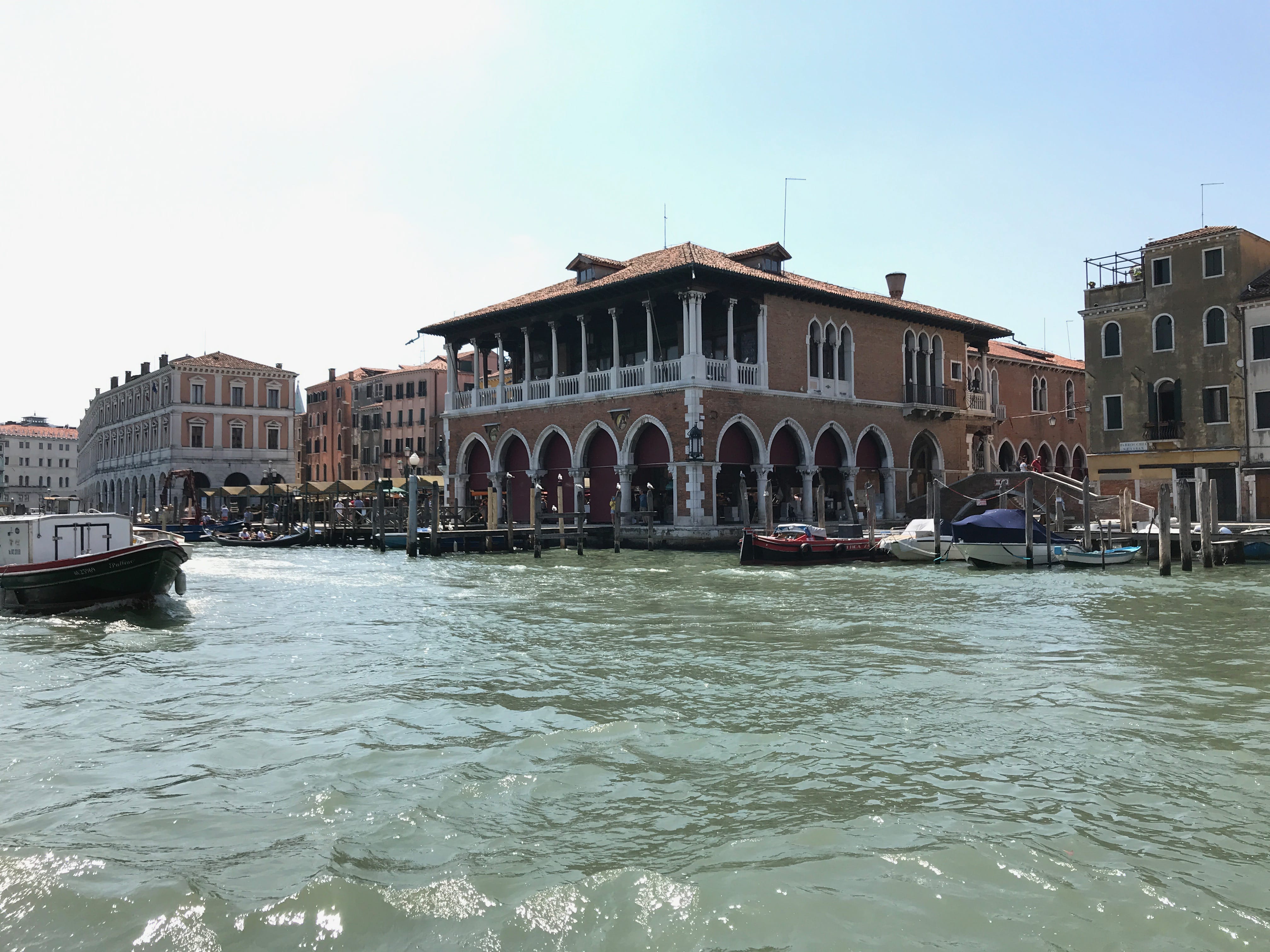 Nous consacrerons cette matinée à une balade sur les berges du Grand Canal, où nous croiserons un marché sur le chemin vers le centre commercial Fontago dei Tedeschi. Si nous cherchons ce bâtiment, ce n’est pas pour faire des emplettes mais pour en atteindre le dernier étage et profiter d’une vue panoramique sur la ville. L’accès est gratuit mais également connu des touristes. Il faut s’attendre à patienter quelques minutes avant d’accéder au toit. L’occasion d’avoir un panorama sur la ville (et notamment une vue imprenable sur le Rialto) est néanmoins exceptionnelle et totalement gratuite, il n’est donc pas si difficile de patienter un peu. Pour le déjeuner, nous avions lu dans notre guide qu’un ancien théâtre avait été transformé en supermarché ce qui rendait la combinaison des deux particulière. Nous y ferons nos achats de produits locaux pour nous rassasier. Puis, encore une fois, et parce que c’est tout de même des vacances, nous retrouverons la plage d’Alberoni pour finir la journée.