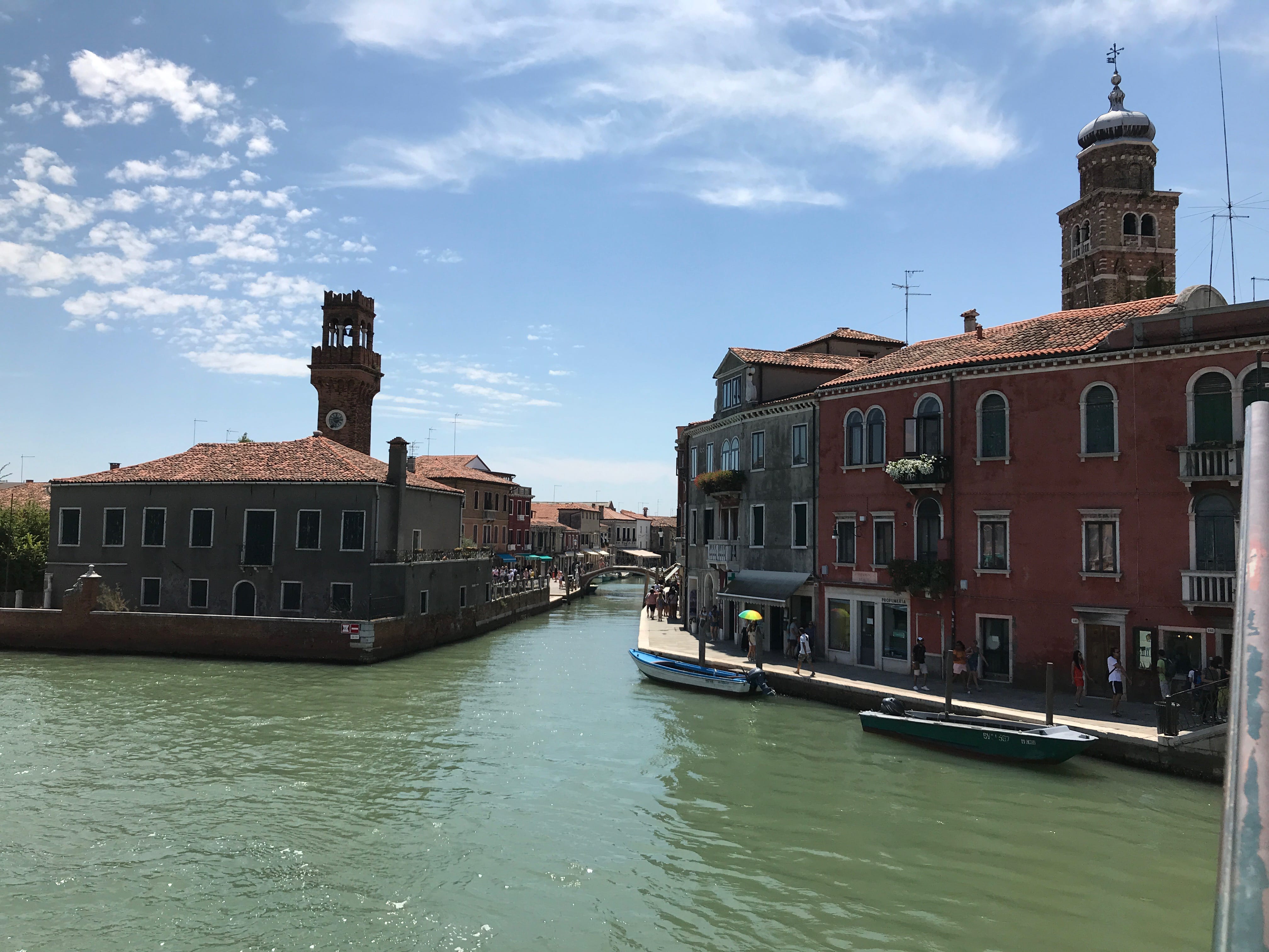 Nous avions donc choisi de consacrer la deuxième journée à la visite des célèbres îles de Burano et Murano. Ambiance vacances garantie : couleurs pétillantes et démonstration impressionnante par les maîtres verriers. Le trajet en vaporetto jusqu’à la première île, Burano est tout de même long et à prendre en compte dans le déroulement de la journée. Au bout d’une heure de trajet donc, nous arrivons à Burano. Nous y passerons un peu de temps, déambulant au gré des rues et des façades colorées jusqu’à traverser le petit pont vers l’île de Mazzorbo, où nous reprendrons la navette en direction de Murano, plus proche de l’île principale. Nous déjeunerons donc à Murano, dans un restaurant traditionnel avant d’assister à une fabrication artisanale de verre soufflé. Sachez en tout cas que pour assister à une démonstration de souffleur, nous avons pu voir de tout, à tous les prix, et dans des conditions plus ou moins encadrées. Si cela entretient un peu le folklore de l’île, nous ne pouvons que vous conseiller de rester prudents sur ce qui vous sera vraiment présenté et à quel prix.