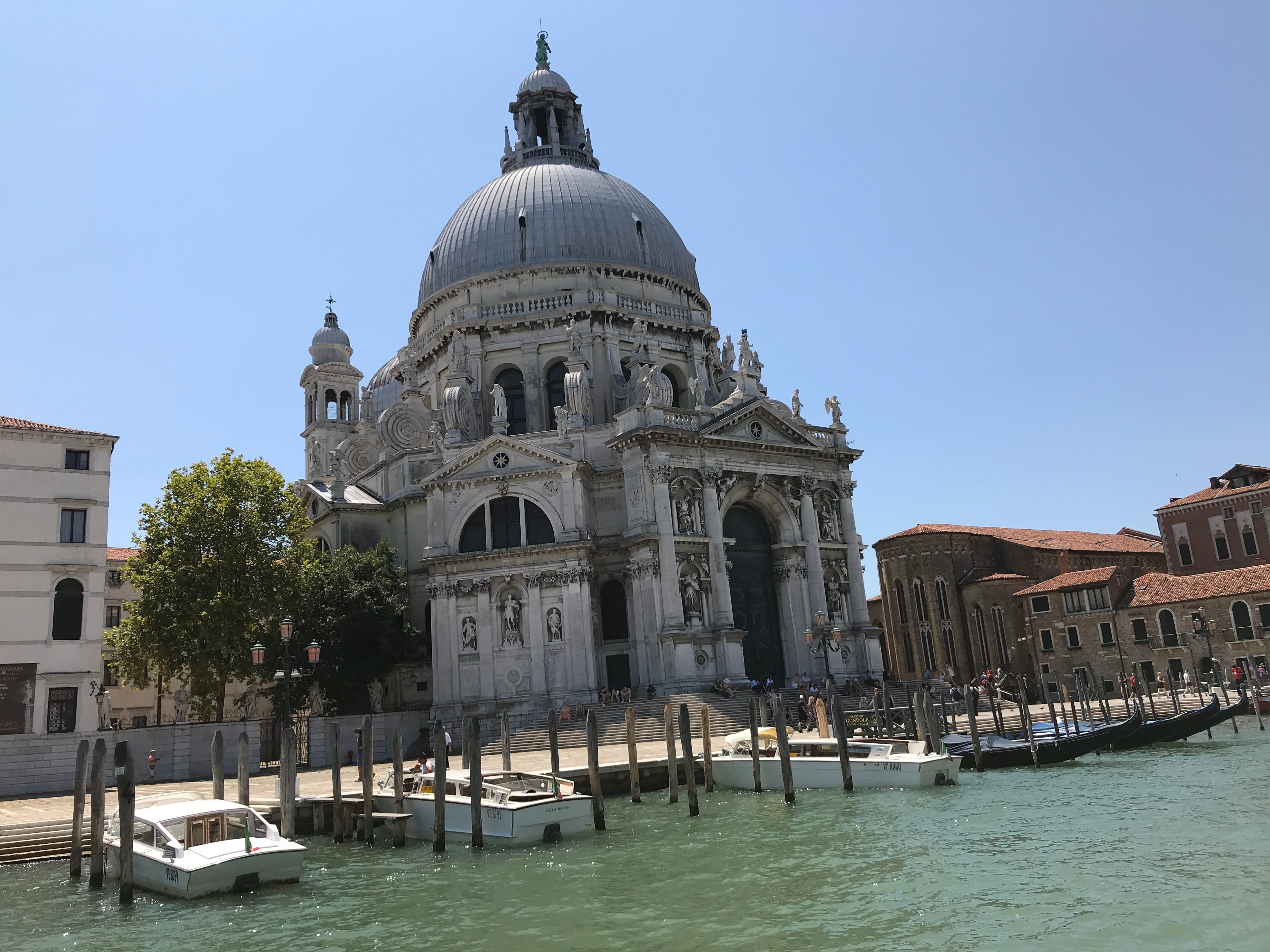 Après cette visite riche en anecdotes, trop nombreuses pour être détaillées, nous prendrons un vaporetto pour traverser le Grand Canal et nous rendre à la Punta della Dogana et voir ainsi de plus près la Basilique Santa Maria della Salute.