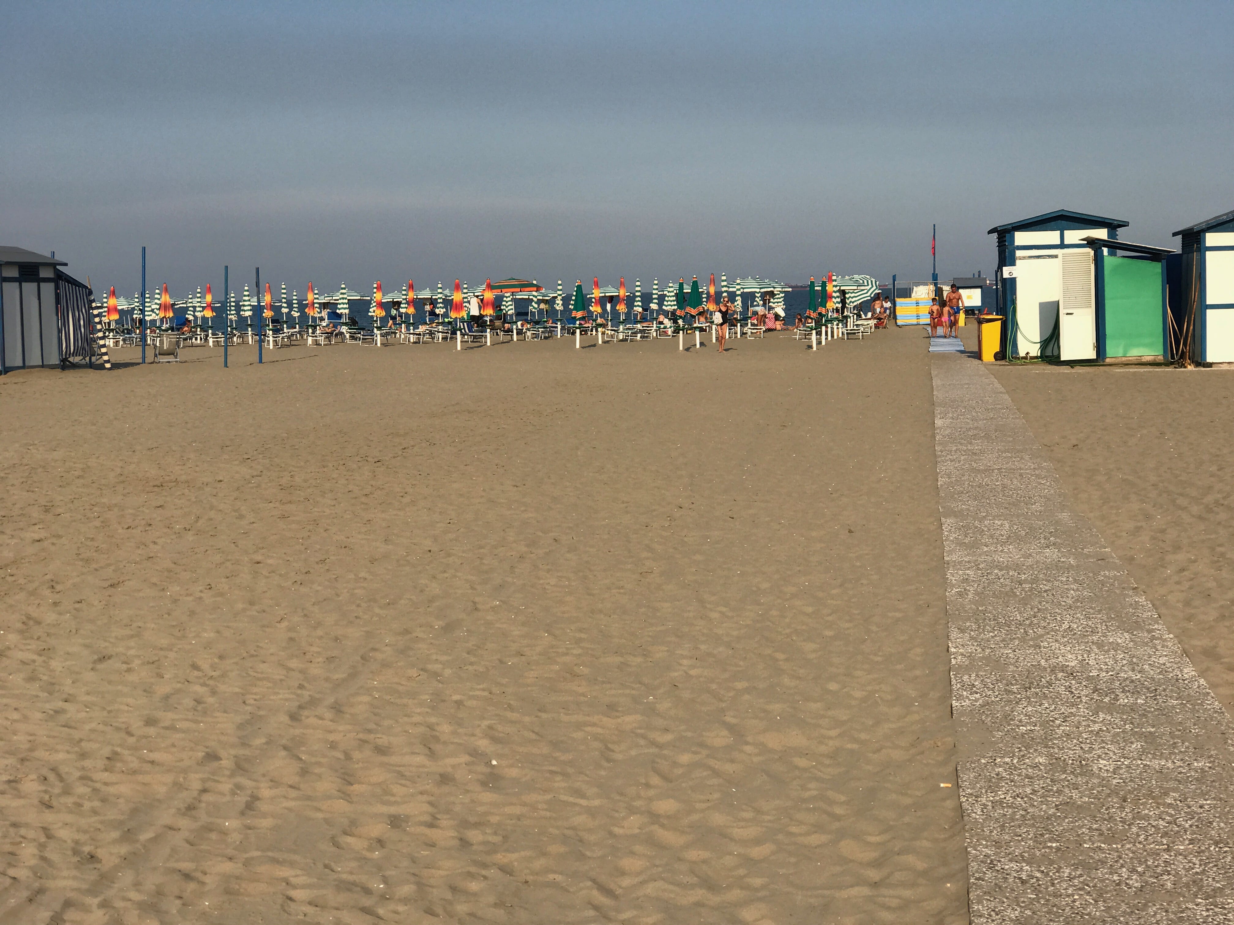 De retour au centre de Venise, abattus par la chaleur de la journée, nous retournons rapidement à notre chambre pour récupérer maillots de bain et serviettes et reprenons un vaporetto en direction du Lido de Venise. Nous traversons la grande avenue qui nous sépare de Lido Beach et profitons d’un bon bain rafraîchissant. Cette plage étant la plus accessible, elle est par conséquent très chargée en touristes. En rentrant à notre chambre, nous demanderons conseil à nos hôtes pour savoir si nous ne pouvions pas avoir une meilleure option pour les jours suivants.