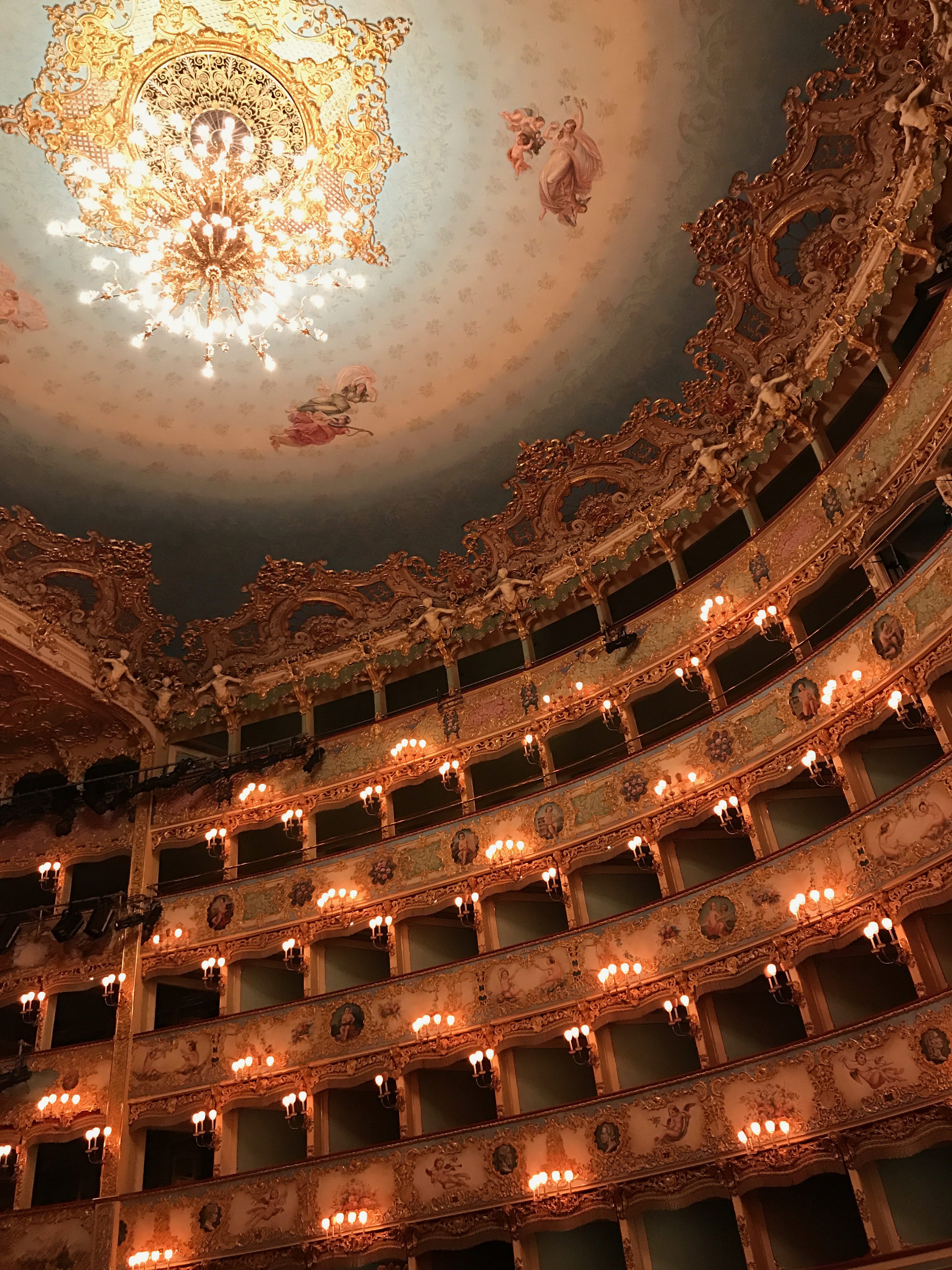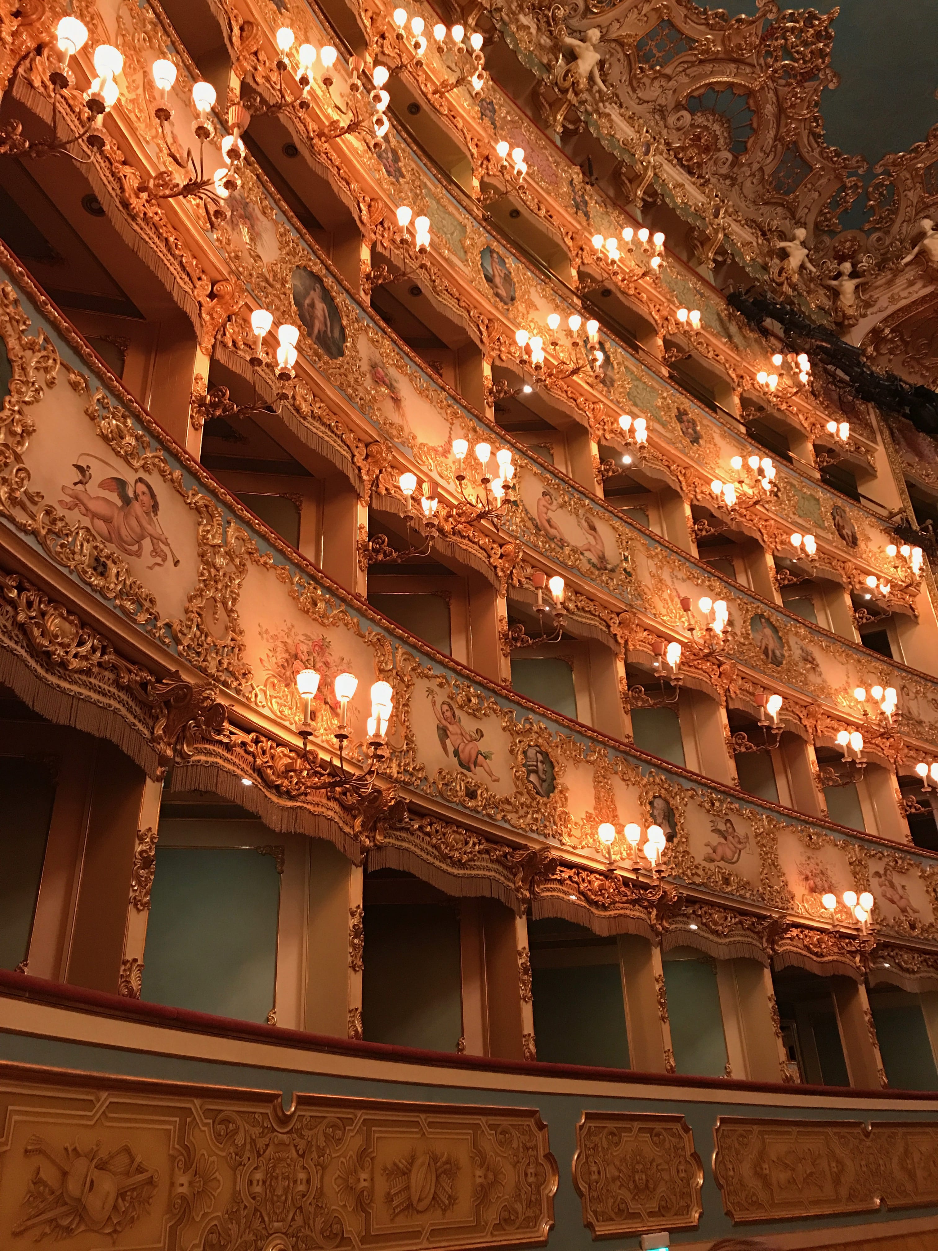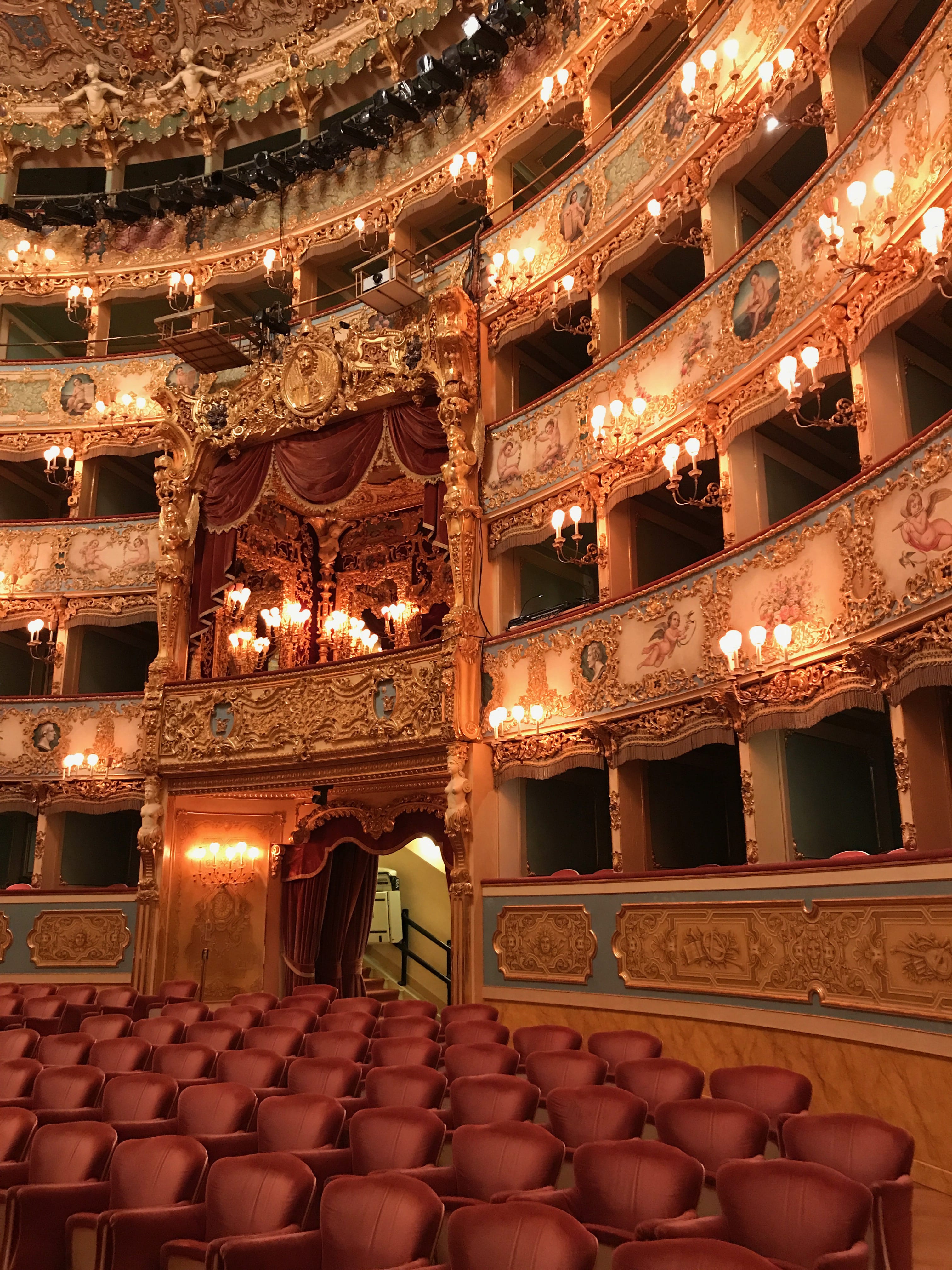 La dernière visite est consacrée au célèbre théâtre de Venise : La Fenice. Le bâtiment n’est pas très impressionnant vu de l’extérieur mais la salle intérieure est majestueuse !