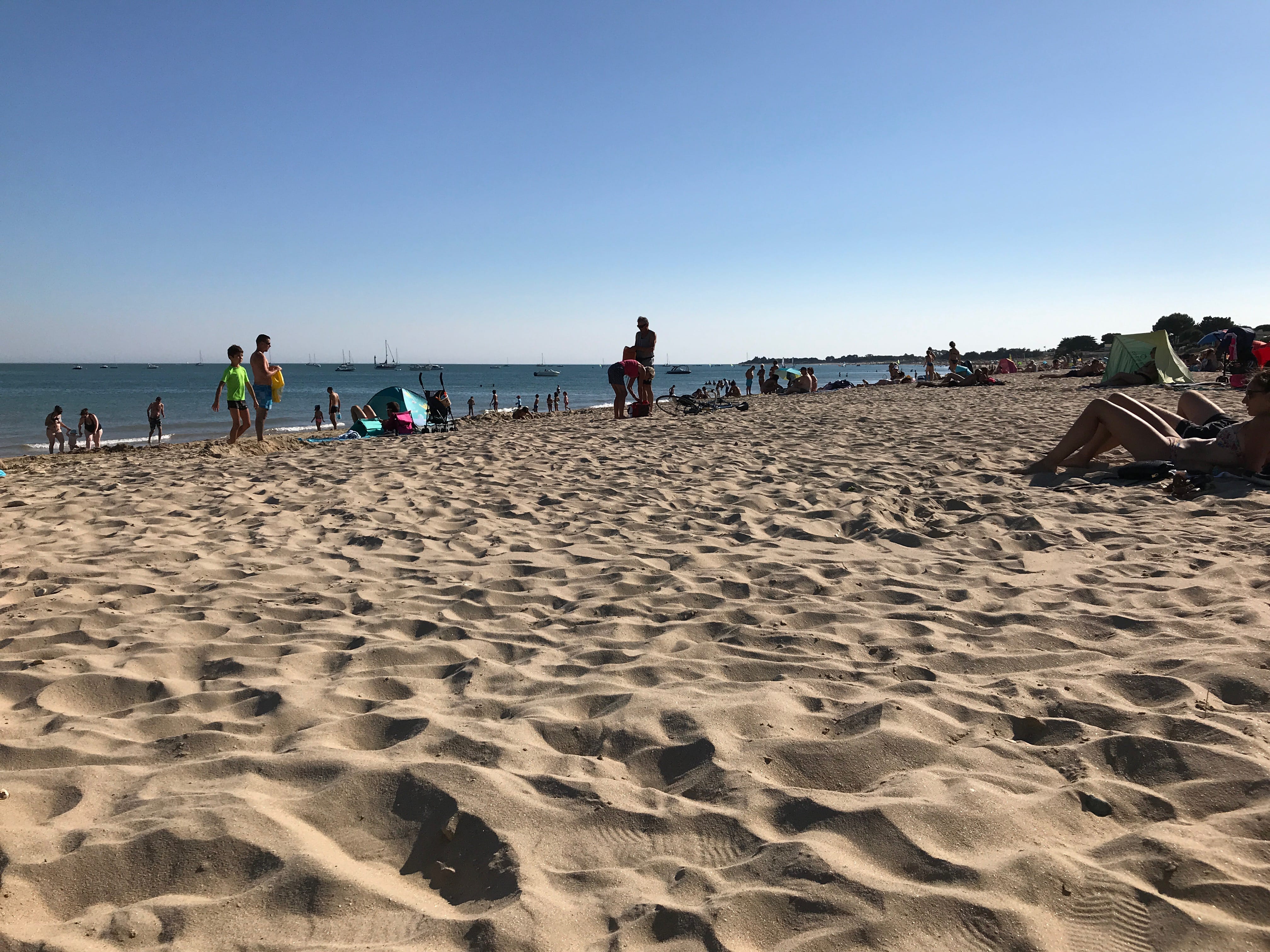 Le lendemain, journée majoritairement consacrée à La Rochelle, nous irons l’après-midi faire trempette à la plage du Gros-Jonc, très touristique et à notre avis pas la plus jolie non plus. Disons que si vous souhaitez y aller le temps d’un après-midi ou d’une journée, ce n’est pas ni la plus accessible, ni la plus facile à rejoindre depuis le continent, et donc loin d’être notre premier choix. Et pour le coup, c’était la première fois que nous étions réellement les uns sur les autres sur une plage de l’île.