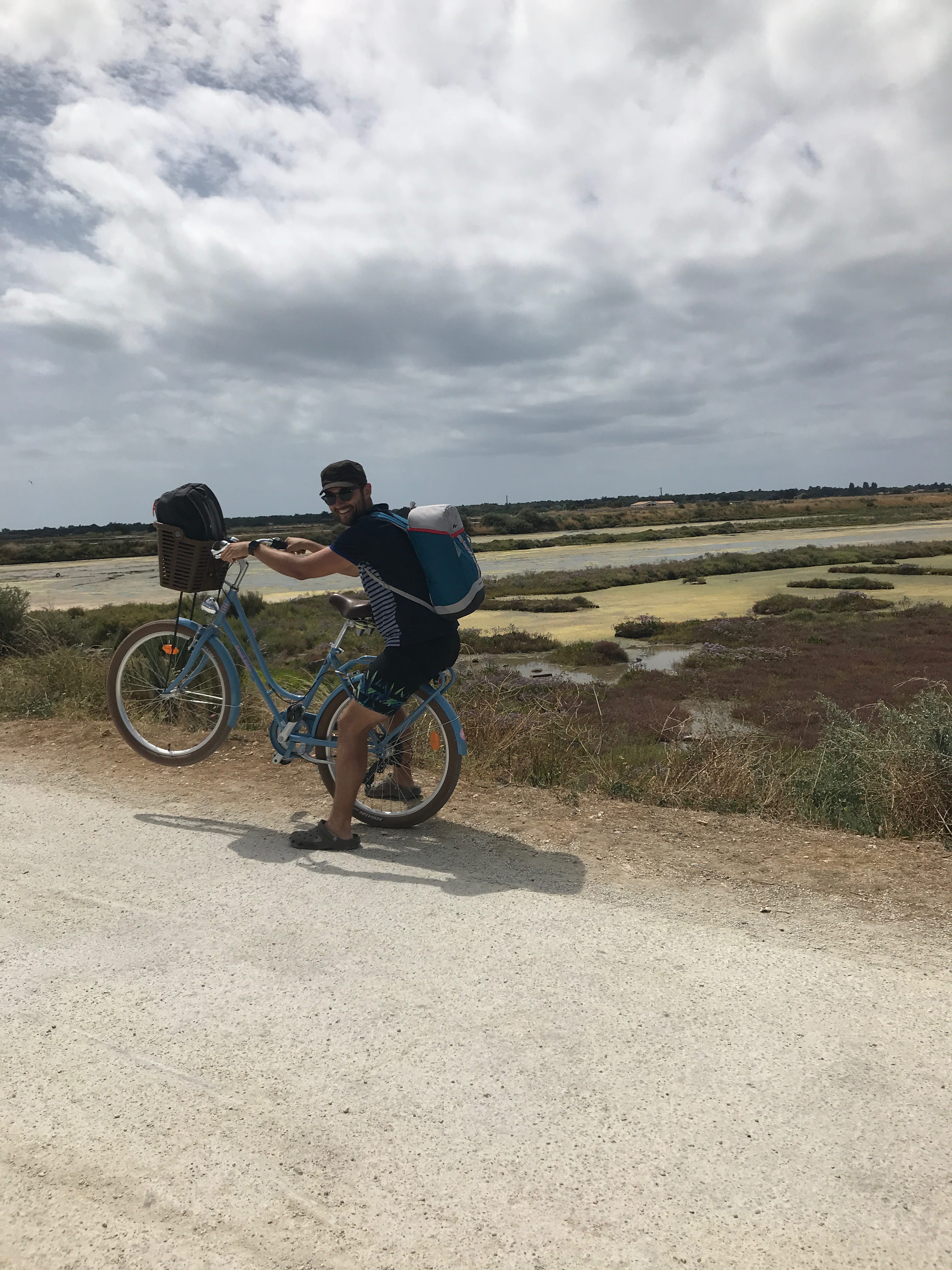 Enfin, pour le tout dernier jour de vacances, et donc le dernier sur l’île également, nous avons voulu vivre l’expérience à fond, en partant de La Flotte à vélo pour rejoindre tranquillement St-Martin, et d’ensuite passer par les marais jusqu’à Loix. Si nous devions vous conseiller un tour à vélo pour vous permettre de profiter de l’essentiel de l’île, ce serait celui-ci. Les distances sont autant adaptées pour des personnes non expérimentées que pour une famille voulant passer une journée, entre littoral et marais, villages typiques et plages plus tranquilles. Le trajet à vélo vous permet de découvrir des bars à huîtres avec vue sur l’océan, une école de voile où les petits prennent leurs premières vaguelettes, un village plus méconnu, mais loin d’être dénué d’intérêt, Loix. Son mignon petit centre vous donnera l’opportunité de vous restaurer avant d’éventuellement poursuivre encore un peu vers l’océan, complètement déserté par les touristes, qui en général font demi-tour avant de l’atteindre et vous laisseront ainsi le champ libre pour dire au revoir à une île, définitivement pleine de charme.