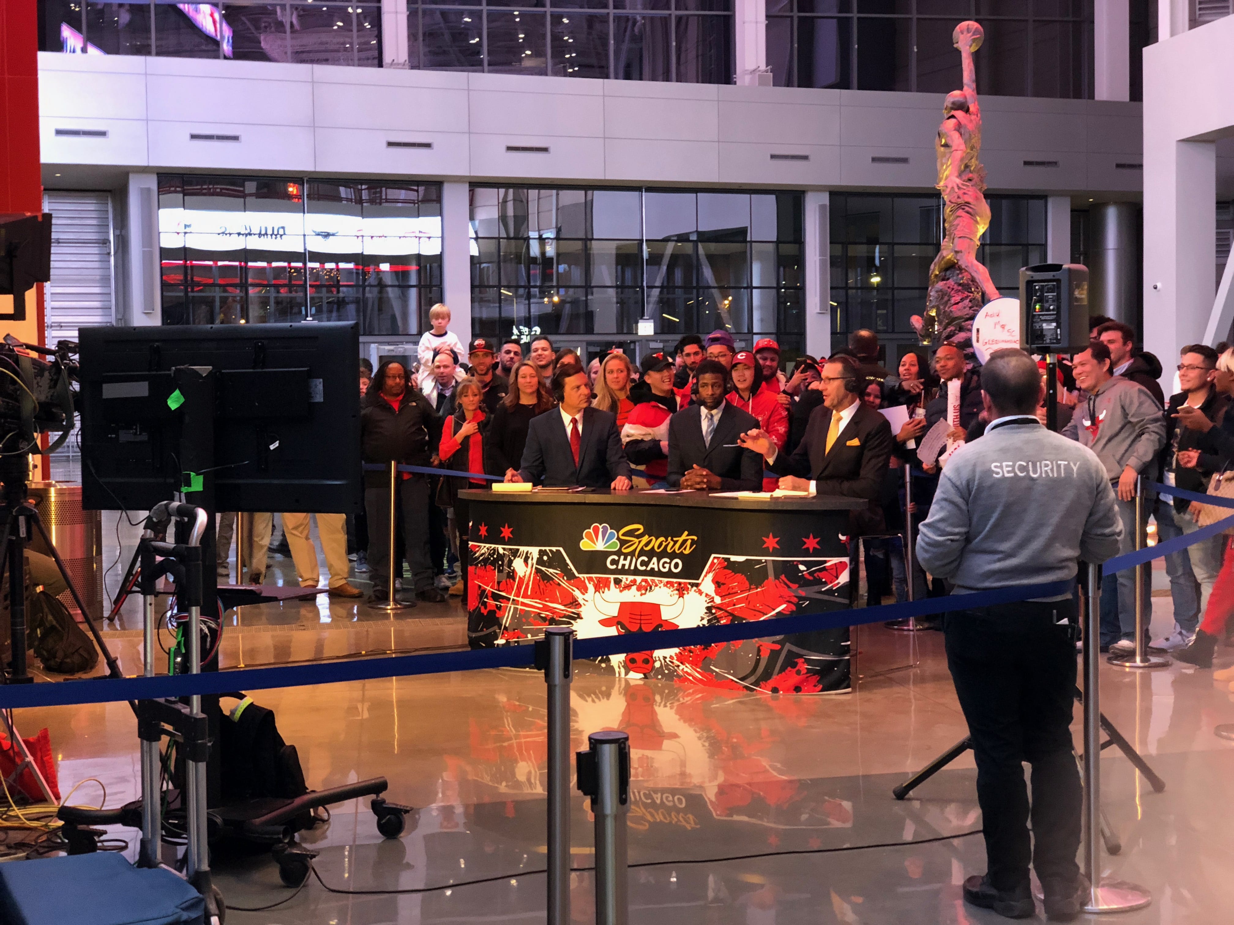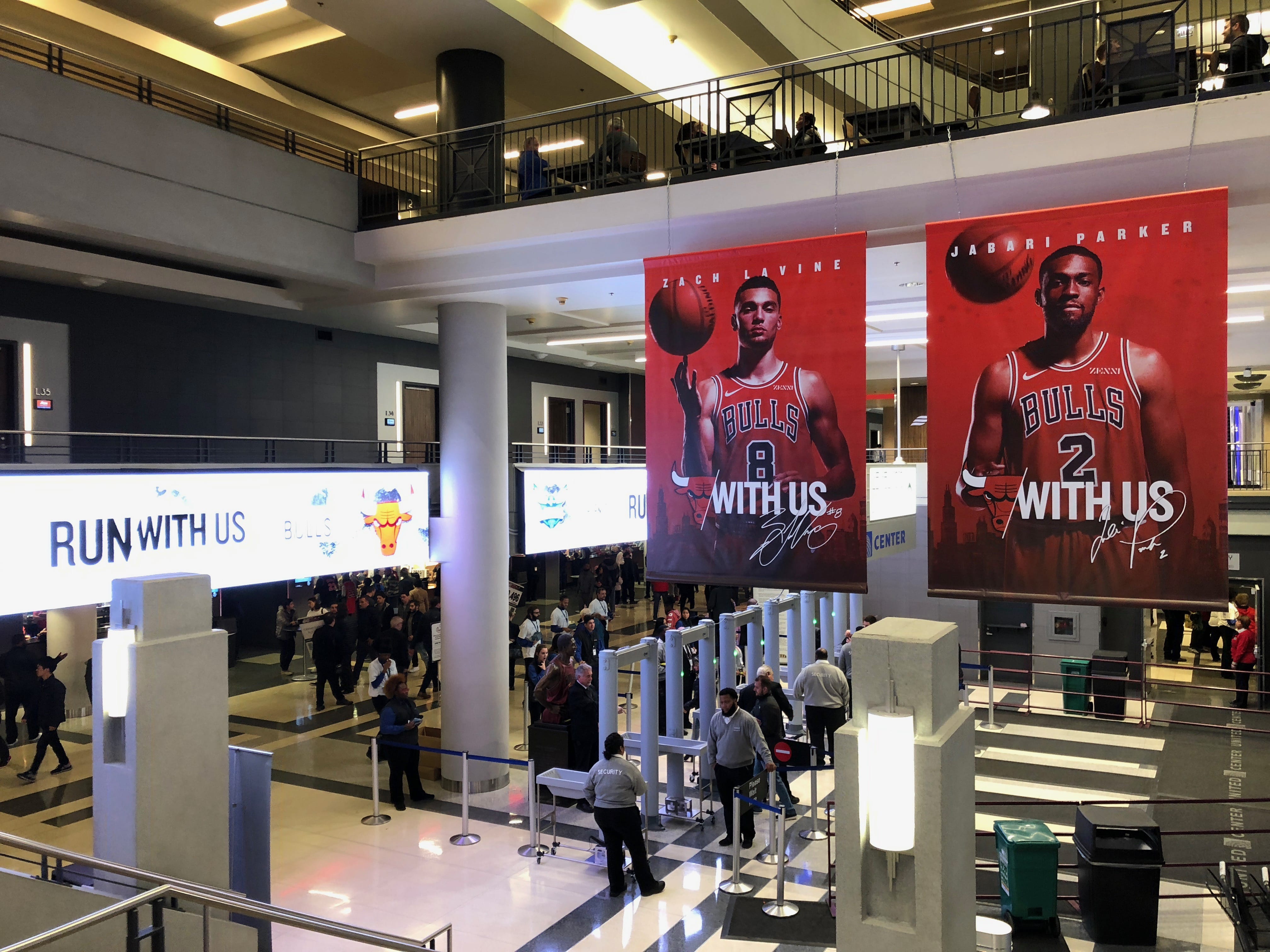 Après tant de marche et de découvertes, nous sommes retournés vers le centre-ville pour profiter des boutiques et faire un peu de shopping avant une nouvelle soirée sous le signe du sport. Ce soir-là, les Chicago Bulls rencontraient les Charlotte Hornets dont Tony Parker et Nicolas Batum faisaient partie à ce moment. Nous étions donc forcément tiraillés entre supporter nos compatriotes (qui ne l’étaient déjà plus trop) ou bien la ville dans laquelle nous avions passé la journée et dont les supporters criaient le plus fort. La victoire à l’arrachée des Bulls aura fini de nous convaincre que nous avions fait le bon choix en préférant le rouge au bleu pour une fois. Comme au match de hockey, l’ambiance constitue une très grande partie du show avec les pompoms girls, les canons à T-shirt et autres animations pendant les breaks. Et encore une fois, un match dont la durée officielle n’est que de 40 minutes, offre un spectacle de plus de deux heures. Cela permet de quelque peu rentabiliser les prix très élevés des billets bien que nous n’ayons pas pris des places de premier choix. Nous aurons en tout cas bien apprécié cette soirée qui aura satisfait nos attentes. Anecdote de quelque chose que nous n’aurions jamais vu en France : en sortant, dans le hall de la salle, se trouvaient une table et des caméras avec les commentateurs sportifs d’une chaîne de sport nationale qui commentaient le match qui venait de se passer. La proximité avec ce plateau de télévision nous a surprise car nous pouvions en être spectateurs et même passer derrière la caméra si nous avions été plus téméraires.