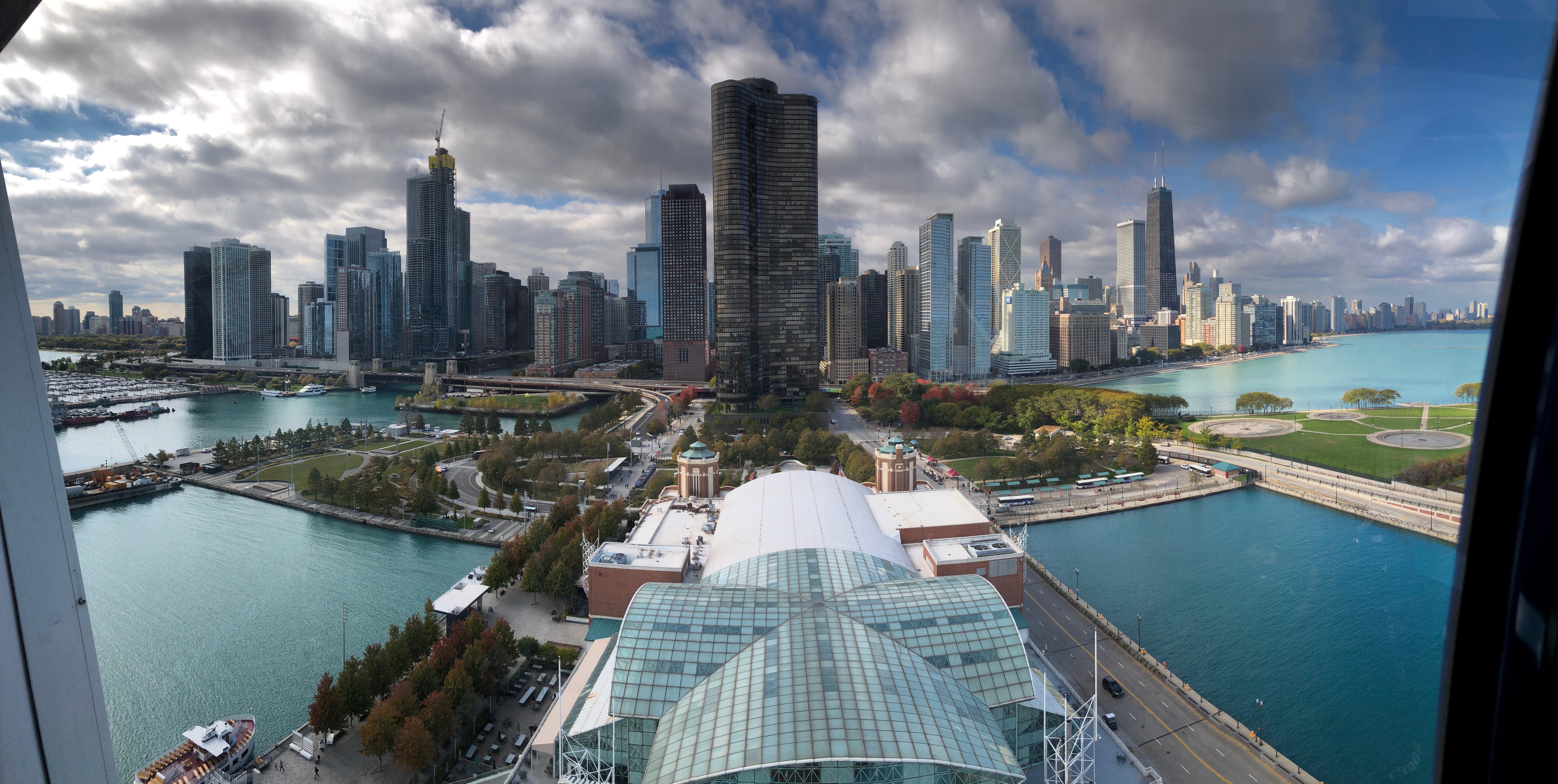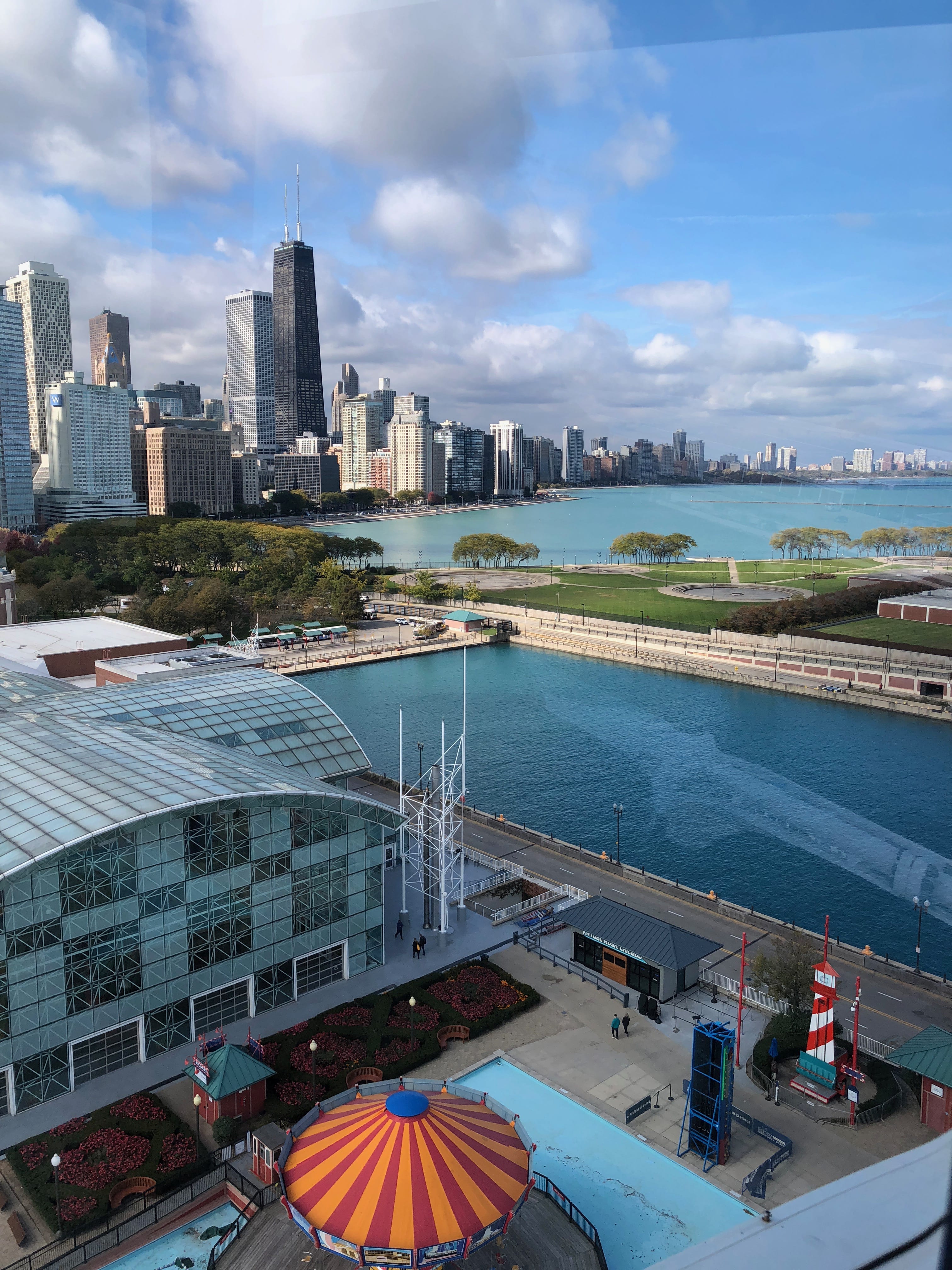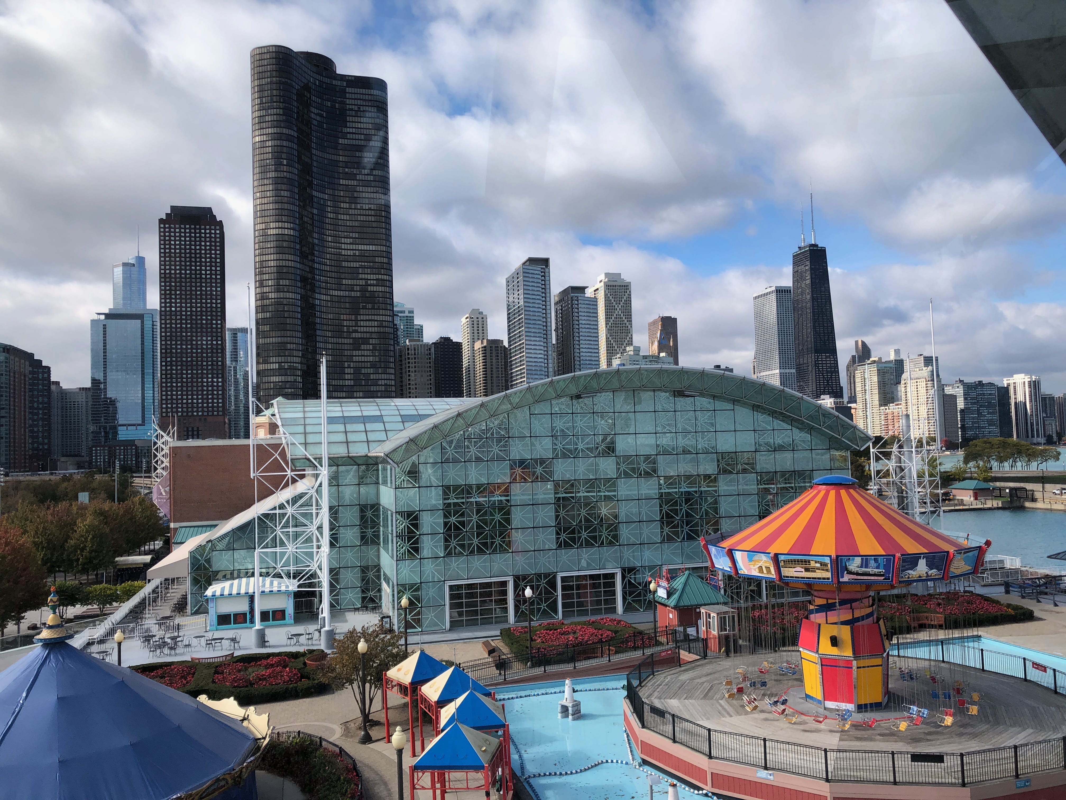 Nous continuerons notre promenade en passant par le Parc Grant et longerons le Chicago Harbor du Lac Michigan pour rejoindre Navy Pier, le plus célèbre ponton de la ville. A l’intérieur vous pourrez trouver différentes boutiques de souvenirs ou des lieux de culture pour en découvrir davantage sur l’histoire de la Windy City. A l’extérieur, c’est un petit parc d’attractions qui n’est animé qu’en soirée. C’était plutôt désert au moment où nous nous y sommes rendus mais cela nous a permis de profiter rapidement d’un tour dans la grande roue offrant un panorama grandiose sur le lac d’un côté et la ville de l’autre. La vue depuis le sommet de la roue reste l’une des plus marquantes et des plus belles que nous ayons vu pendant ce séjour. En redescendant, nous traverserons la serre du Pier pour profiter d’un peu de verdure avant de rejoindre Downtown.