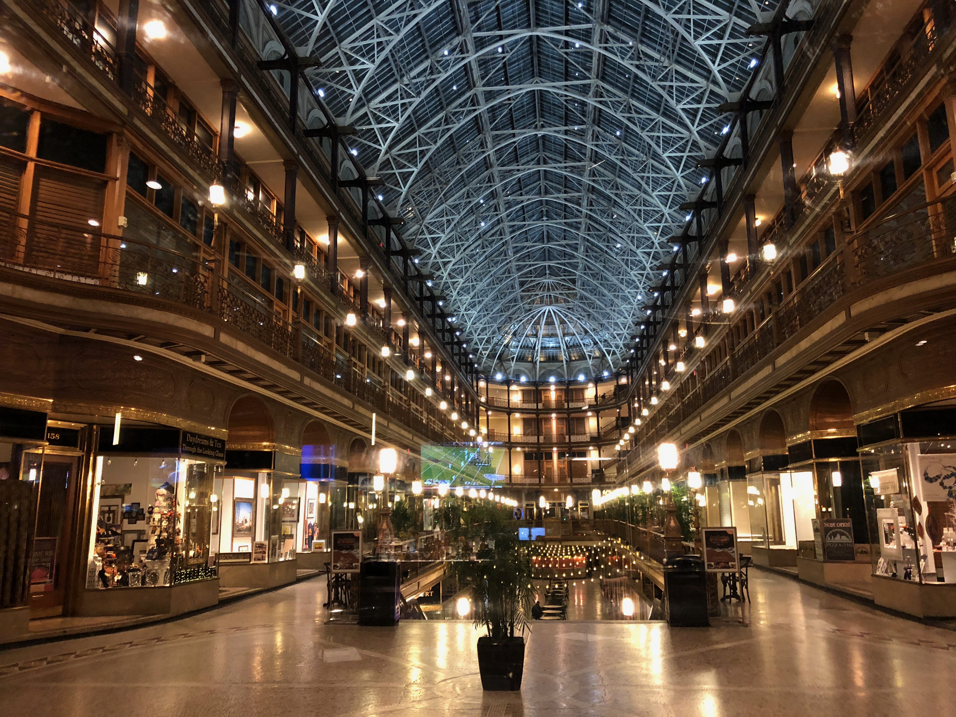 Pour revenir sur notre étonnement concernant les horaires de fermeture dans la ville, nous avons failli nous faire avoir pour le repas du soir. Nous qui pensions trouver facilement de petits restaurants ou supermarchés pour trouver de quoi manger, sommes arrivés devant de nombreuses portes closes avant de finalement trouver une petite pizzeria traditionnelle pour dîner. Elle avait tout de même l’avantage de nous faire profiter d’une belle vue sur The Arcade : un passage couvert de l’époque Victorienne, devenu patrimoine historique national en 1975. Il est aujourd’hui géré par l’Hôtel Hyatt Regency qui exploitent ses tours pour les chambres de ses clients. L’accès à The Arcade est limité de 10h à 18h mais même si nous n’avons pas pu le traverser, la photo de nuit depuis le restaurant en valait la peine.