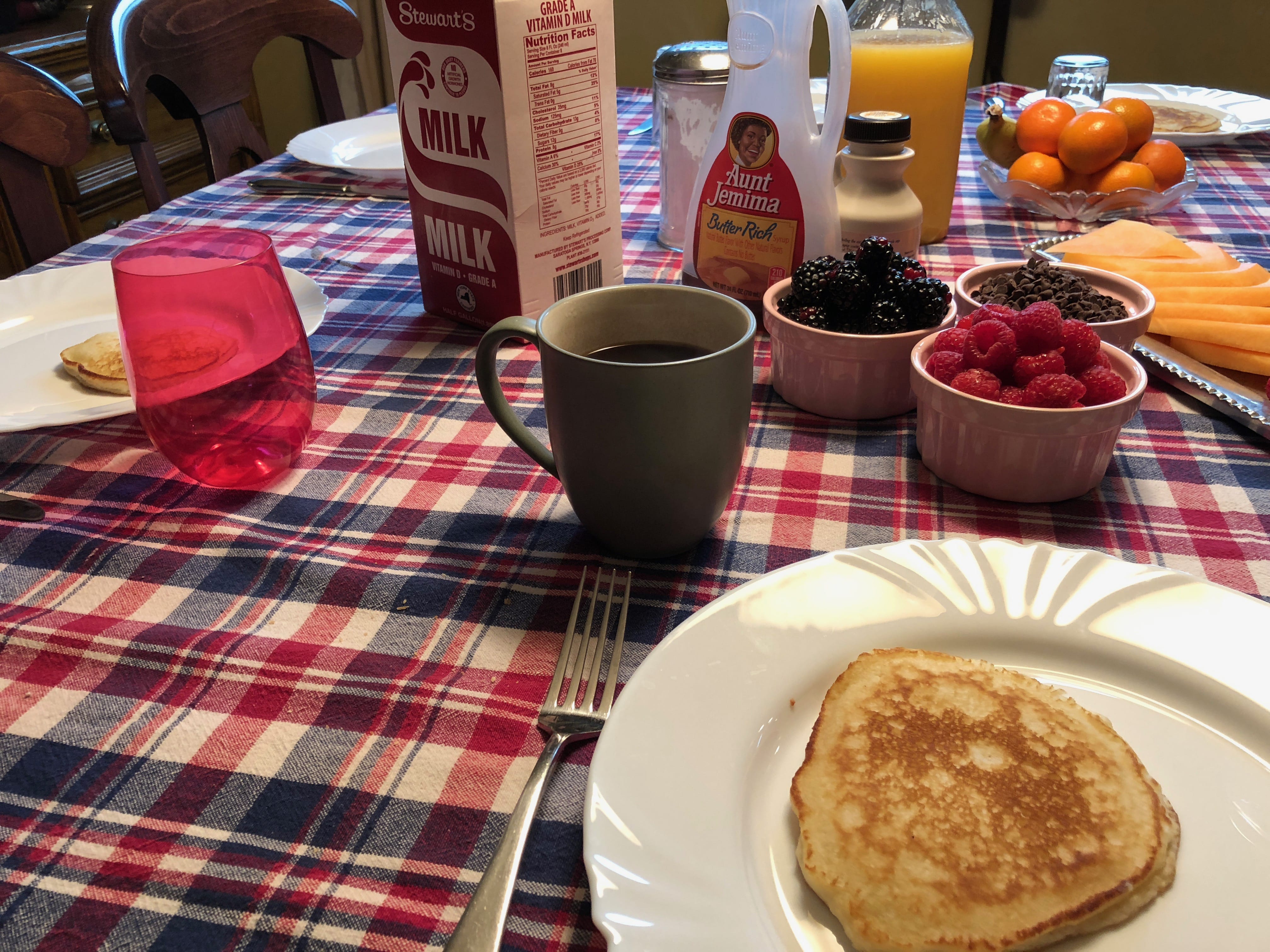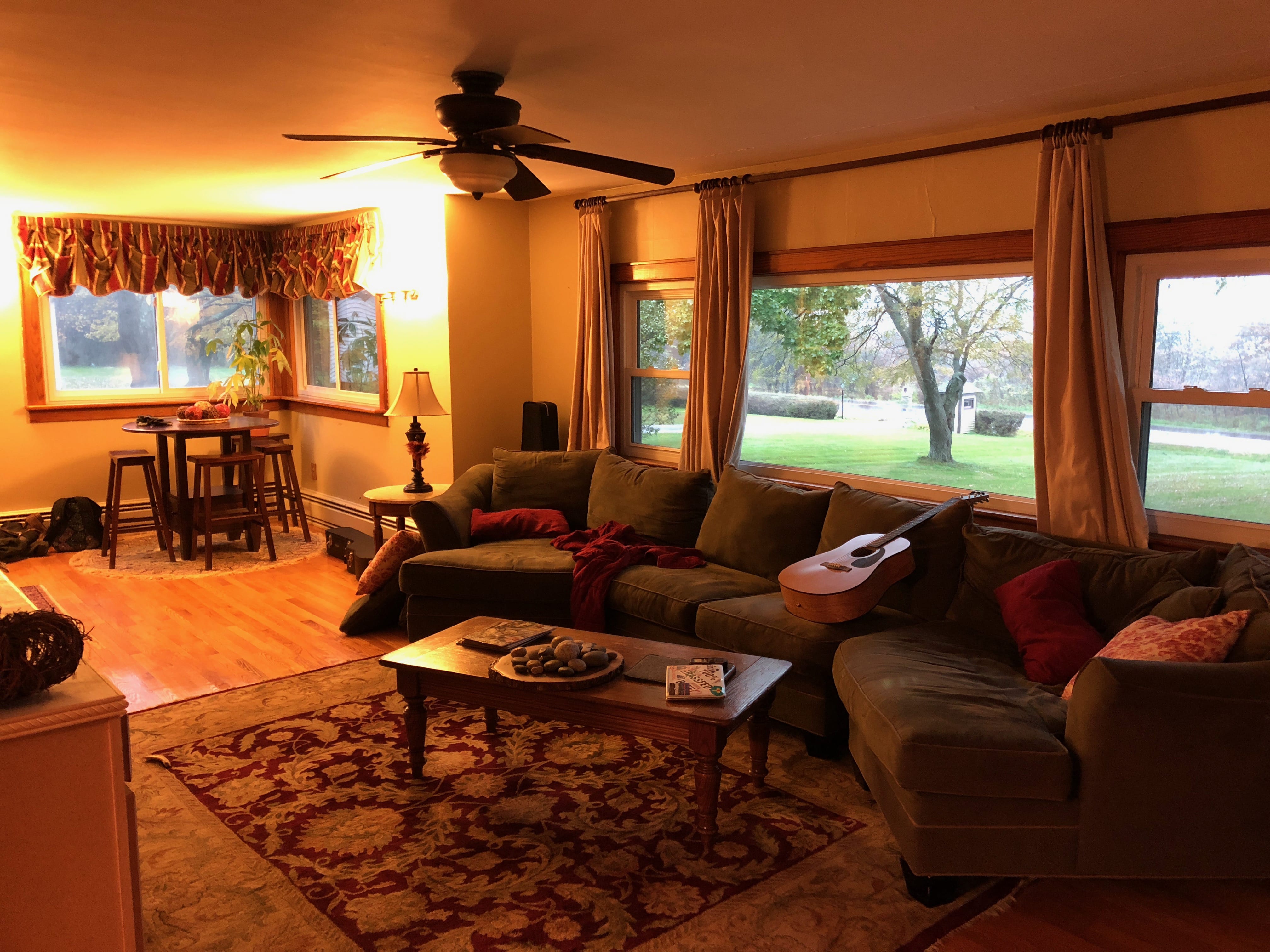 De retour à la voiture, il était maintenant venue l’heure de rejoindre Jeri et sa famille pour un weekend typiquement américain. L’occasion pour Elle de retrouver sa famille américaine, et pour Il d’apprendre à les découvrir, et de plonger un peu plus dans la culture américaine dans sa plus simple expression. Si nous espérions peut-être avoir l’occasion de profiter de la région de Scotia pour faire une activité avec eux, nous nous sommes retrouvés piégés par une météo bien automnale. Cela ne nous aura pas empêché de profiter d’un copieux dîner, après une longue route et une arrivée nocturne. Après des retrouvailles, sincères et joyeuses, même si cela ne faisait que quelques mois que nous ne nous étions pas vus avec Jeri et Rose, présentes à notre mariage, il était venue l’heure de profiter de fried chicken, de mac’n’cheese, et autres plats préparés avec amour par notre hôte.