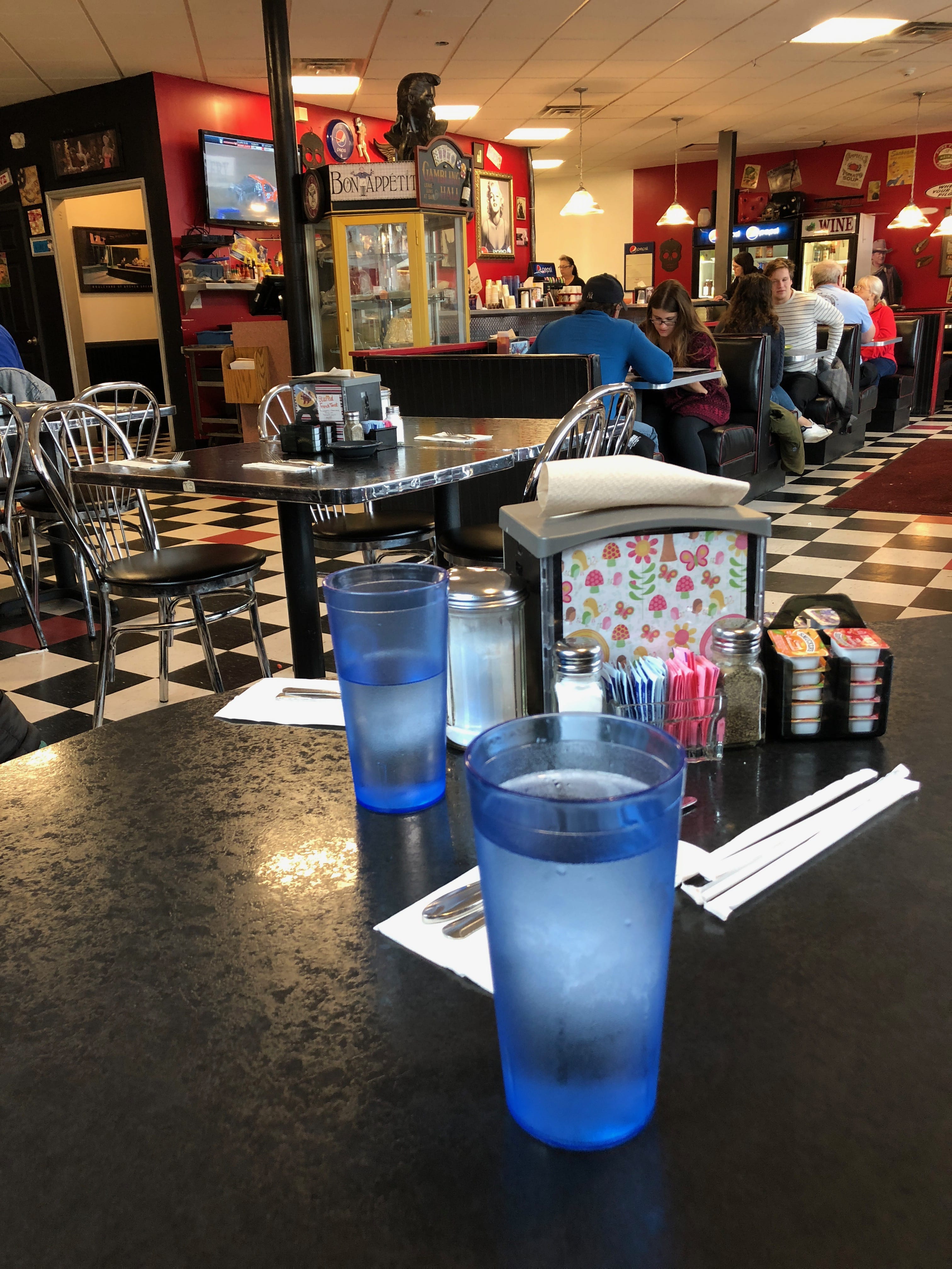 Le lendemain, après une bonne nuit de sommeil dans cette maison si chaleureuse, c’est avec un copieux petit-déjeuner que la journée commence. Si Jeri et Rose sont parties visiter un collège, c’est sous une pluie torrentielle que nous sommes allés nous balader sans réel but au mall d’Albany avec Colter, l’un des fils de Jeri, et Claire, une amie de Drew (son aîné). S’il n’a rien de particulier, c’est toujours une occasion de s’imprégner de la culture américaine, et d’être dépaysé en toute simplicité également. Sur le retour, après avoir passé de nombreuses minutes à essayer de se retrouver les uns les autres dans le mall, sans pouvoir se joindre, nous avons décidé de retourner progressivement vers la maison. En chemin, et ayant tous un peu faim dans cette journée complètement décalée, nous avons fait une pause dans un petit Diner local, où chacun a pris ce qui lui plaisait, entre burger, sandwichs, oeufs…