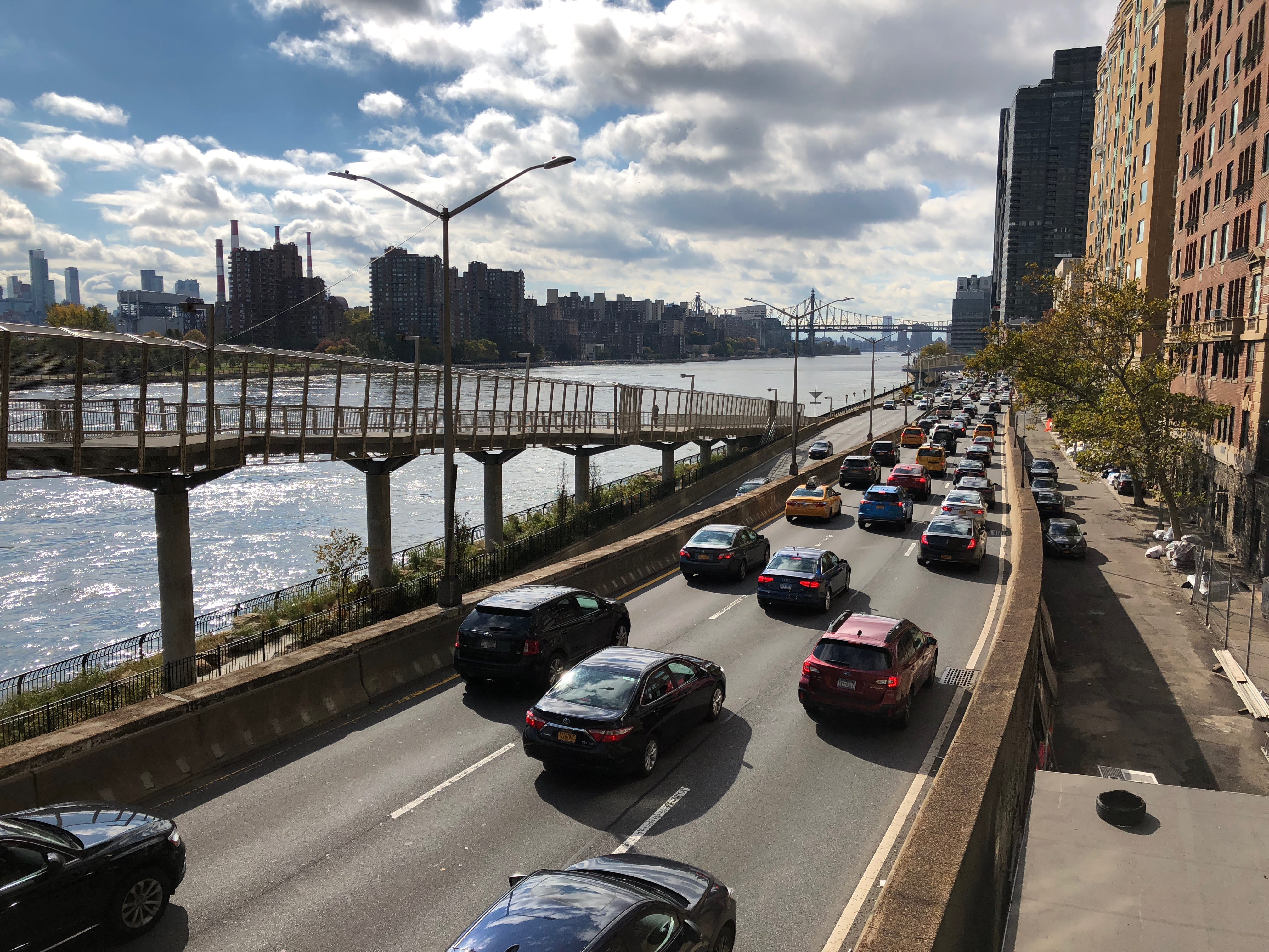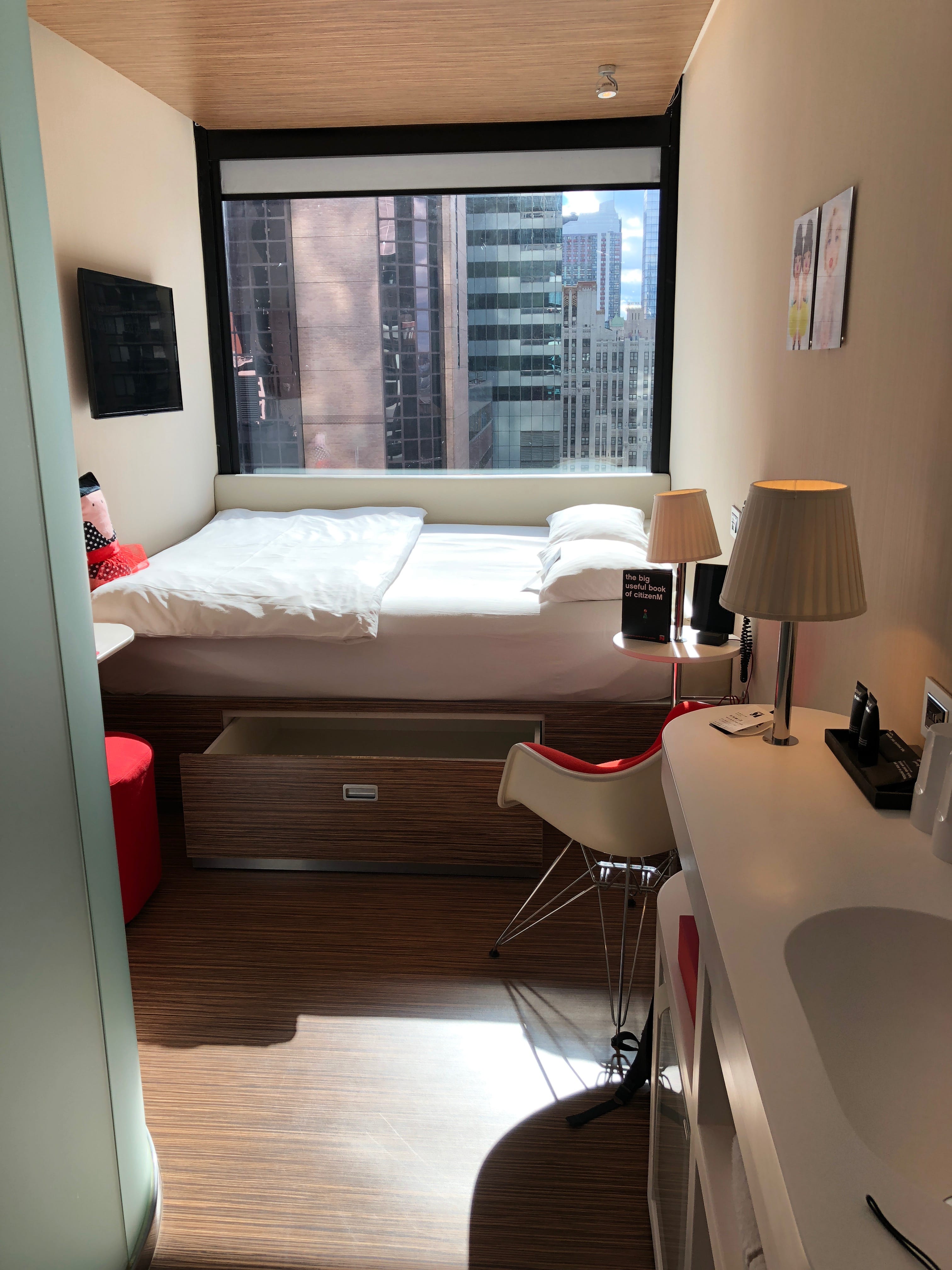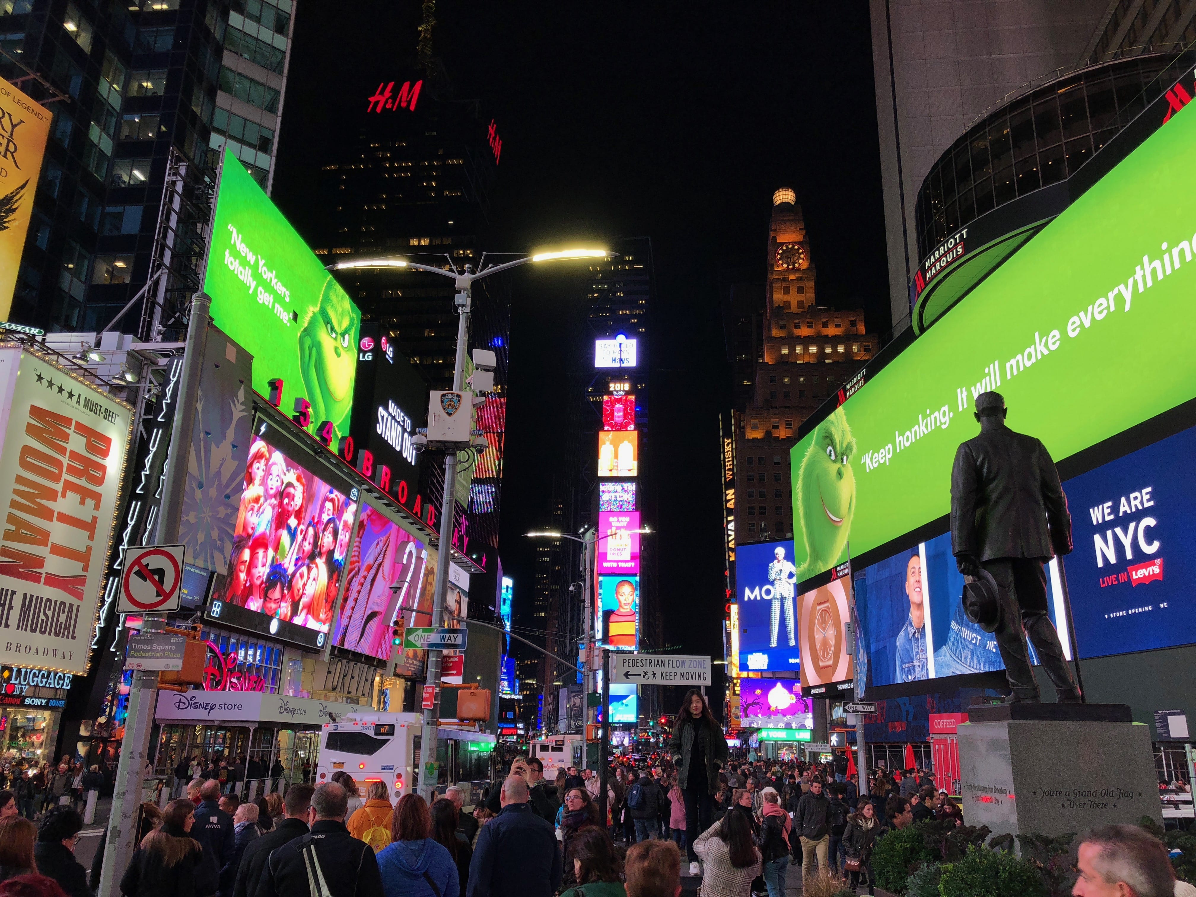 L’arrivée à New York City restera l’un des moments forts de notre voyage. Tant par la beauté des paysages tout au long de la route entre Scotia et NYC que par le frisson qui nous a parcouru lorsqu’à encore au moins 20km de la ville nous apercevions déjà les mythiques buildings formant sa toute aussi réputée Skyline. Nous avons eu la bonne idée de faire le plein de notre véhicule avant d’arriver dans la partie la plus technique, heureusement parce qu’une fois passé le Lincoln tunnel payant, nous étions propulsés en pleine jungle urbaine, sans trop d’autre option que de se frayer un chemin entre les voitures, vélos, piétons et toutes les autres choses que l’on peut croiser dans les rues de la grosse pomme. Notre hôtel étant idéalement placé, à deux minutes à pied de Times Square, nous avons pris le parti d’y déposer nos valises avant d’aller rendre le véhicule, histoire d’éviter de les avoir avec nous sur le chemin du retour.
