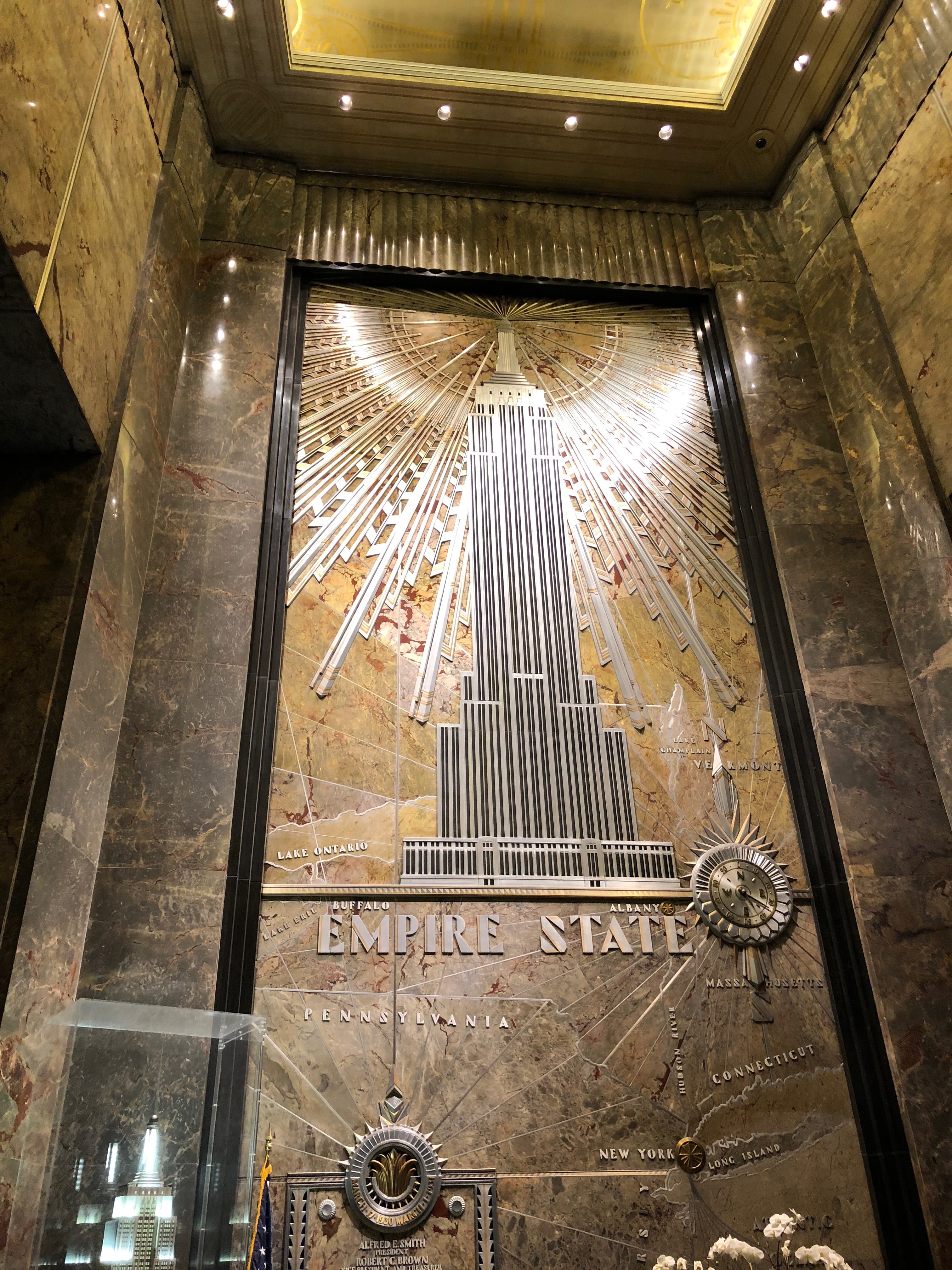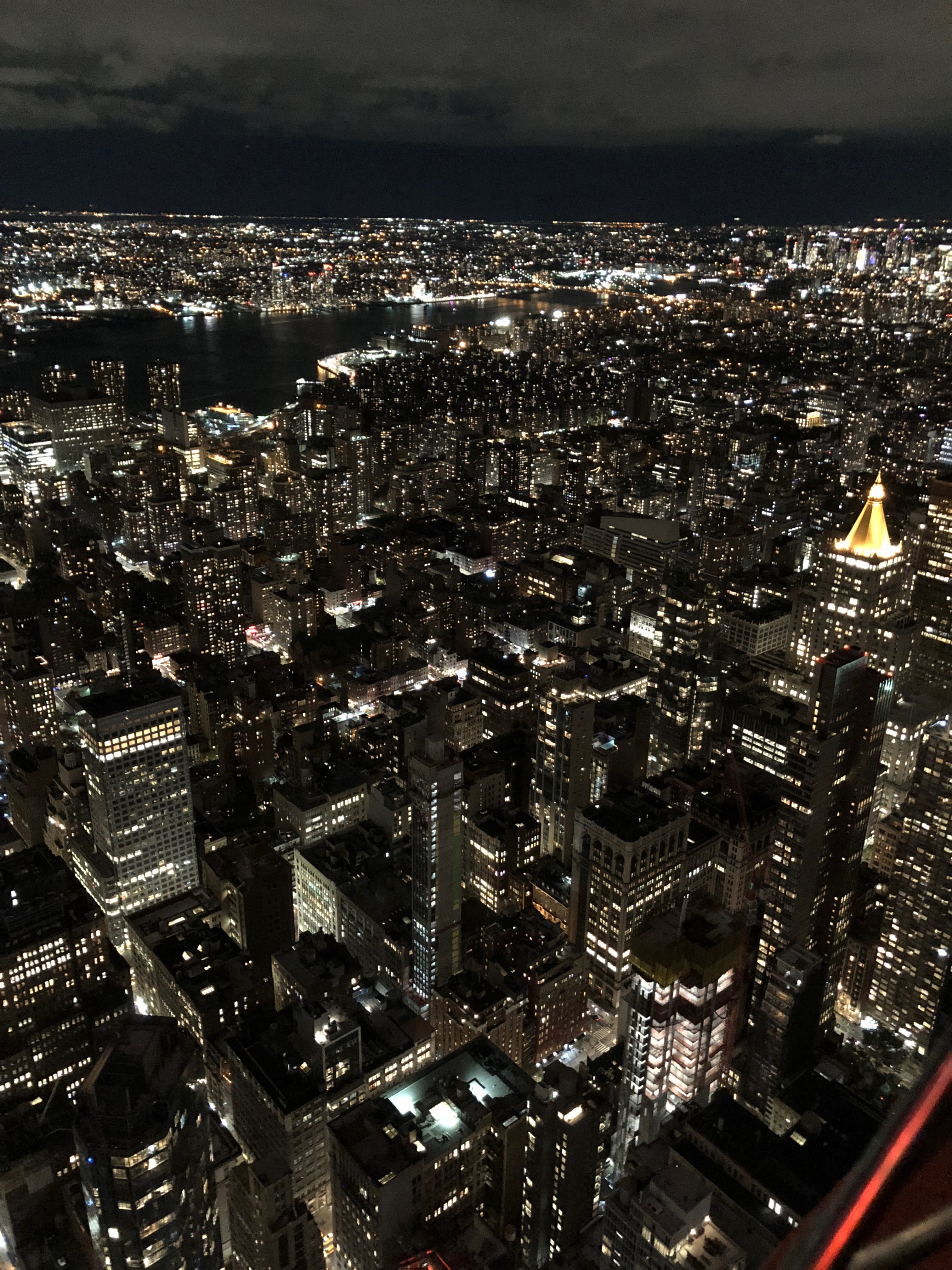 Après avoir un peu zoné sans réel but autre que profiter de la ville qui s’offrait à nous, il était venu le temps de rejoindre l’Empire State Building pour y grimper. Ce bâtiment, l’une des sept merveilles du monde moderne, offre un panorama magnifique sur la ville. Ce n’est pas le plus beau à notre sens, puisque forcément depuis sa terrasse, on ne peut pas l’y voir, mais à couper le souffle tout de même. L’histoire de sa construction est vraiment intéressante, et on peut la découvrir en s’arrêtant devant les différents écrans et panneaux qui permettent de patienter pendant les files d’attente pour atteindre le fameux deck d’observation. Il s’agissait à l’époque d’une course au building le plus haut, rivalité entre grands industriels aux finances et architectes de renom aux commandes. Même si le Chrysler building finira par gagner une première bataille, l’Empire State ne tardera pas à lui rafler la vedette en venant tutoyer le ciel d’encore un peu plus près. La soirée de ce premier jour dans la ville se terminera de manière assez simple, et aussi calme que possible. Le sentiment de début de la fin commençait déjà à se faire sentir, et nous ressentions un peu le contrecoup du Roadtrip.