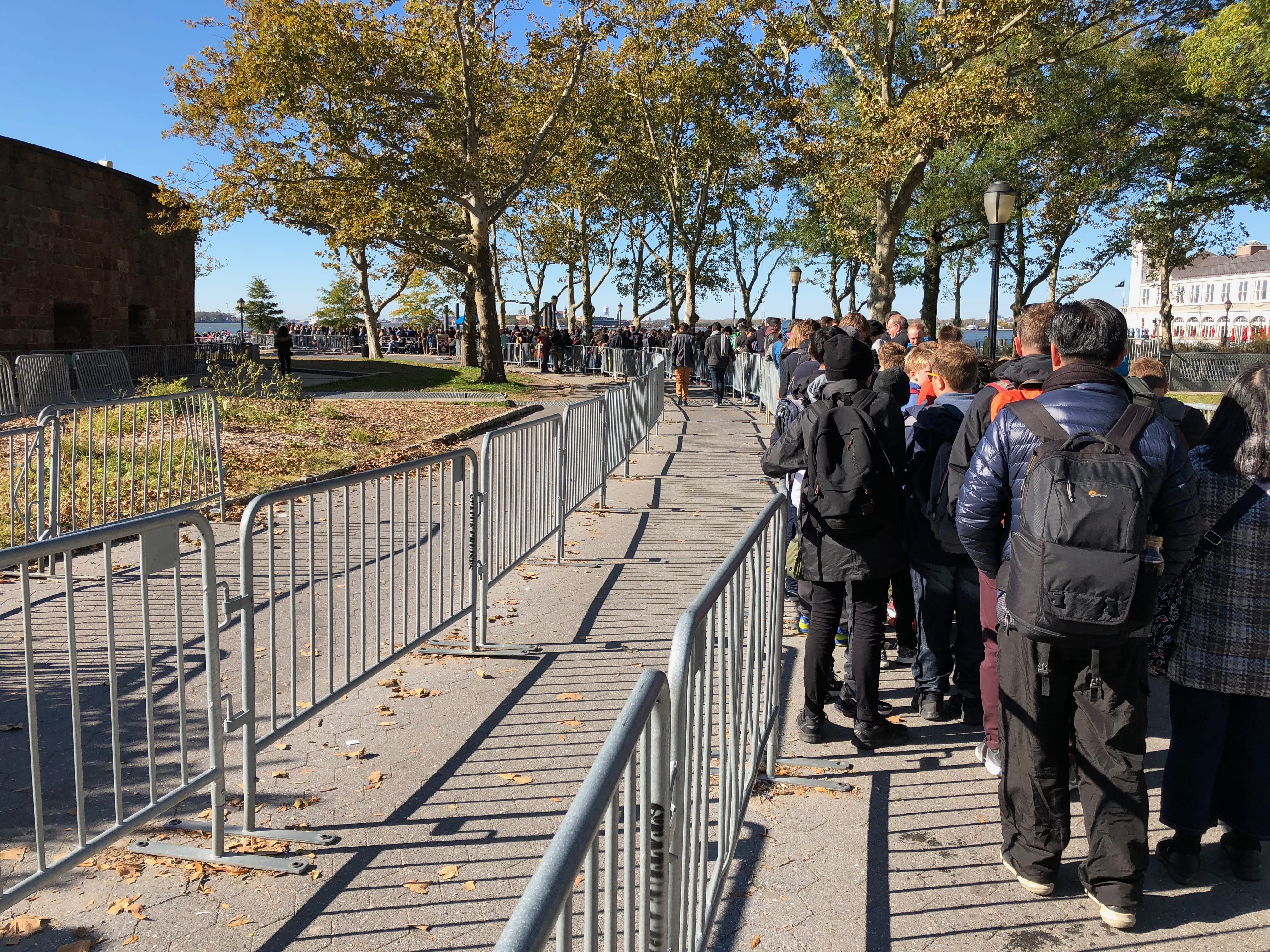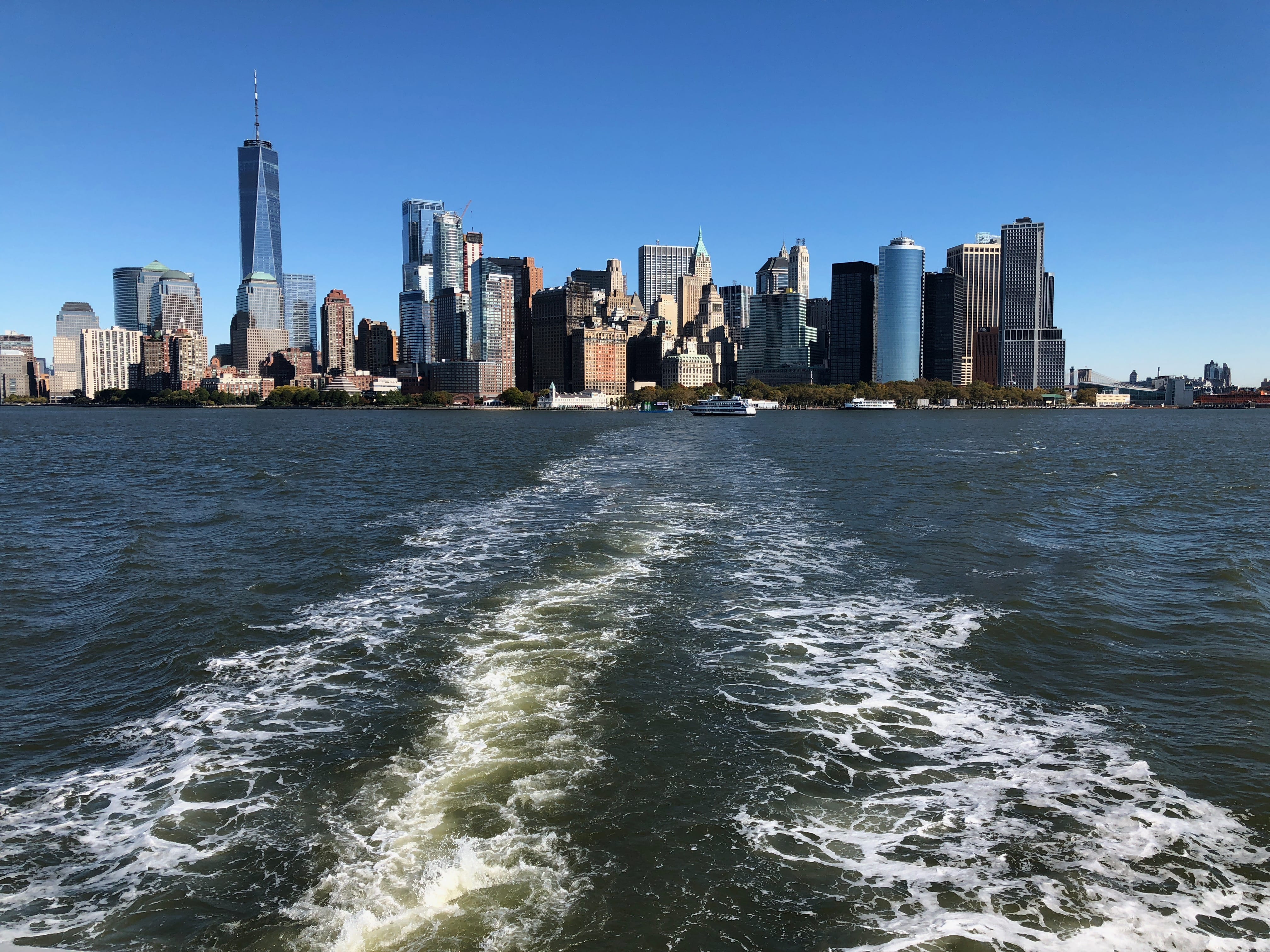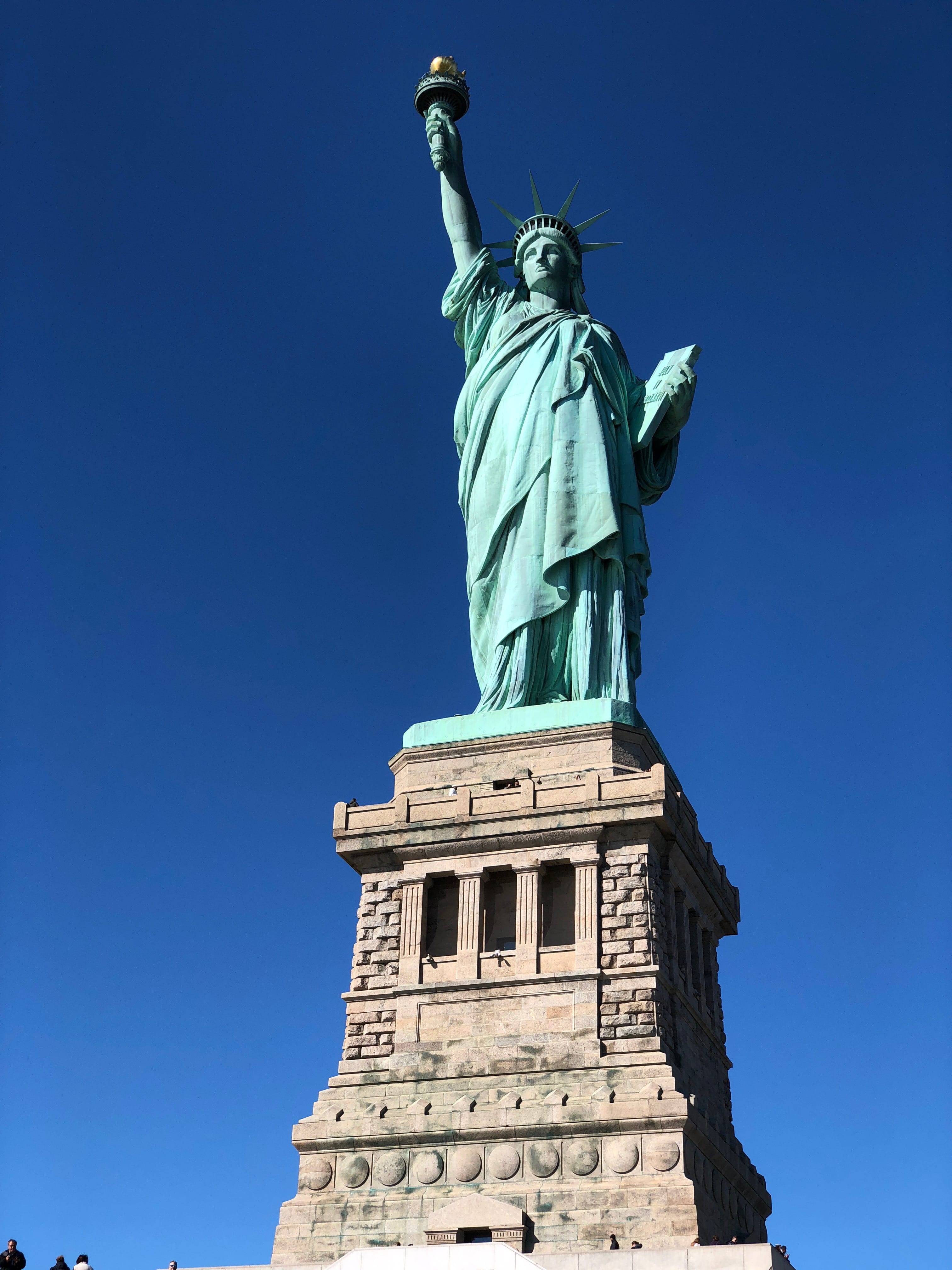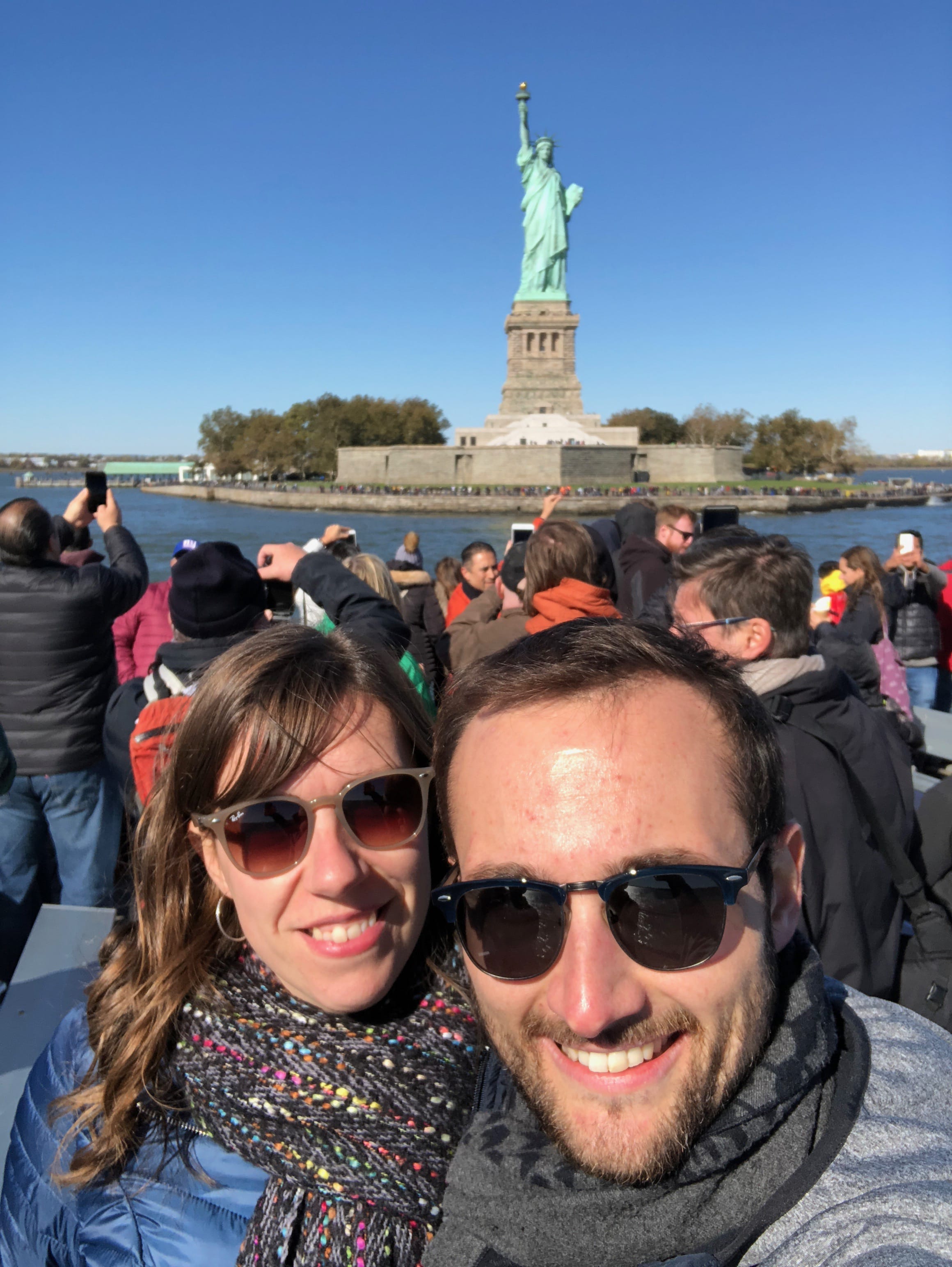 La journée du lendemain s’annonçait bien chargée, et notamment par les files d’attentes interminables qui s’annonçaient incontournables pour profiter pleinement des richesses de la ville. C’est pour la Statue de la Liberté, fameux symbole de la ville, que nous patienterons de nombreuses heures. Il, faisait le pied de grue pour ne pas perdre notre place dans l’immense file déjà créée de bon matin, et Elle, naviguait entre les guichets pour attraper des billets, et le Starbucks pour un petit-déjeuner. L’autre chose qui nous éloignait un peu des Etats-Unis que l’on aime tant, est que les nombreux touristes parlaient beaucoup plus français, italien, et d’autres dialectes moins connus, que l’anglais du pays. Depuis Liberty Island, c’est tant le fait d’être au pied de cette immense statue de cuivre et d’acier qui nous a motivé que de pouvoir apercevoir la ville depuis ce petit morceau de terre, la skyline étant à cet endroit magnifique. Notre petit conseil concernant cette visite est de fortement anticiper la réservation de la visite de la statue si vous voulez la faire car pour monter dans la structure, il vous faudra vous y prendre de nombreux mois à l’avance, mais encore faudra-t-il être sûr de pouvoir rejoindre l’île assurément ce jour précis…